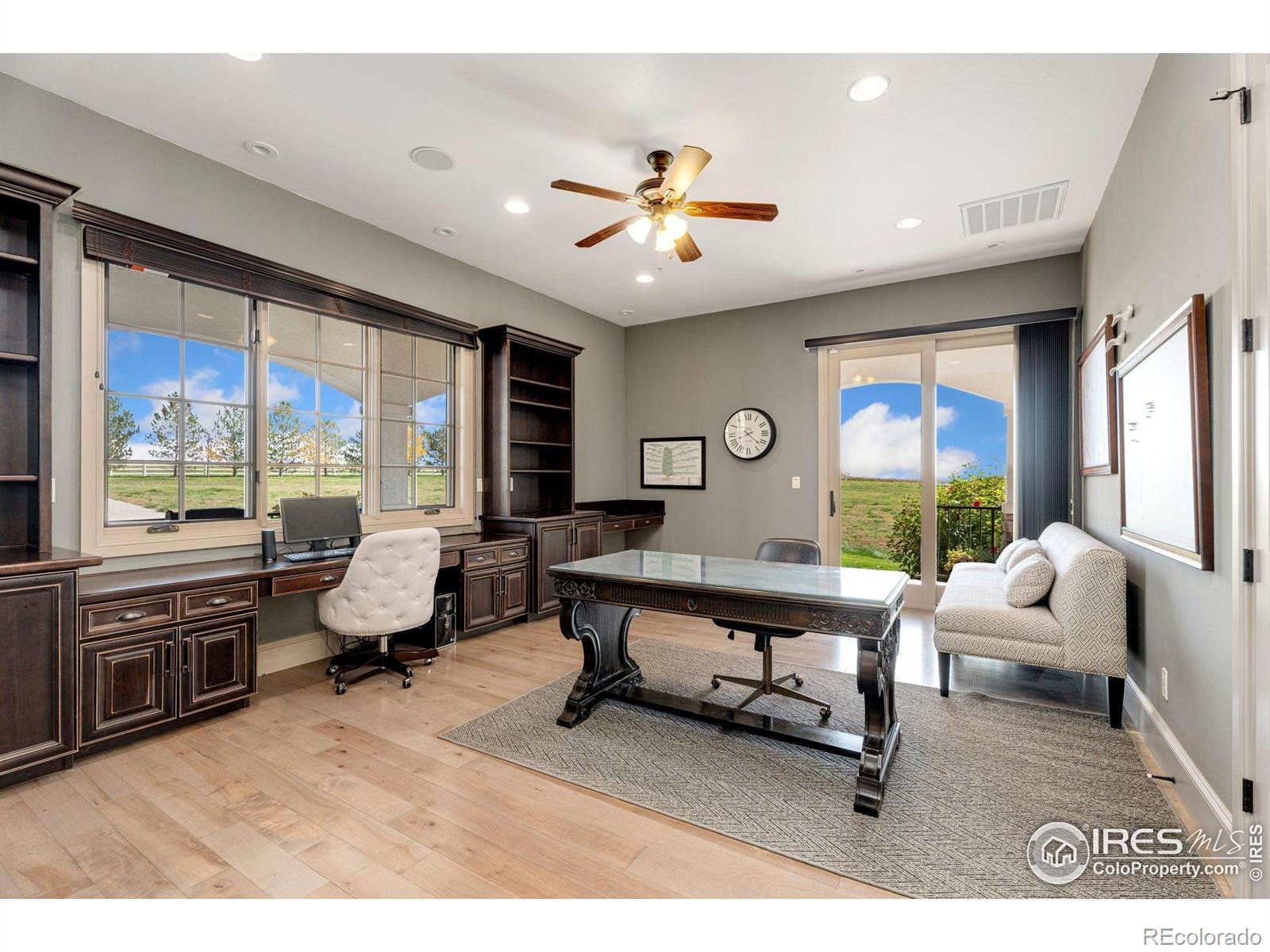 Nestled on nearly 15 acres with a private, tree-lined driveway, this exceptional 5 bedroom, 6 bathroom Colorado estate offers rare privacy, expansive acreage, and beautiful panoramic mountain views. Thoughtfully designed for comfort and functionality, the home features heated floors, a full-size elevator, multiple fireplaces, and a well-appointed kitchen with three ovens, ideal for entertaining and everyday living. Multiple balconies provide the perfect setting to take in the surrounding scenery. Horses and cattle are allowed, with plenty of room to build a shop or additional outbuildings. Enjoy the tranquility of a secluded retreat while remaining close to everyday amenities - only 15 minutes to Ft. Collins and 45 minutes to DIA. A truly unique opportunity to own a private property offering space, flexibility, and convenience in Northern Colorado.