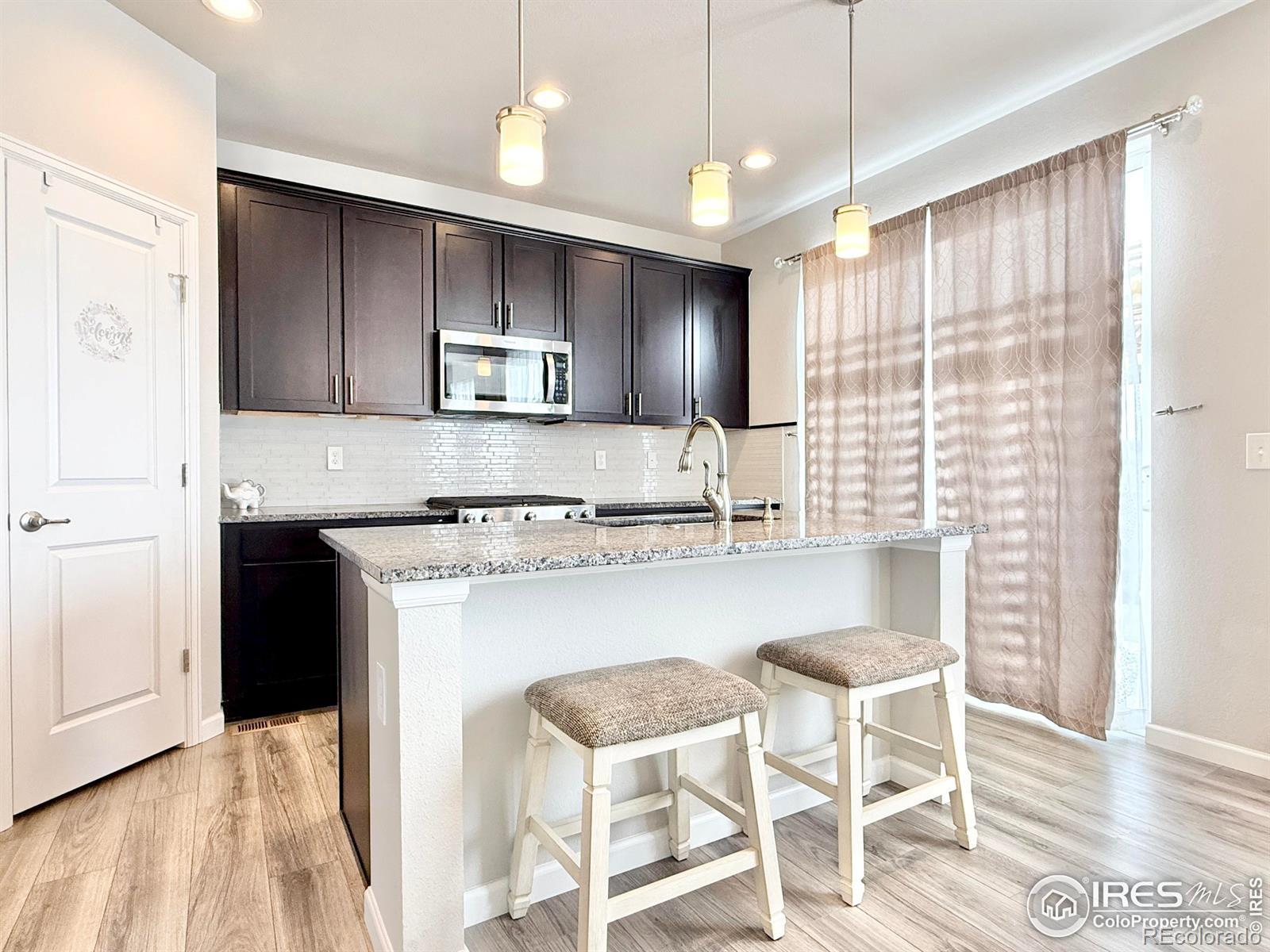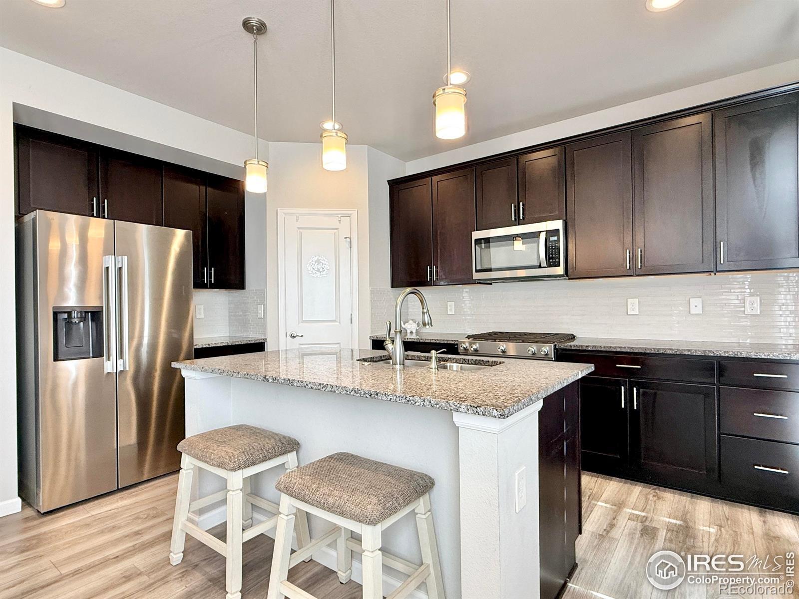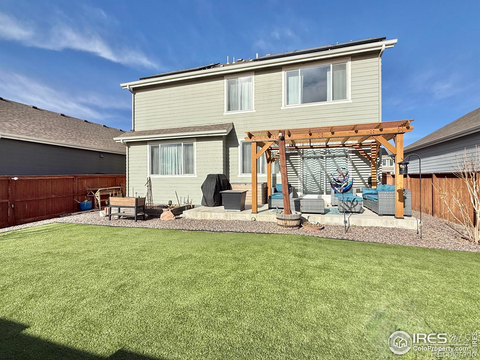 Meticulously maintained and thoughtfully upgraded, this newer build offers the perfect blend of modern design and move-in-ready convenience-with the landscaping already done. This beautiful 3-bedroom, 3-bath home features an open-concept kitchen and living area filled with natural light and complemented by stunning mountain views. The low-maintenance backyard is finished with artificial turf, keeping it green year-round, and backs to open space for added privacy. Enjoy evenings under the gazebo with custom Jellyfish lighting installed on both the rear of the home and the gazebo itself. The neighborhood offers multiple parks, along with tennis, basketball, and pickleball courts just a short walk away. Conveniently located near Highway 287 and I-25, this home also includes an insulated garage with a Stage 2 electric vehicle charger already installed-an ideal combination of comfort, style, and functionality.