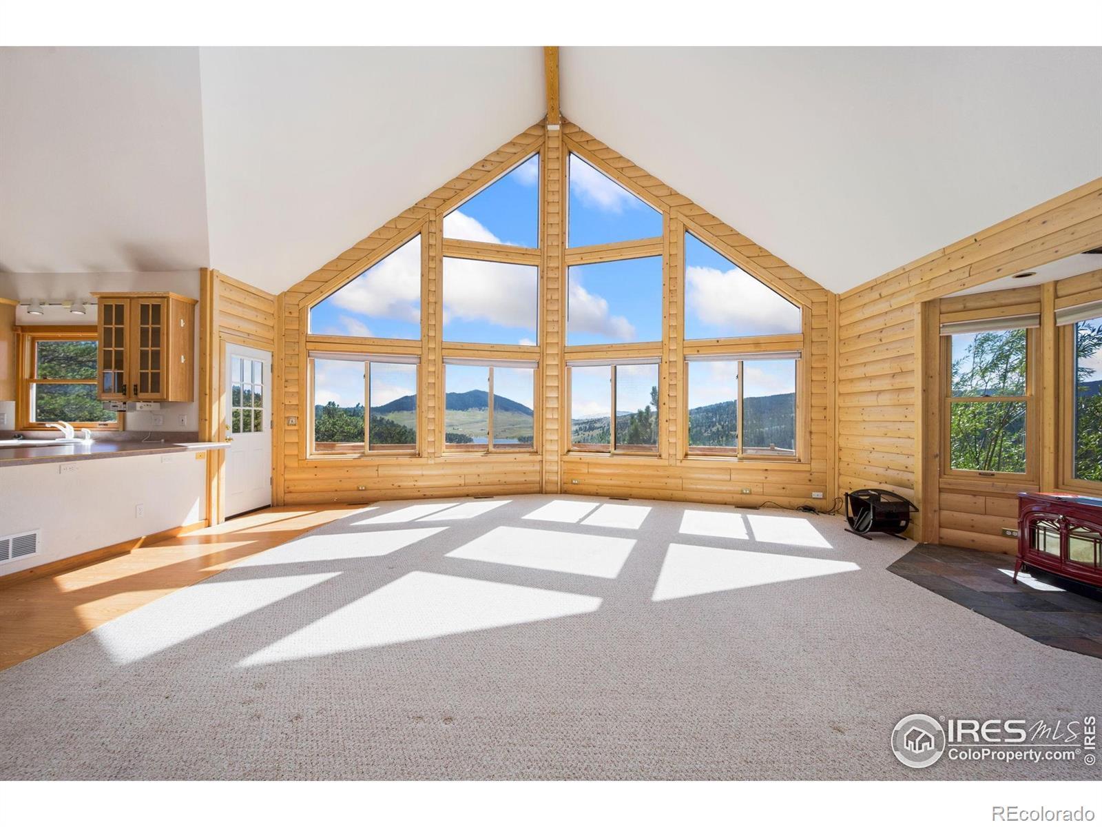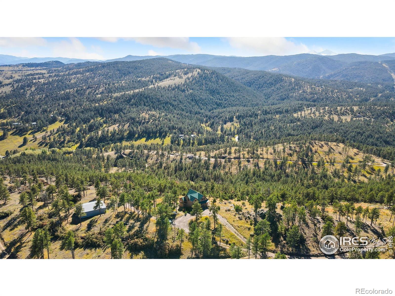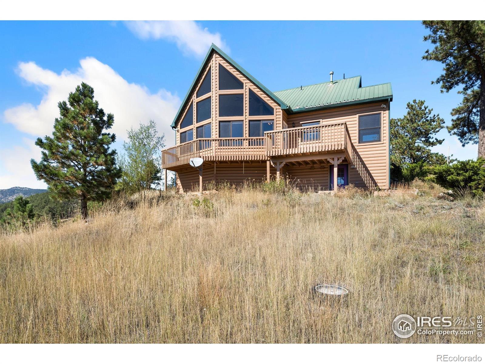Ready to own your slice of beautiful Colorado? Welcome to 965 Stone Mountain Ranch Rd, a private mountaintop retreat perched on over 48 acres with sweeping views of Pinewood Reservoir and the Front Range. This beautifully crafted cabin blends rustic charm with modern comfort, featuring a durable metal roof, floor-to-ceiling windows, a wraparound deck, and endless serenity. Enjoy main floor living with two bedrooms, a spacious kitchen, and a bright, airy living area. The spacious loft can easily convert to a third bedroom with an ensuite. Just steps away from the home, a massive 1,900+ sq ft outbuilding provides space for cars, campers, and all your mountain toys. Step outside to newly fire-mitigated grounds, a water feature, and multiple sitting areas where wildlife and breathtaking sunsets are your neighbors. Just minutes from hiking, boating, and camping, yet still a convenient drive to town, this home offers the perfect balance of adventure and everyday life. It is truly Colorado living at its finest. Schedule your showing today! Please note, the property is on a private road, please do not drive by without an appointment.