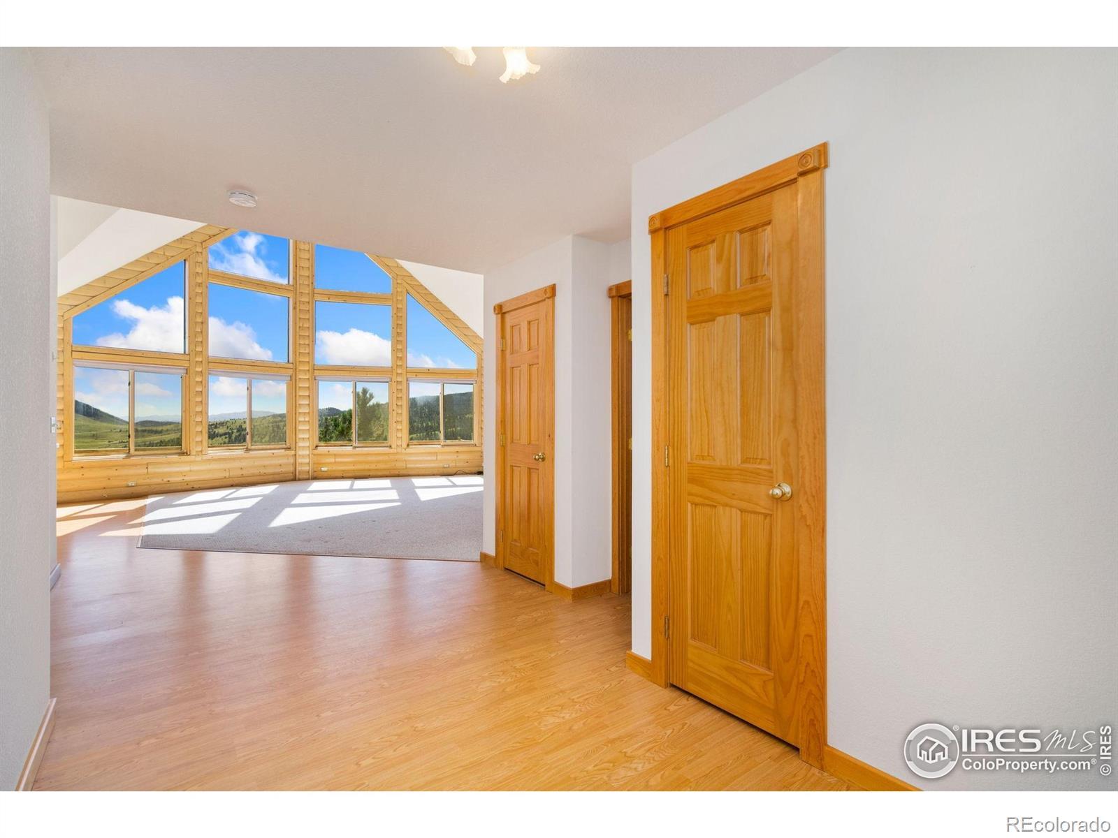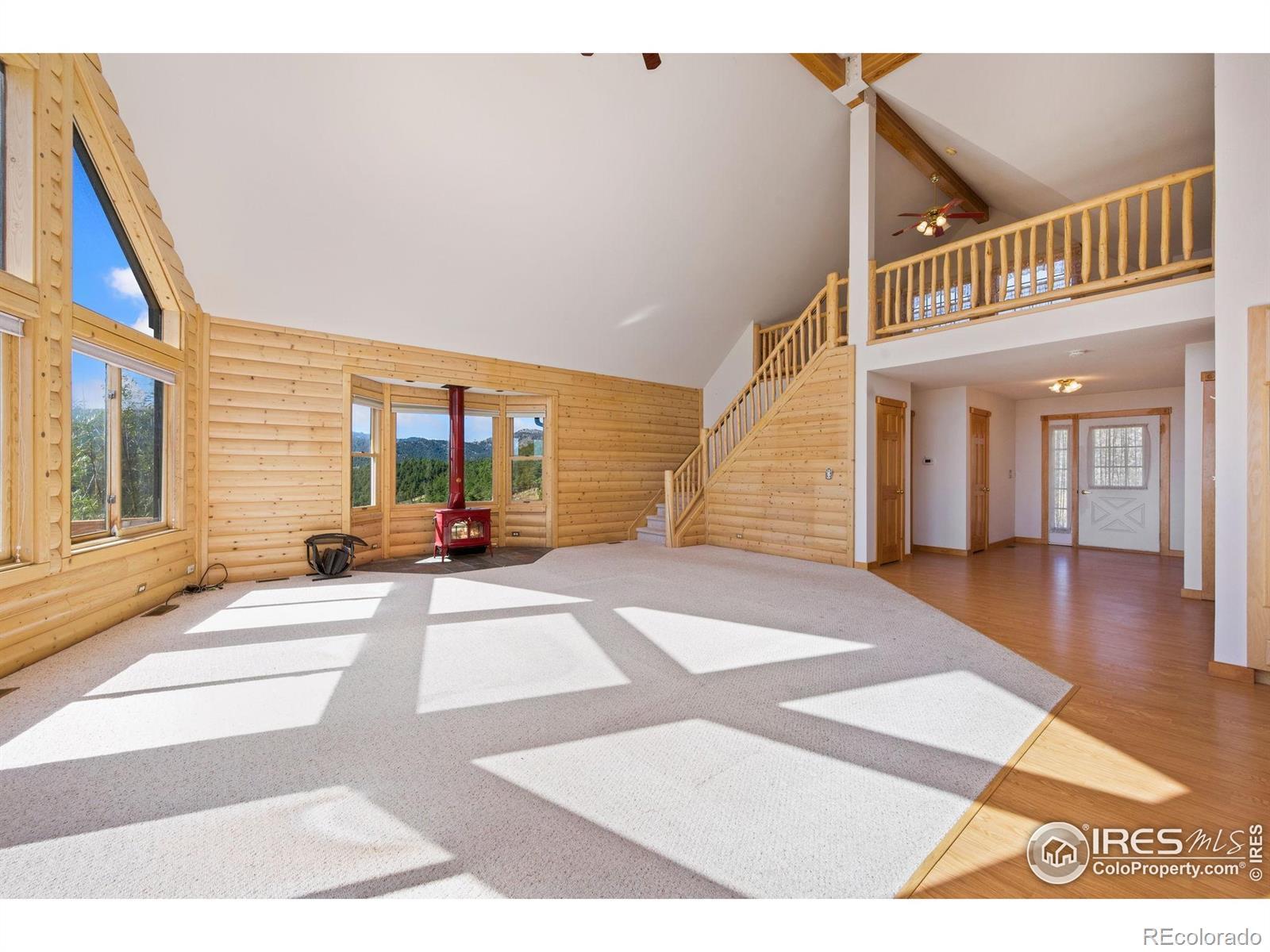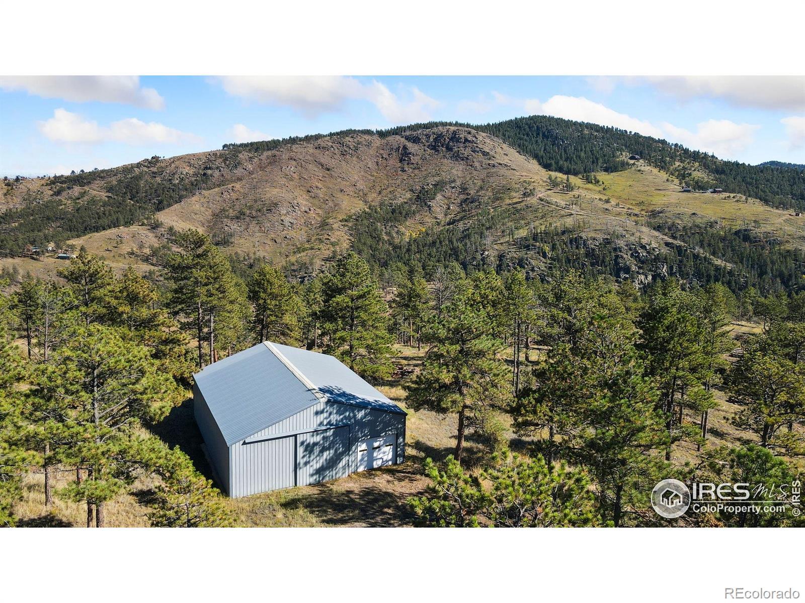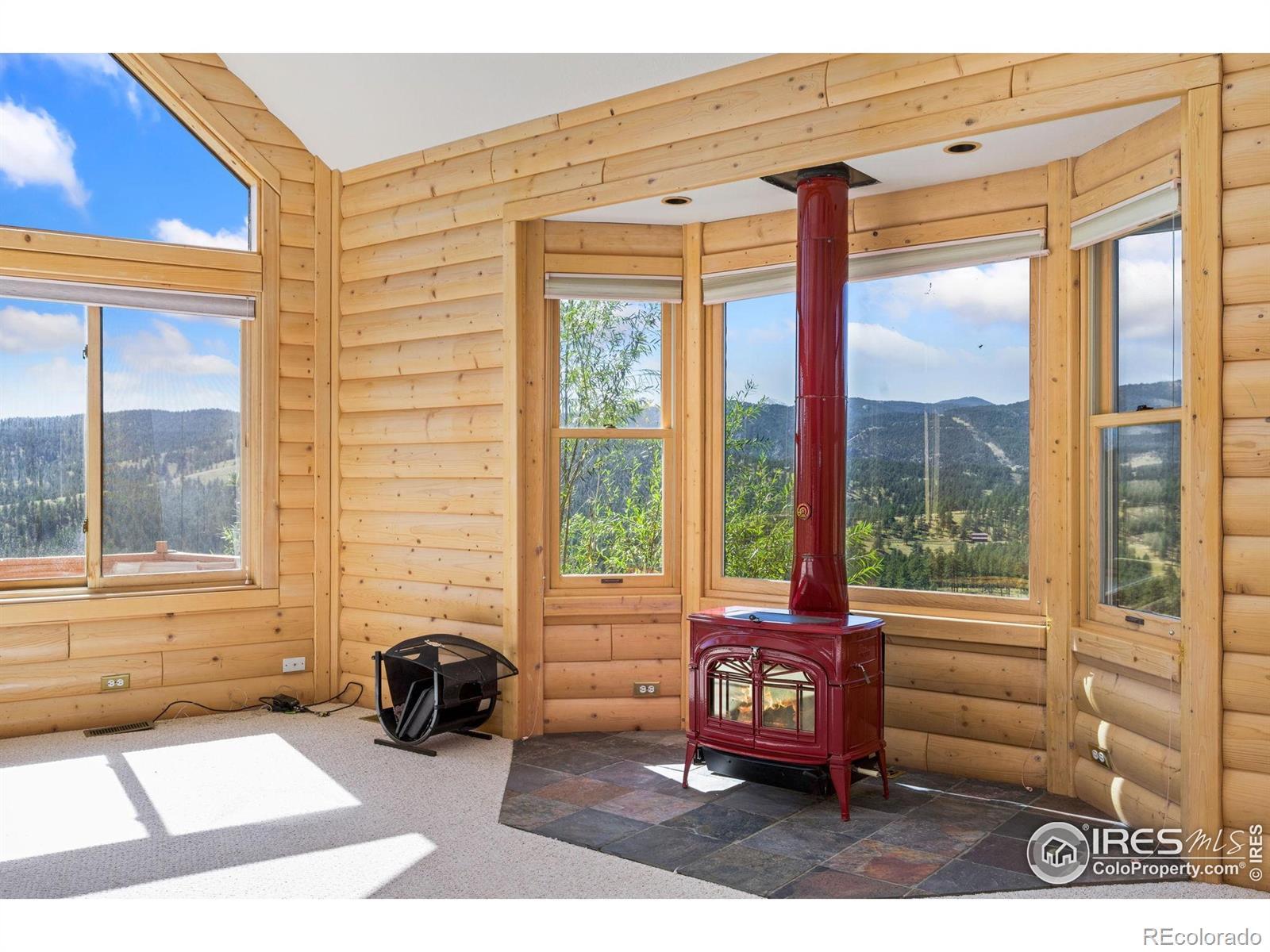 Ready to own your slice of beautiful Colorado? Welcome to 965 Stone Mountain Ranch Rd, a private mountaintop retreat perched on over 48 acres with sweeping views of Pinewood Reservoir and the Front Range. This beautifully crafted cabin blends rustic charm with modern comfort, featuring a durable metal roof, floor-to-ceiling windows, a wraparound deck, and endless serenity. Enjoy main floor living with two bedrooms, a spacious kitchen, and a bright, airy living area. The spacious loft can easily convert to a third bedroom with an ensuite. Just steps away from the home, a massive 1,900+ sq ft outbuilding provides space for cars, campers, and all your mountain toys. Step outside to newly fire-mitigated grounds, a water feature, and multiple sitting areas where wildlife and breathtaking sunsets are your neighbors. Just minutes from hiking, boating, and camping, yet still a convenient drive to town, this home offers the perfect balance of adventure and everyday life. It is truly Colorado living at its finest. Schedule your showing today! Please note, the property is on a private road, please do not drive by without an appointment.