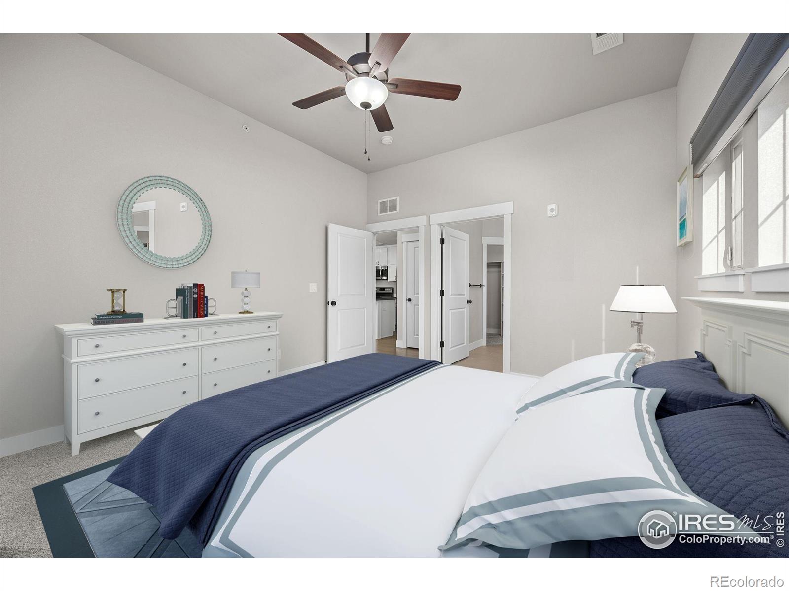 Discover luxury living in this stunning two-bedroom, two-bath end-unit condo at Portofino Flats at La Riva in beautiful Windsor, Colorado.Soaring 12-foot ceilings create an airy, open atmosphere throughout, accentuated by sleek modern finishes and abundant natural light. The spacious living room serves as the heart of the home, perfect for entertaining or relaxing by the fireplace on cool Colorado evenings.The gourmet kitchen impresses with gleaming stainless steel appliances, elegant quartz countertops, and ample cabinetry for effortless meal preparation. Enjoy the convenience of automatic blinds that add a touch of sophistication and privacy at the touch of a button.Retreat to generously sized primary bedroom with en-suite bath, offering comfort and tranquility.This desirable end-unit includes elevator access, one-car garage with extra storage space, Internet and cable TV, Water included in HOA fees. Residents of Portofino Flats enjoy resort-style amenities, including a relaxing hot tub and sauna, state-of-the-art gym, and more-all designed for an elevated lifestyle.Don't miss this opportunity to own a piece of modern elegance in a vibrant community