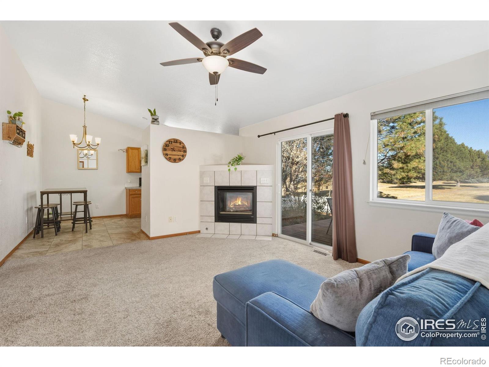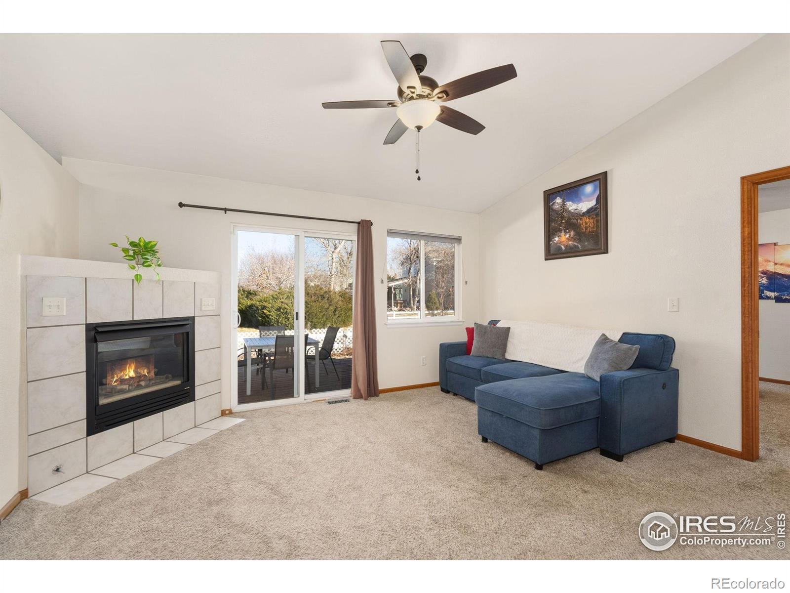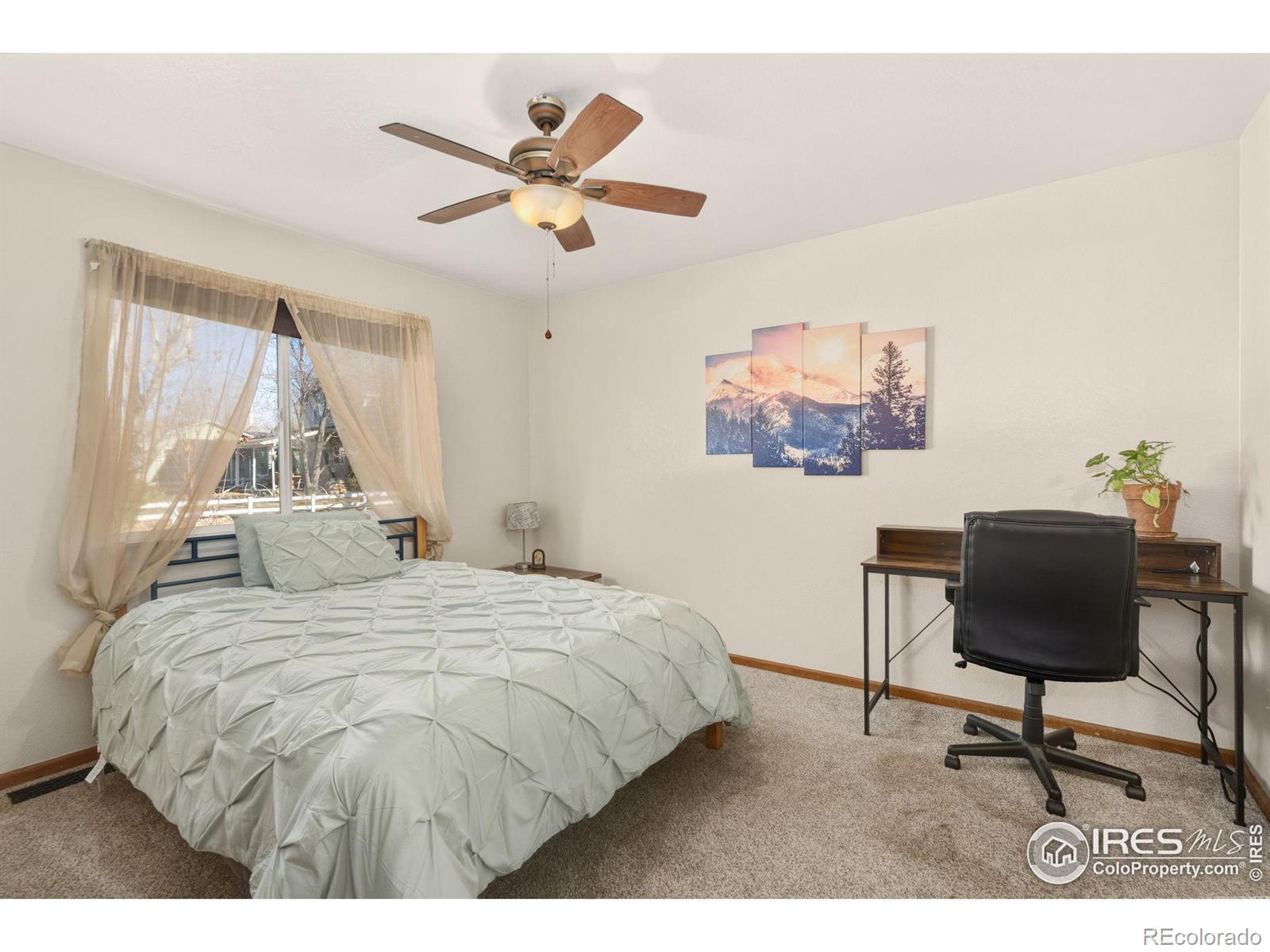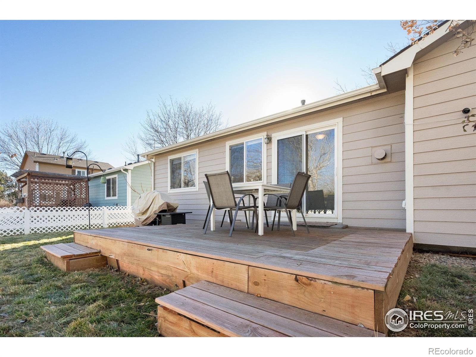 Great ranch style home with 2 primary bedrooms, plus two additional bedrooms. Two car attached garage, family room with a fireplace, fenced back yard with a deck backing to green space. Bonus space in the basement living area. Charming home, in a great central Loveland location. 1 year home warranty provided.