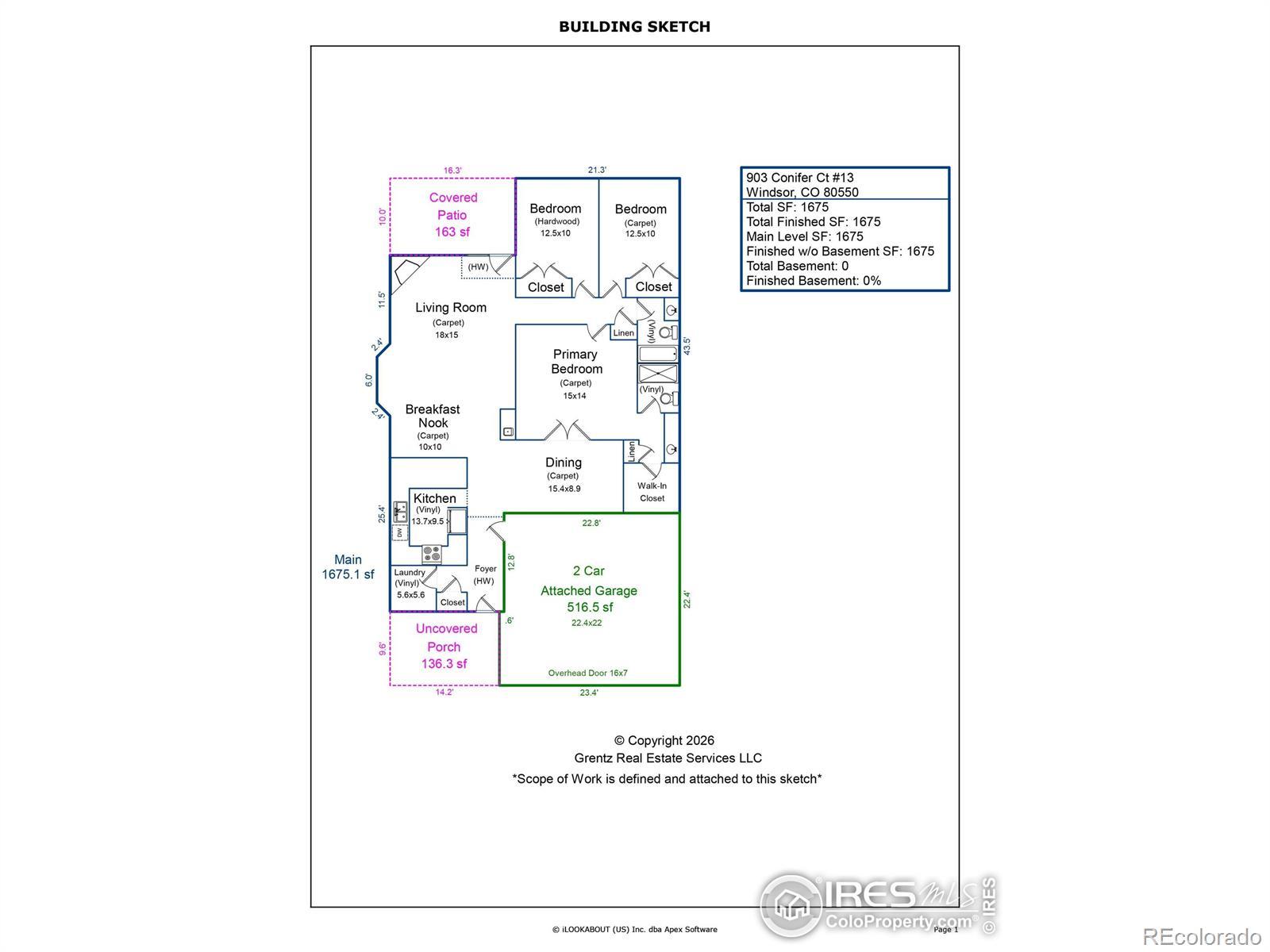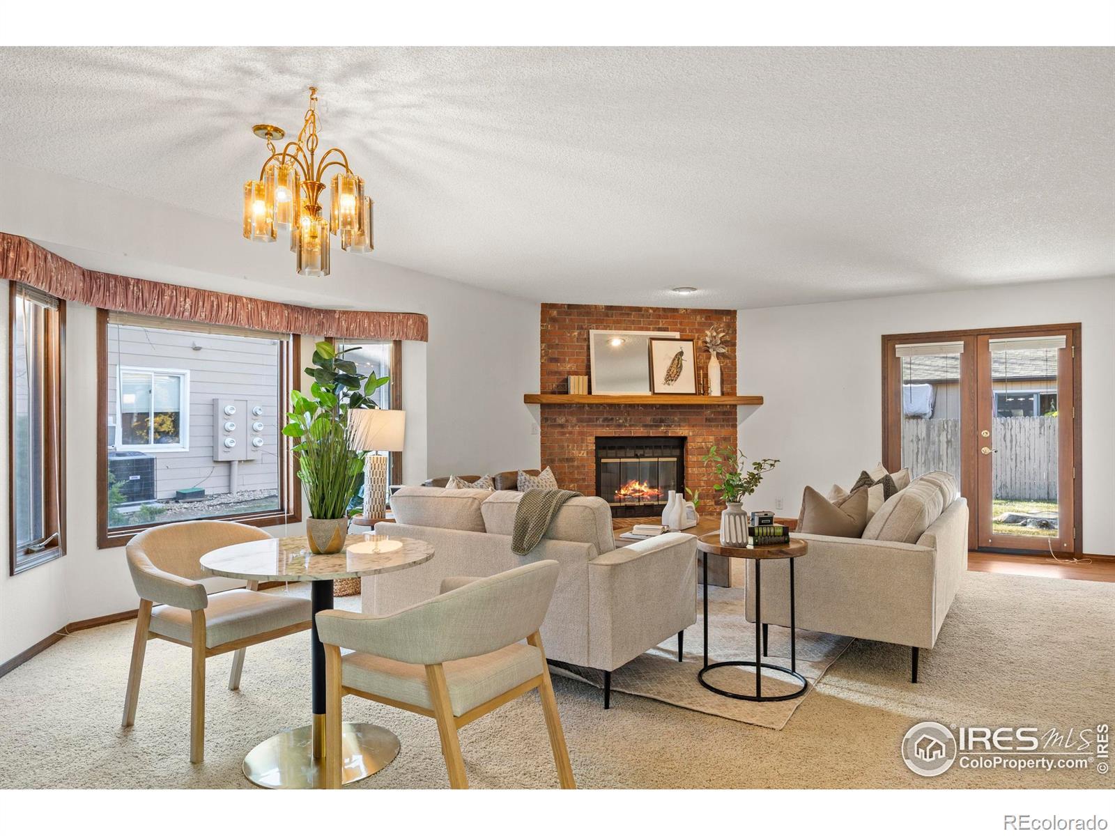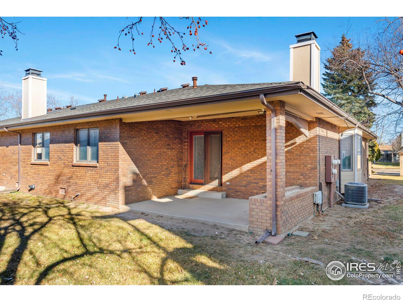 This three-bedroom, two-bath ranch-style home offers efficient single-level living with both front and back patios. The ranch layout provides minimal steps and straightforward accessibility throughout. Inside, a gas fireplace anchors the spacious living room, creating a practical focal point, while the wet bar adds everyday functionality and supports entertaining. In addition to the main room, a separate interior space with skylights provides an abundance of interior brightness and flexible use as a formal dining area, library, media room, or additional gathering space.Unlike a typical condo, this home features one shared wall with no units above or below, supporting a quieter interior environment. Its end-unit location enhances privacy and natural light. The front patio creates a welcoming entry, while the rear patio offers additional outdoor space for daily use or hosting guests. A two-car garage provides direct access and additional storage. The brick construction offers low exterior maintenance for durability and ease of care. The location provides convenient proximity to local services, primary roadways, and nearby outdoor amenities including Windsor Lake, trail systems, and downtown Windsor.