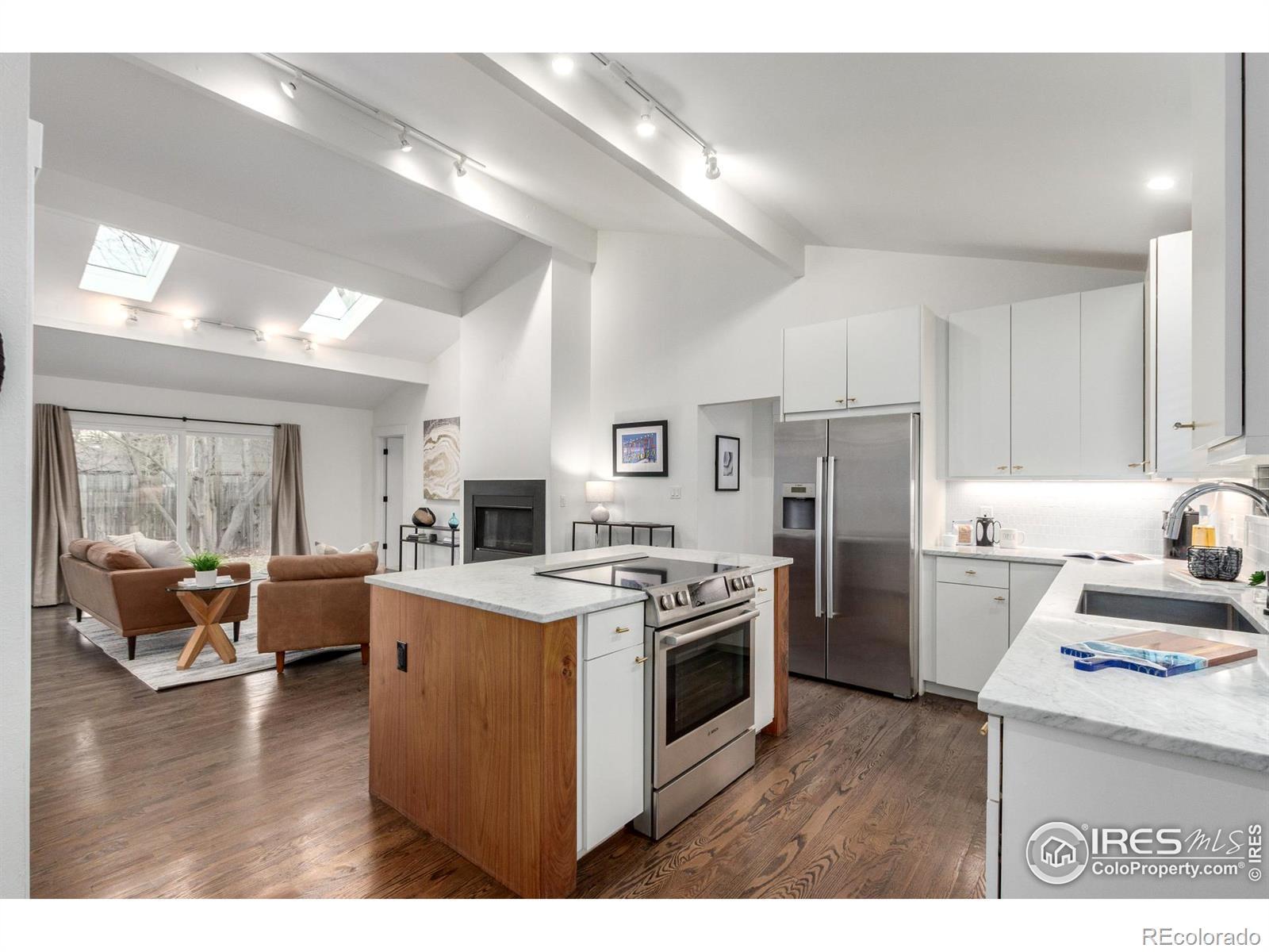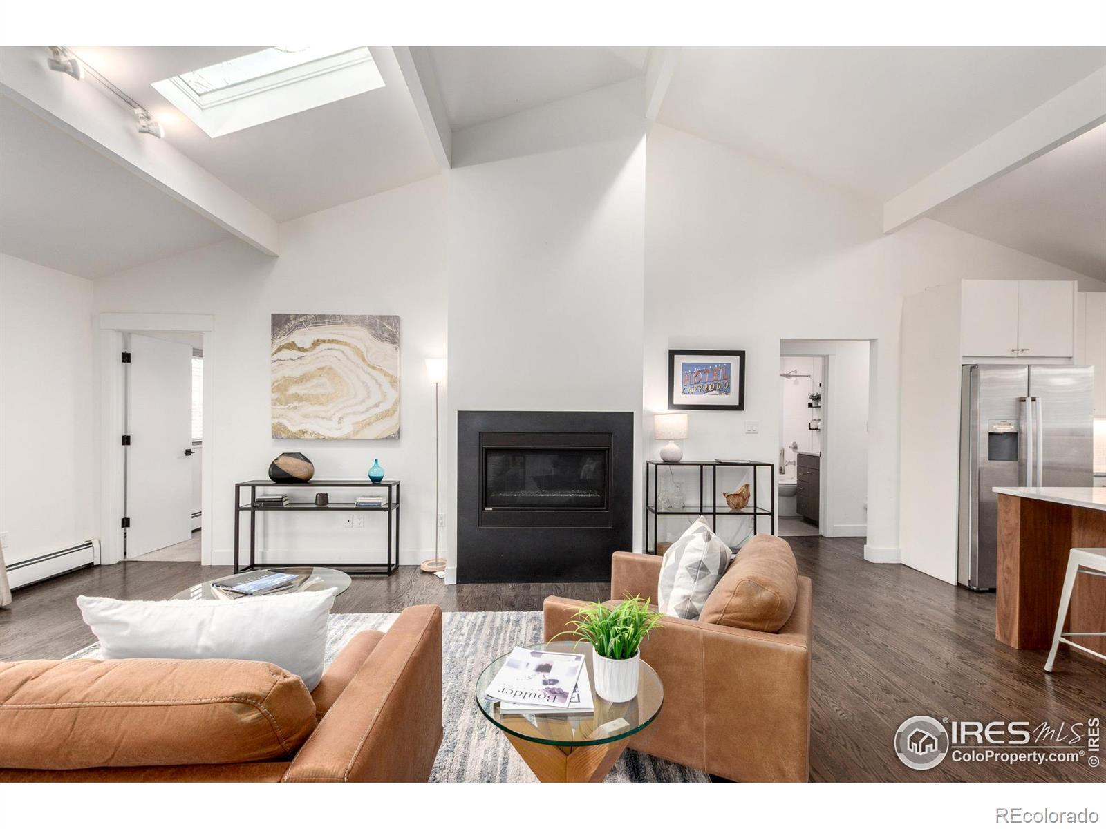Looking for a smart investment and the perfect home base while you or a family member attends college in Boulder? This stylish single-level home lives large with its open floor plan, vaulted ceilings, and abundant natural light from skylights and south-facing glass doors. The updated kitchen makes cooking and entertaining easy, and the private wraparound yard is ideal for studying outside, hosting friends, gardening, or hanging out with a pet. Practical updates like radiant hot water heat, mini-split AC, and a new roof (2023) mean comfort and peace of mind. Interior paint touch ups throughout, bedrooms carpet professionally cleaned. Water, sewer, and hazard insurance are conveniently covered by a simple HOA arrangement with the adjoining unit. Set in a quiet north Boulder cul-de-sac, yet close to everything: just steps to a city park, bike paths, grocery, coffee, and popular neighborhood spots like Tangerine and Vecchio's. Quick access to campus and downtown makes this home a great value for students, parents, or young professionals who want location, lifestyle, and low maintenance all in one.