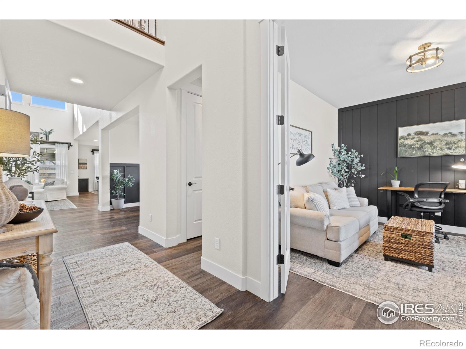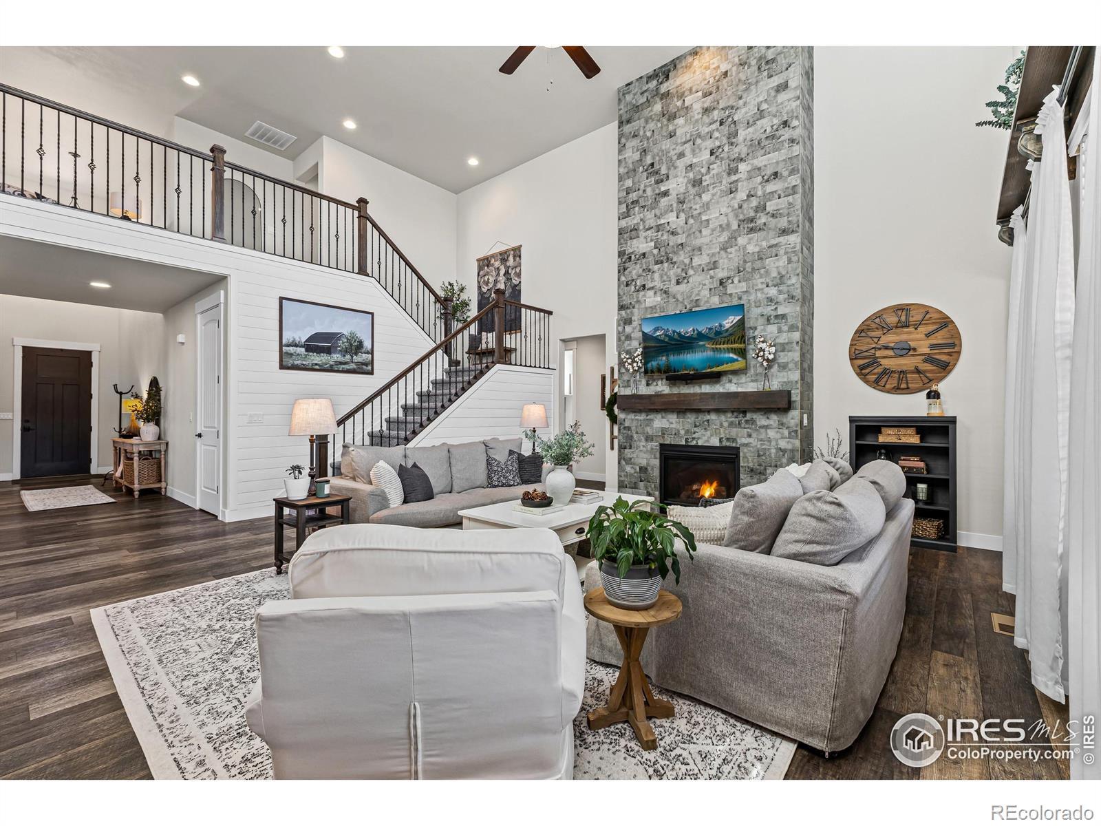 Welcome to this immaculate six-bedroom home on one of the largest corner lots in Windsor's coveted Raindance community. Thoughtful design and custom finishes shine throughout, starting with a main-level primary suite with luxury bath and walk-in closet, a dedicated office with French doors, and a stunning kitchen featuring granite countertops, stainless steel appliances, pantry, and generous gathering space. The formal dining room and soaring, light-filled living room with gas fireplace create an inviting setting for everyday living and entertaining. Upstairs offers a versatile loft, two bedrooms with a Jack-and-Jill bath, and a private guest suite. The finished basement adds two more bedrooms, a full bath, a spacious rec room, and large unfinished storage room. Enjoy Colorado living on the expansive patio and pergola, plus the rare four-car garage. Ideally located across from wide-open community farm fields, parks, the Raindance River Resort, and Orchard Hill Elementary-this home delivers luxury, space, and an exceptional lifestyle in one of Northern Colorado's premier neighborhoods.