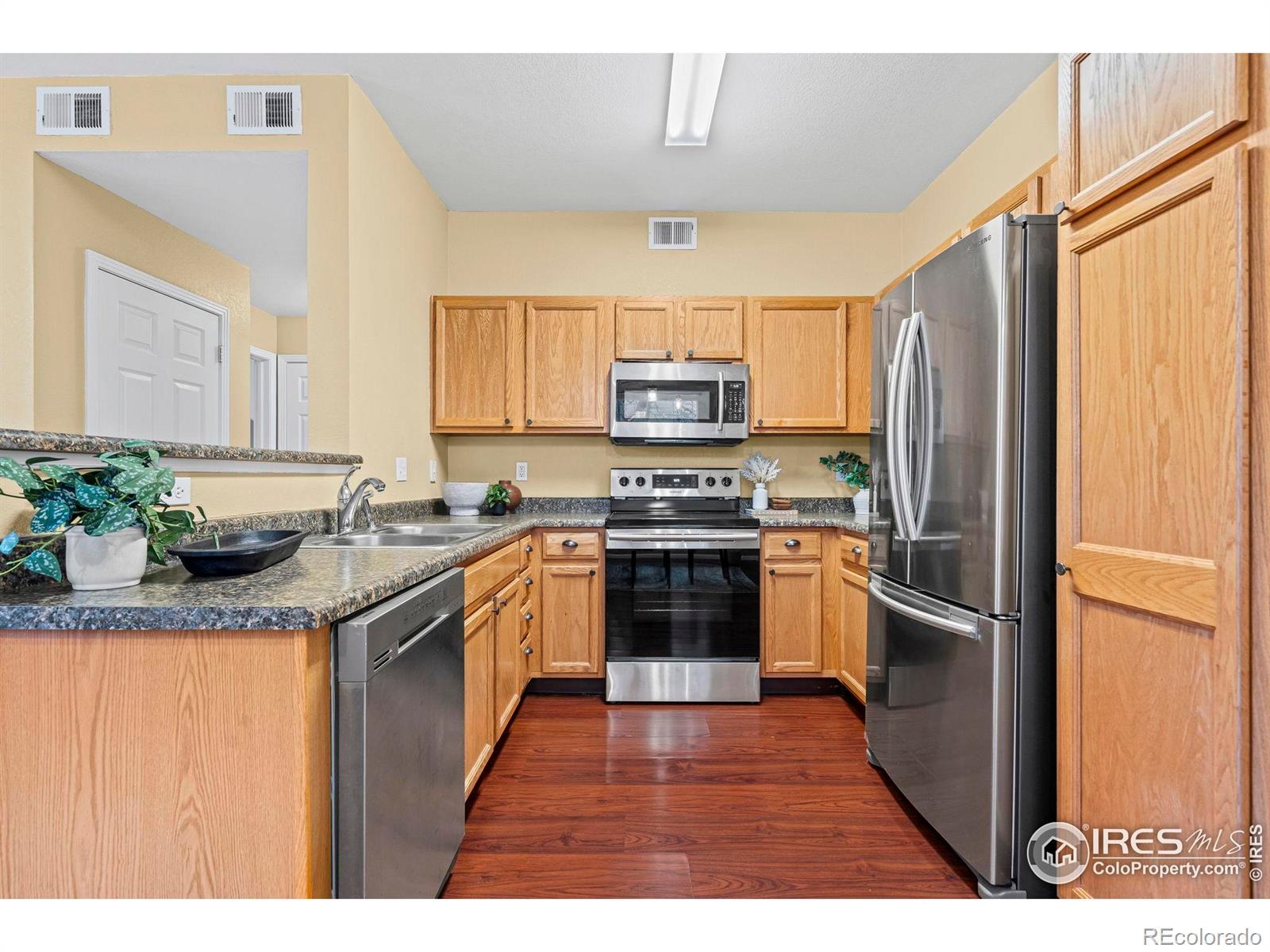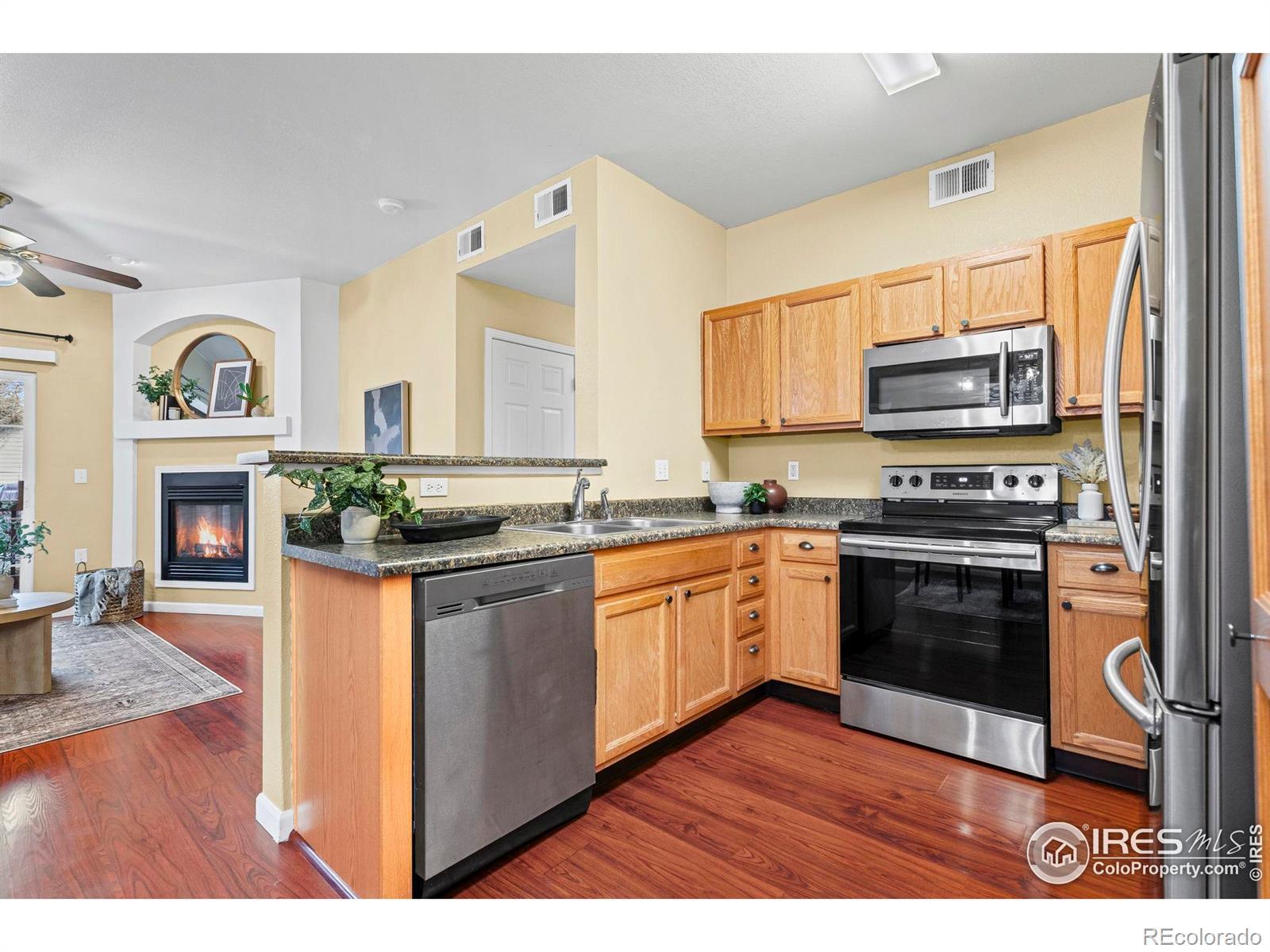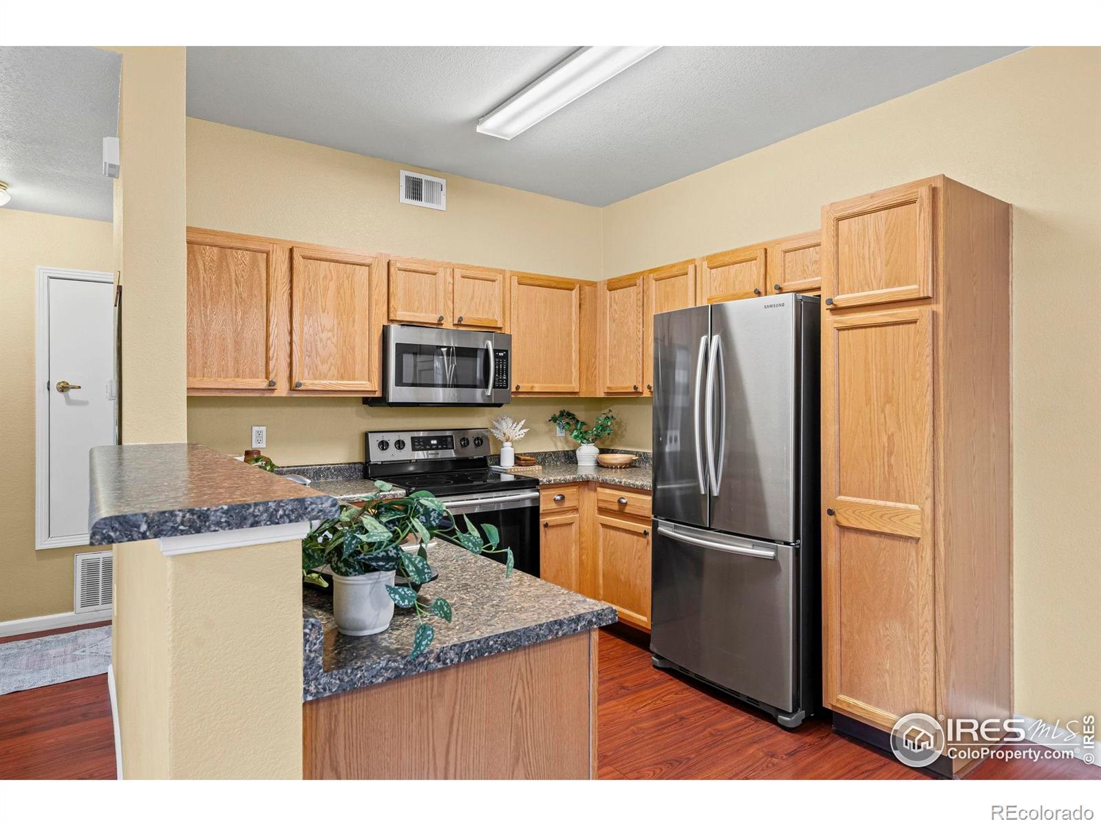 Welcome to this charming one-bedroom, one-bath condo located in Saddle Ridge. This ground-floor, handicap-accessible home is immaculately maintained and offers comfortable, convenient living with central air and a thoughtful, open layout. The spacious bedroom features a walk-in closet, while the remodeled bathroom (2024) includes double sinks for added functionality. The kitchen is equipped with newer stainless steel appliances, and the washer and dryer are new and included. Major system updates provide peace of mind, including a new furnace (2025) and new water heater (2025). Enjoy abundant storage throughout the condo, along with a private patio tucked into the quiet east interior of the complex. A detached one-car garage offers secure parking and additional storage, complete with a new garage door opener. Residents of Saddle Ridge enjoy access to a community pool and hot tub, perfect for relaxation year-round. Ideally located close to CSU, public transportation, restaurants, shopping, and outdoor recreation including Horsetooth and Hughes, as well as nearby biking and hiking trails, this condo offers the perfect blend of comfort, convenience, and lifestyle.