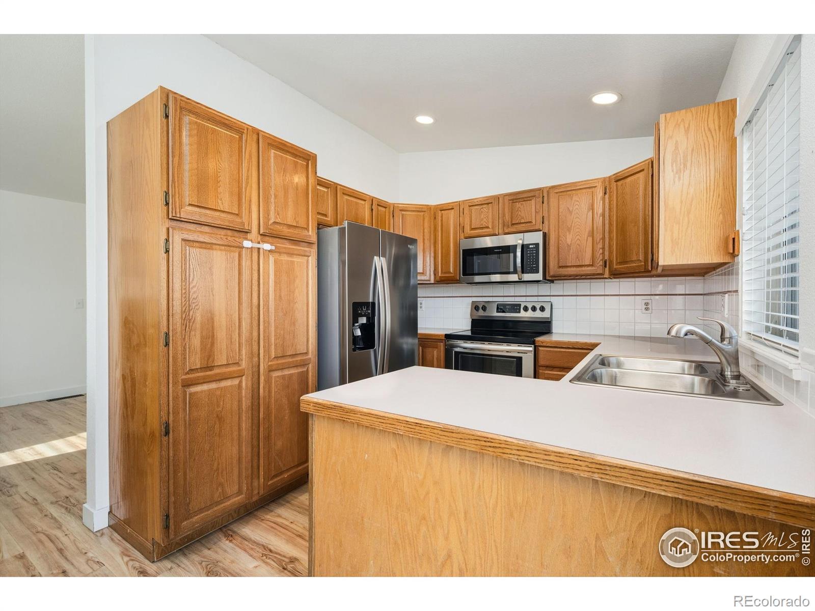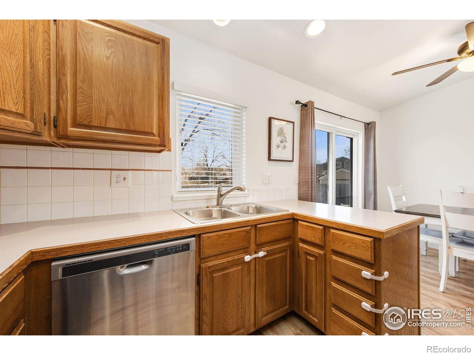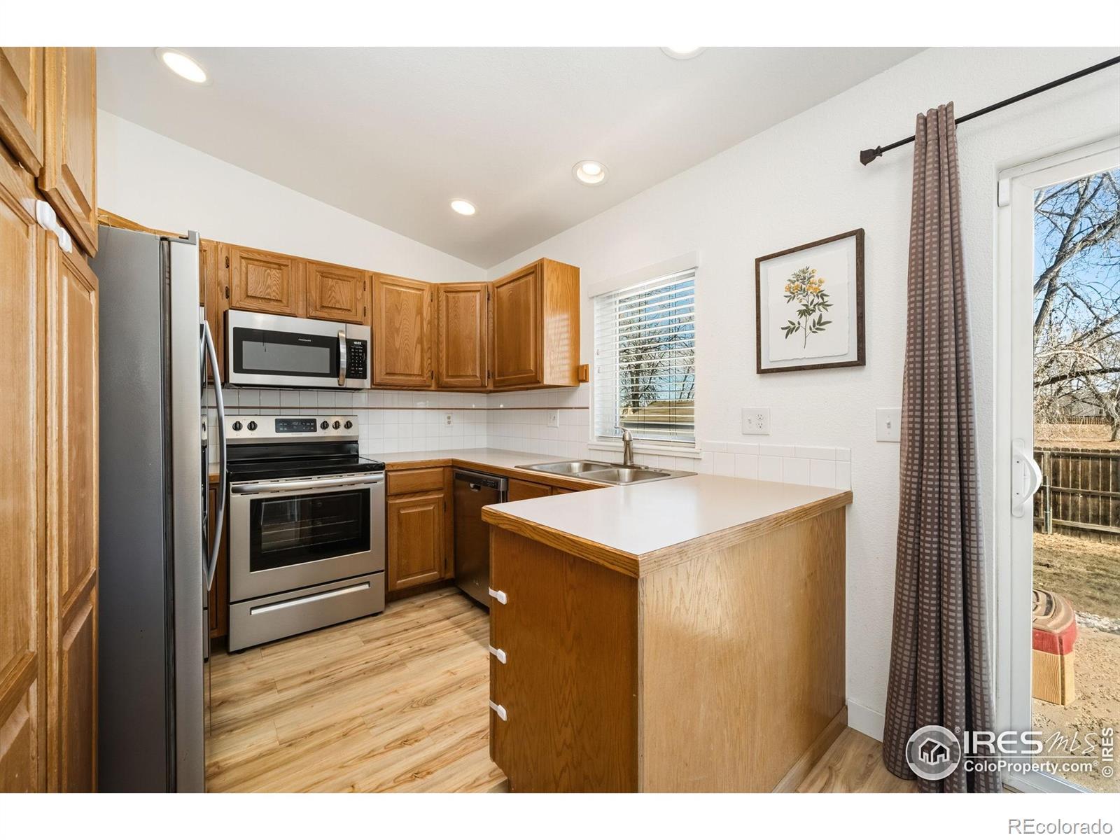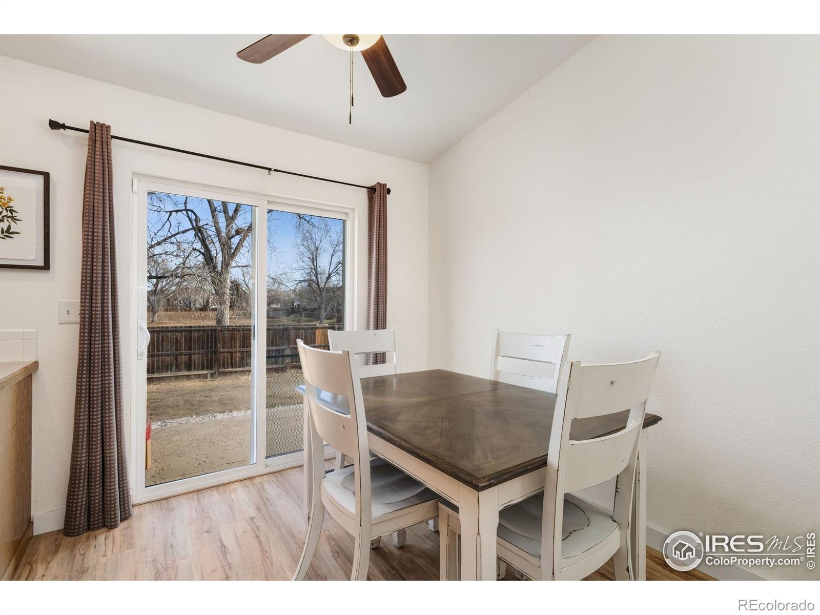 Welcome to 881 Columbine Dr in the heart of Windsor - a meticulously maintained home offering comfort, functionality, and a prime location close to downtown with easy access throughout town. The interior features a well-designed main level with a living room that flows seamlessly into the eat-in kitchen, complete with stainless steel appliances. The adjacent dining area is located just off the kitchen and includes sliding doors that open to the backyard, creating a smooth transition between indoor and outdoor living. Upstairs are two bedrooms and an upgraded full bathroom. The lower level provides additional living space with another bedroom, an upgraded 3/4 bathroom, and a spacious utility room with laundry hookups. Outside, the home offers a large backyard that backs to open space, providing privacy and a peaceful setting. A nice patio is ideal for outdoor enjoyment, and a large storage shed adds extra storage. Additional highlights include vinyl siding and a two-car garage. Conveniently located near downtown Windsor, this home combines thoughtful interior updates with a private outdoor setting and easy access to local amenities.