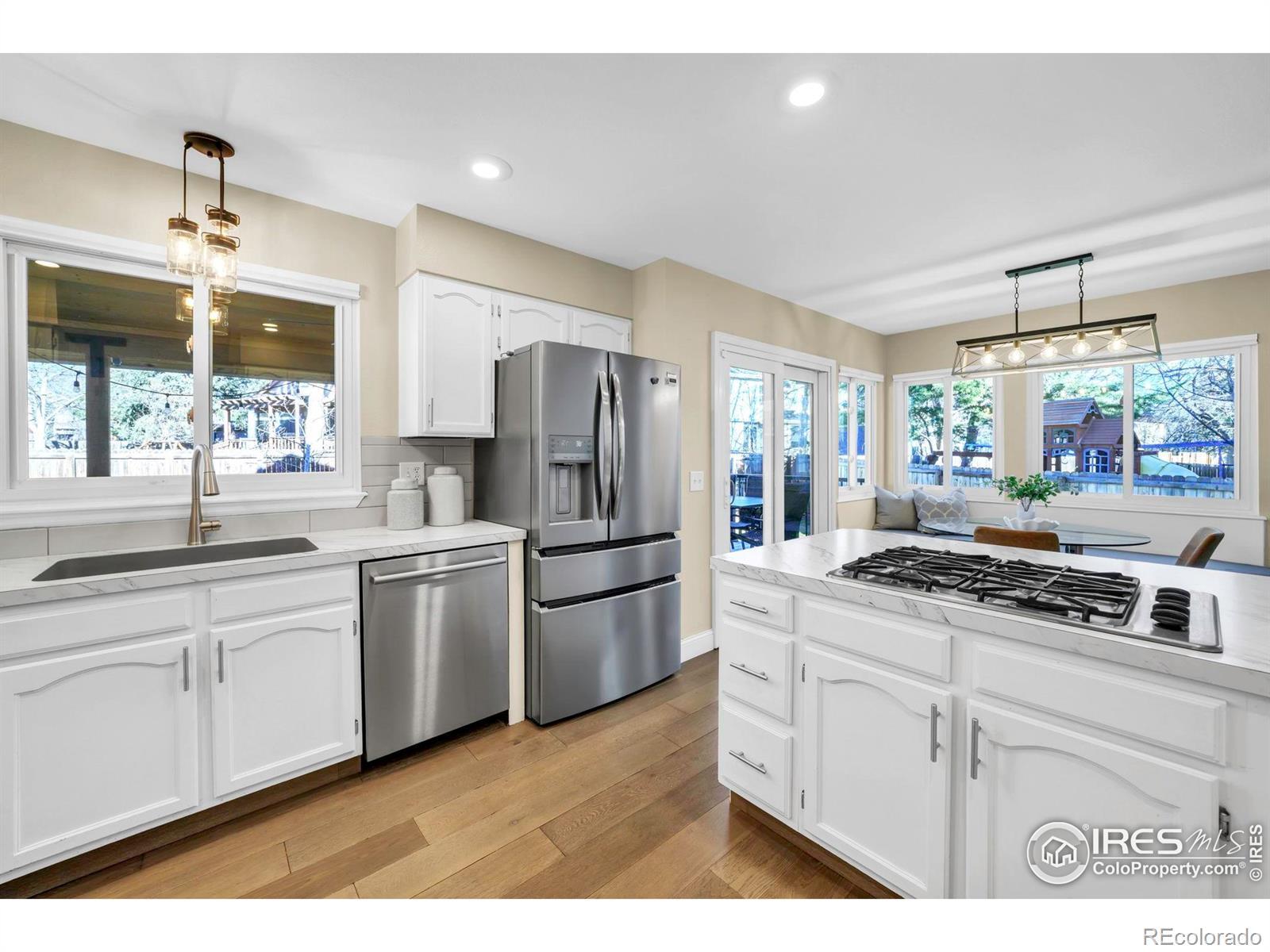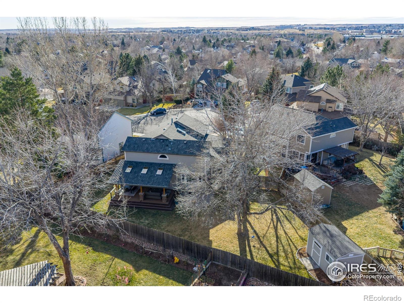 This spacious Louisville home on a quiet cul-de-sac near Fireside Elementary sits on a large lot with a covered patio designed for enjoying outdoor living. Inside, the main floor features a welcoming living and dining room near the entry, and an open kitchen with an eat-in nook that flows seamlessly to the covered deck and paved patio. The family room, with its fireplace and backyard views, sets the stage for both cozy evenings and bright afternoons. A main-level office offers a convenient work-from-home option, and a mudroom connects to the 3-car garage. Upstairs, the primary suite includes a spacious walk-in closet and a five-piece bath. Two additional bedrooms share a recently remodeled bath, connected by an airy hallway overlooking the living room below. The finished basement extends the living space with a large recreation room, guest bedroom, bathroom, dedicated laundry room, and ample storage. Don't miss the versatile backyard shed/office with a finished interior. All this, just minutes from Downtown Louisville, Coal Creek Trail, the Louisville Rec Center, and Relish Pickleball Club.