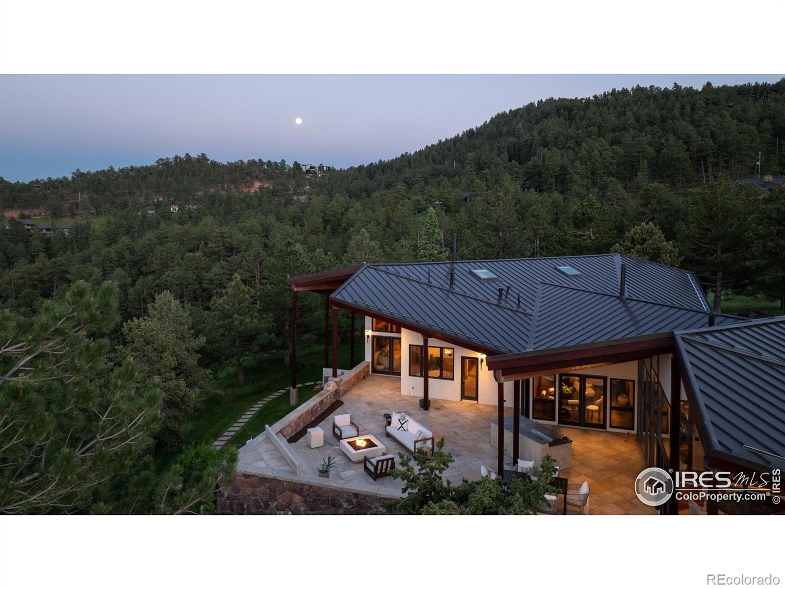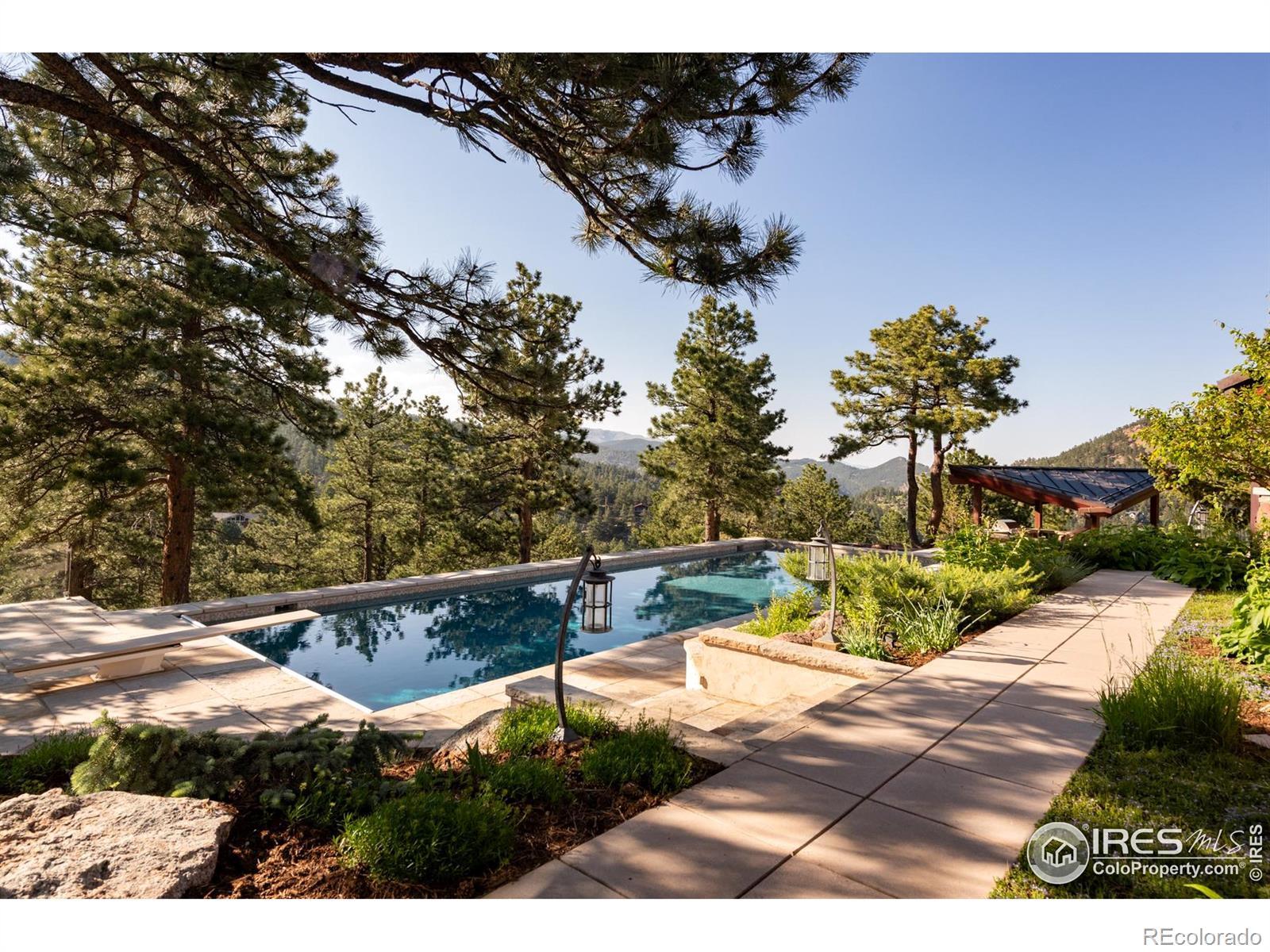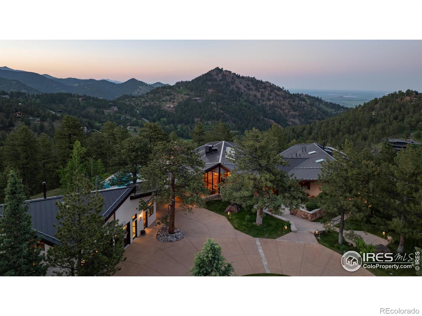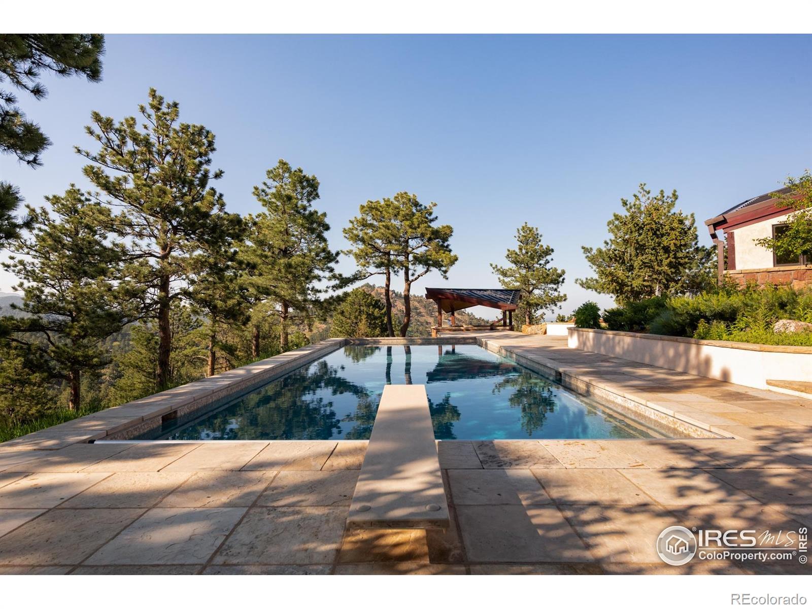A private, mountain sanctuary just minutes from Downtown Boulder and Pearl Street! The Ponderosa Mountain Estate offers rare architectural pedigree on a 10.6-acre level lot with expansive mountain views! Designed by renowned architect Hobart D. Wagener, this exceptional property features an elegant main residence, a private guest apartment, and lush landscaping. The estate embodies a seamless indoor-outdoor lifestyle, ideal for relaxation and entertaining, with immediate access to world-class outdoor adventures including hiking, biking and skiing. The 7,016 square-foot main residence is bathed in natural light, featuring Brazilian cherry hardwood and stone flooring, and redwood cedar ceilings with skylights. The vast great room is perfect for relaxation, with multiple fireplaces and bespoke cabinetry. Enjoy the gourmet kitchen with custom cabinetry, soapstone counters, and top-tier appliances like a Wolf range and Sub-Zero refrigerator. Adjacent spaces include a kitchen lounge, a cozy library, and an inspiring art studio. The lower level hosts a home theater, snack bar, garden-level office/bedrooms, and a massive laundry room. The main-floor owner's suite offers a private sitting room, wood-burning stove, and a luxurious spa bathroom. Additional accommodations include secondary bedrooms and a garage guest apartment with a chef's kitchen and home gym. Situated on a prime hilltop lot, the estate enjoys breathtaking views and year-round sunshine. The outdoor amenities rival a private resort, with an oversized, heated swimming pool, sauna and private hiking/biking trails winding through the property. The estate offers extensive infrastructure with two water sources (Pine Brook Hills water and a private well)-a rare and valuable asset-along with advanced home automation and security systems for exceptional comfort and reliability. Experience iconic mountain living in this exceptional Boulder retreat.