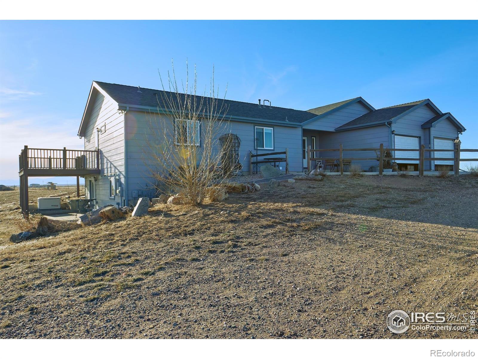 Welcome to this beautiful country home with 45.62 acres, lots of room to grow! This home has many many upgrades that make this home very desirable. This home is equipped with a Generac 16KW WHOLE HOUSE GENERATOR! There are two large concrete patios, front/east facing, and rear/west facing for family get togethers, a large walk out deck from the master bedroom for night gazing at the beautiful stars and northern lights from the privacy of your own backyard, or watching the beautiful sunsets right out your bedroom, while soaking up the quiet and peacefulness of rural life in Northern Colorado. The biggest bonus to this property is the large (36'x 64')heated and insulated shop already equipped with 220v outlets, with a two post auto lift. Oversized RV overhead door (14'x14') with opener along with one standard overhead door. There is a 3 stall/run Horse Barn(15x64) wired with overhead hay storage! A large indoor/outdoor dog kennel, along with two chicken coops, one with power and one without. There is a goat/hog pen(24x40)equipped with power and shelters. The automatic on-demand drinking post ( brand made) is a huge bonus for all you animal lovers. The 6'x8' tac shed is also insulated and is equipped with power. There is a large riding arena, and round pen. The oversized basement has lots of income potential as a rental, or lots of space for a multi family home. So many bonuses to this property for animal lovers as well as gardening lovers. There are several raised garden beds and a garden shed for all your fun tools. This is such a beautiful, fun, and amazing opportunity, with absolutely gorgeous and priceless views! Don't miss out!