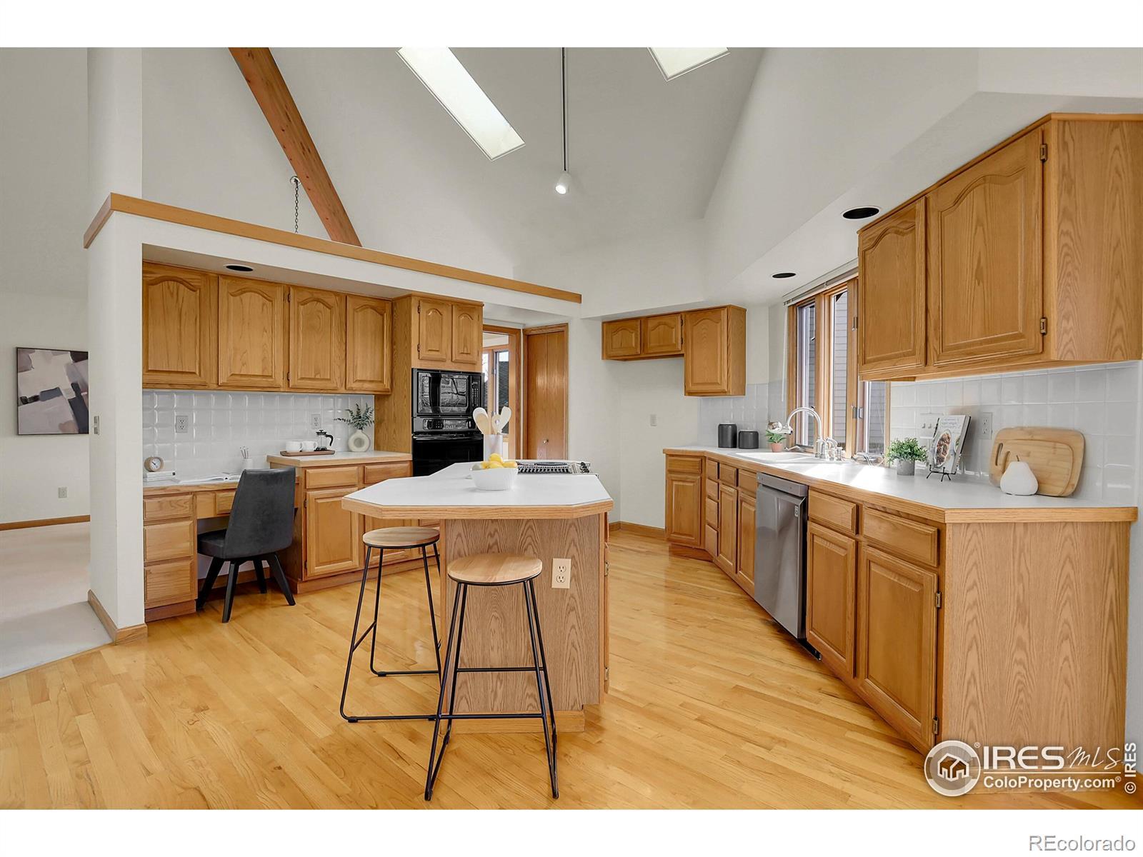 Tremendous opportunity to own a home offered by its original owners in a neighborhood where properties rarely change hands. Solid and well-built with exceptional bones, this residence is primed for thoughtful updating or presents an outstanding investment opportunity for a custom remodel. Enter to soaring, beamed ceilings and an abundance of natural light streaming through newer windows, creating an airy and inviting first impression. A sunny formal living room flows seamlessly into the formal dining room just off the kitchen, ideal for entertaining. The sunken family room is warm and welcoming, anchored by a cozy gas fireplace. The kitchen features a prep island, pantry, wet bar, and skylight, bathing the space in natural light and offering a functional layout ready to be reimagined. The main-level primary suite is generously sized with direct access to the deck and a five-piece bath complete with a jetted tub. Upstairs, a loft with built-ins provides the perfect home office or creative retreat. Two spacious secondary bedrooms each offer walk-in closets and share a Jack-and-Jill bath. The walk-out lower level includes a large recreation room, abundant storage, and opens to a covered patio perfect for indoor-outdoor living. Mature trees and established landscaping enhance the private, serene setting. An unbeatable location near Harper Lake, Davidson Mesa, miles of walking trails, and a nearby recreation center, all within a quiet, friendly neighborhood. A rare opportunity to create something truly special in an exceptional setting.