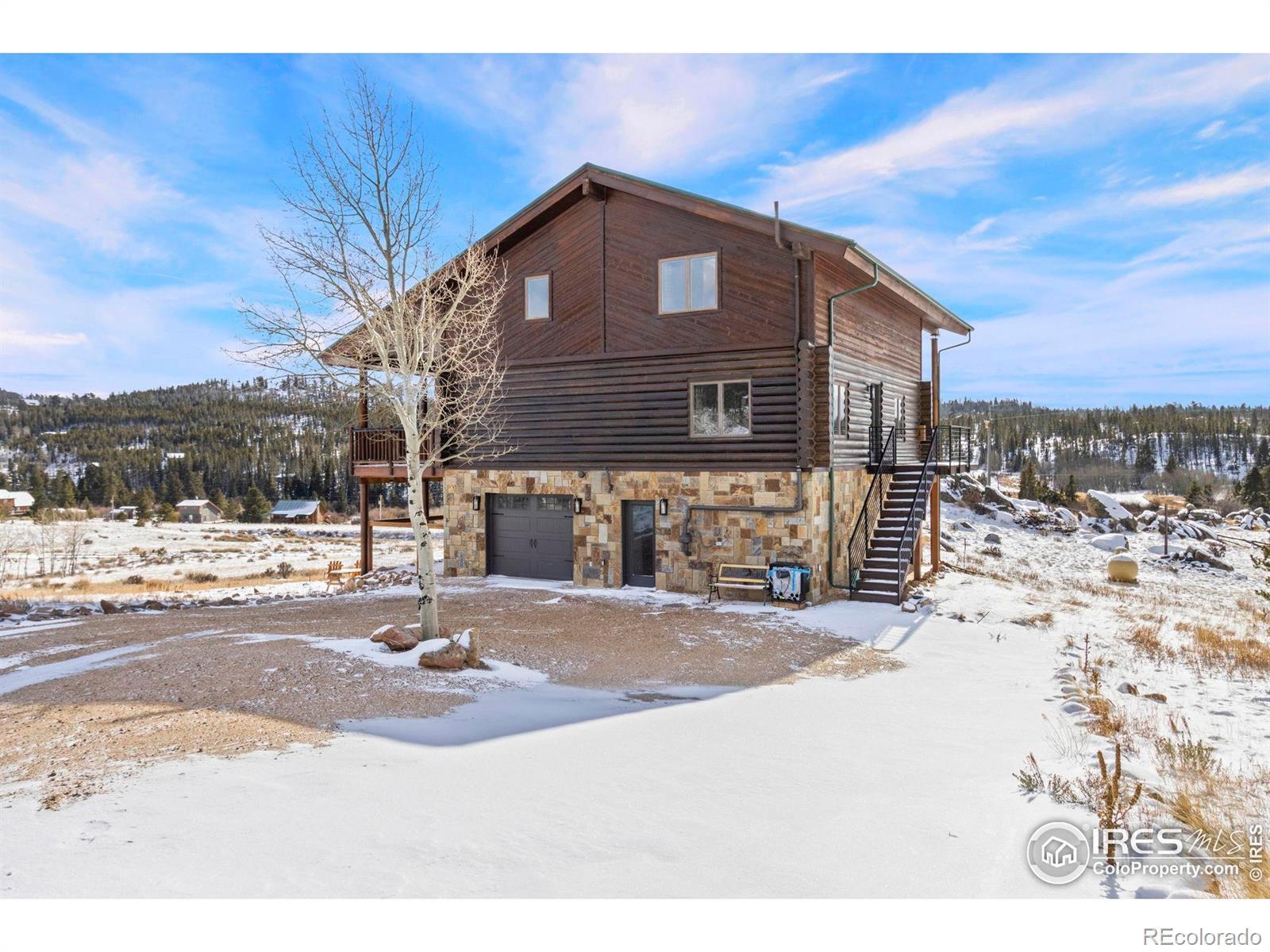 Come see this renovated Swedish Cope Log home located on 2.6 acres in a close-in filing of Crystal Lakes. All logs have been newly stained and chinked, inside and out. Highlights of the interior include dramatic timber framing with tongue and groove ceiling, and amazing natural light throughout. This luxurious home features heated bathroom floors, double vanity and high-end shower tile installation. Gourmet kitchen includes custom cabinetry, Jenn-Air appliances, granite counters, stone backsplash and a view of the Aspen grove to the East. Upper loft area is 16' x 23', carpeted and opens to great room below. Lots of opportunities here for family room, office, etc. The lower level bar has been recently installed in the previous family room and can easily be relocated. Home has tankless water heater, forced air furnace with humidifier, and backup power generator for peace of mind and security. The attached garage is 31' x 15' and can typically accommodate a car and ATV. Step outside to see the stunning sunrises and sunsets from the covered, wrap-around deck. This top of the line cabin checks all the boxes! It's the perfect year-round home or part-time vacation spot in the mountains of Red Feather Lakes. The HOA includes fishing passes to incredible private fishing lakes and streams, just minutes away. If you're looking for convenience and quality in a mountain cabin, you've found it!