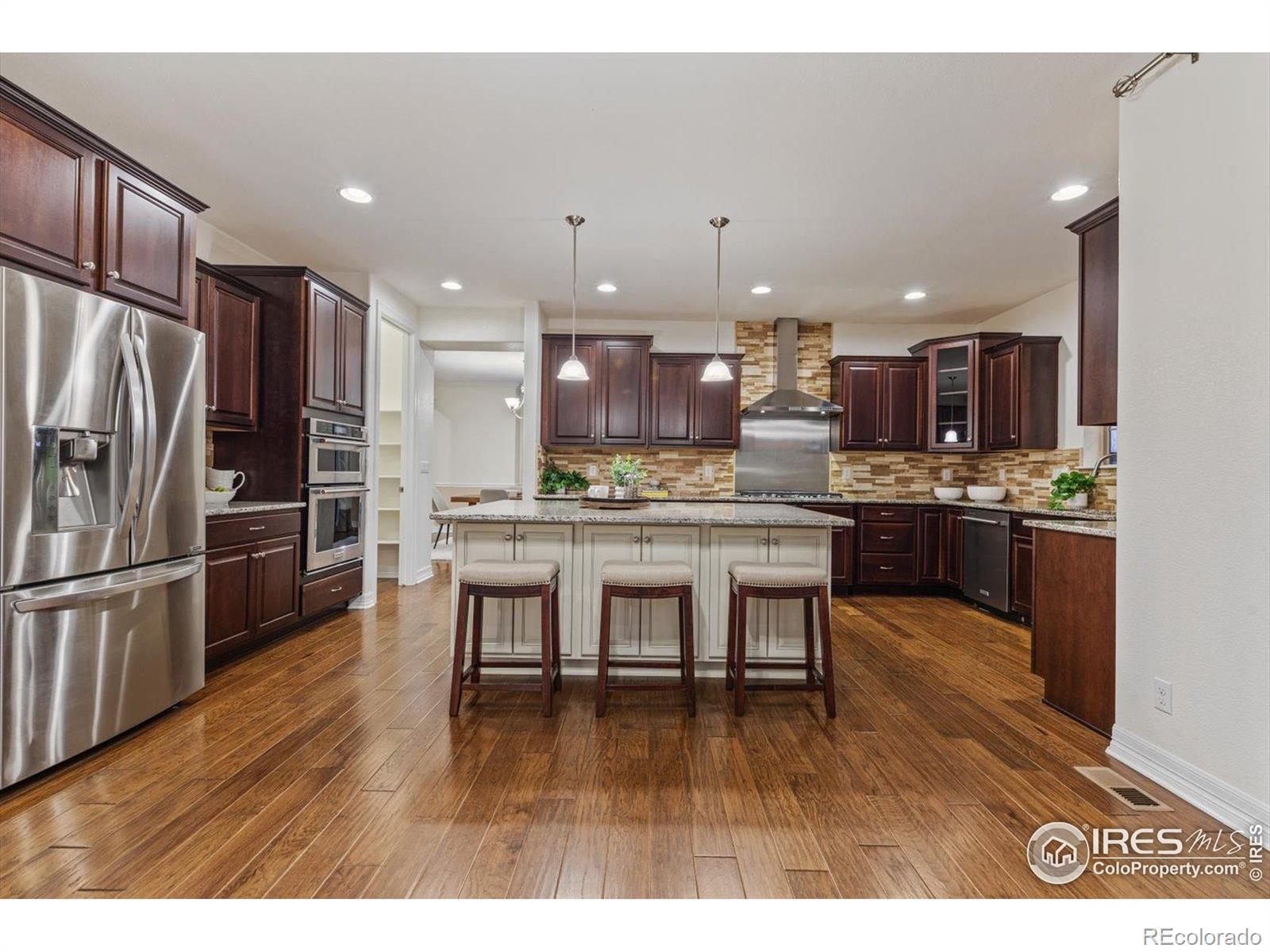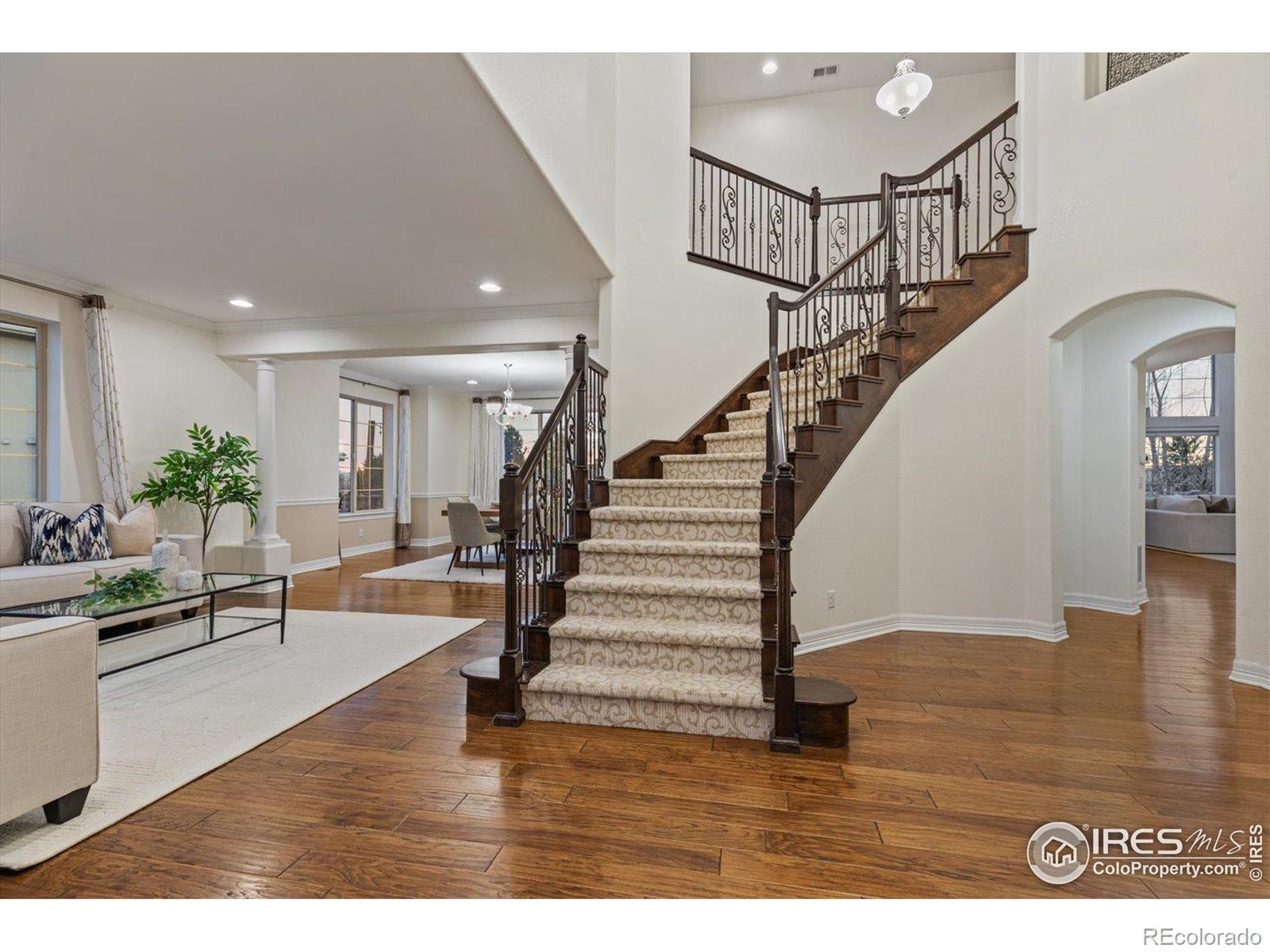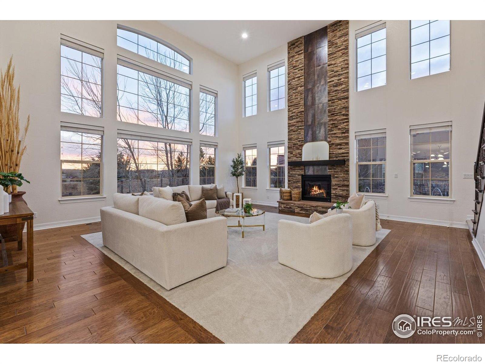 Discover the perfect blend of indoor and outdoor living at 1150 Maddox Court in Broomfield's highly desirable Lambertson Farms / McKay Shore Preserve area. This thoughtfully designed floor plan offers an ideal layout for both everyday living and entertaining, enhanced by two staircases that add functionality, flow, and privacy. This 5-bedroom, 4-bathroom home features a dramatic, light-filled two-story family room with two walls of windows, a chef's kitchen, and a luxurious primary suite. All bedrooms include walk-in closets and ceiling fans, with new carpet recently installed in the bedrooms for added comfort. A large mudroom and separate laundry room provide everyday convenience, while the dual staircases create seamless circulation between levels. Step outside to a beautifully landscaped backyard retreat complete with a covered porch, patio with stone fireplace, tranquil water features, mature trees, multiple fruit trees, and garden beds-ideal for entertaining or relaxing year-round. Enjoy easy access to Denver, DIA, and Boulder, along with nearby parks, trails, pool, and McKay Lake. This home delivers exceptional space, privacy, and a lifestyle rooted in convenience and natural beauty.