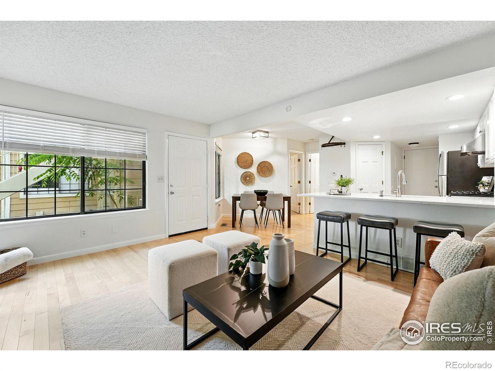This beautifully updated condo offers 2 bedrooms, 1 bath, and the convenience of an attached one-car garage. From the moment you walk in, you'll be captivated by the rich hardwood floors and the abundance of natural light that fills every corner, creating a warm and inviting atmosphere. Tucked among the trees, this home strikes the perfect balance between privacy and connection. The flexible front room is a true bonus-transform it into a bedroom, home office, art studio, or even a personal gym. The seasonal views will have you falling in love with Colorado again and again. Nestled in the sought-after Powderhorn community, you'll enjoy mature trees, pool, tennis courts, a hot tub for unwinding, and workout stations for active days. Plus, this location is a gateway to Boulder's best-breweries, shops, the Boulder Reservoir, and more are just moments away.