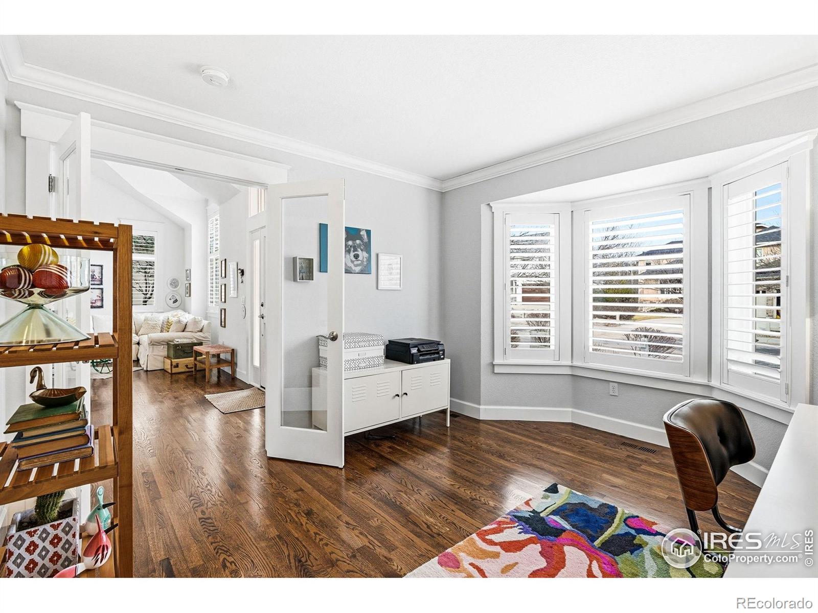 Located in the custom section of Indian Peaks West, 2812 Shoshone offers a rare combination of privacy, light, and an exceptional setting. Situated on a private lot directly across from the main neighborhood park and just a few houses from the school bus stop, this home is both peaceful and convenient. The floorplan features four bedrooms on the upper level, wood floors on the main and upper levels, and high ceilings that bring in abundant natural light throughout. A main-floor office provides an ideal work-from-home space, while the living areas flow easily for everyday living and entertaining.The finished basement is perfect for hosting Super Bowl parties, accommodating guests, or creating a comfortable mother-in-law suite. Outside, the backyard is private and beautifully landscaped, complete with a fountain that adds a calming touch. A three-car garage offers plenty of storage. Close to the YMCA (year round pool and ice rink), Jeannot's Patisserie, Atlas Valley, and just minutes to Old Town Louisville and Lafayette, this home combines a great layout with a highly desirable location. Indian Peaks West is known for the best trick or treating in Boulder County, multiple neighborhood parks and food trucks hosted in the park every other week in Summer and Fall.