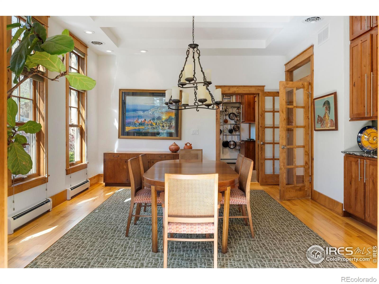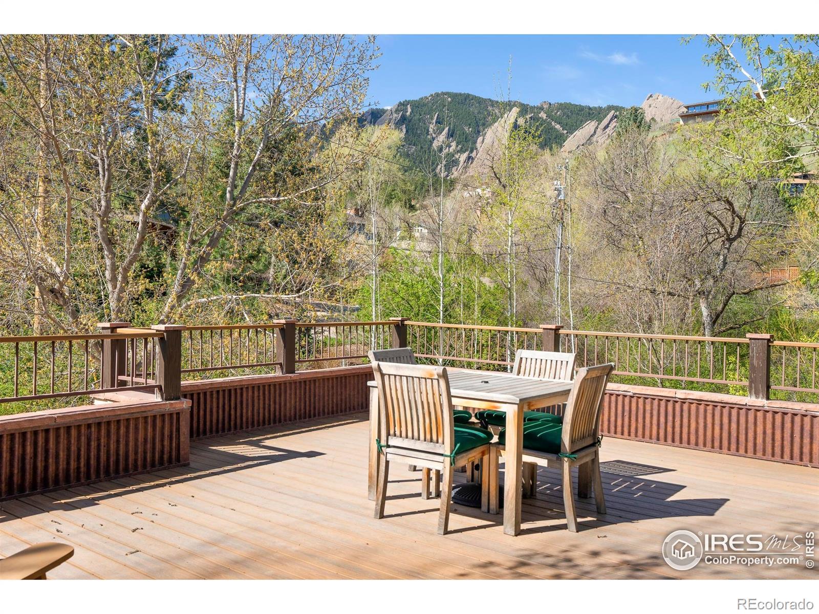 Set beneath the iconic Flatirons and bordered by open space and trails, this exceptional Chautauqua retreat offers a rare combination of privacy, views and refined craftsmanship. From golden sunrises to twinkling city lights at dusk, the setting delivers a constantly changing backdrop of natural beauty. Situated on a lush, tree-filled lot, the property feels like a true sanctuary, complete with tranquil water features and frequent wildlife sightings. Multiple decks and patios invite seamless indoor-outdoor living, perfectly positioned to take in the surrounding landscape. Inside, the home is thoughtfully designed for both everyday living and inspired entertaining. A gallery-style hallway with custom art niches and designer lighting sets a sophisticated tone. The commercial-grade chef's kitchen features GE Monogram appliances, a six-burner range with griddle, double ovens, dual dishwashers and rich knotty alder cabinetry, complemented by a butler's pantry and formal dining room. The primary suite offers its own deck with Flatiron views, a wet bar, spa-like bath and generous walk-in closet. Two additional upper-level en-suite bedrooms, a main-level guest suite, two dedicated offices, and a sun-filled observatory-style atrium provide exceptional flexibility. Thoughtful details include Anderson windows, hickory wood floors, Hunter Douglas window treatments, dual staircases and the option to add an elevator. Designed with sustainability and precision in mind, the home was built using advanced techniques to reduce environmental impact. Built off-site for enhanced quality control, it was then thoughtfully assembled on-site to harmonize with its natural surroundings.Tucked into one of Boulder's most coveted and peaceful neighborhoods, Chautauqua offers an unmatched lifestyle moments from downtown, the University of Colorado campus and miles of trails leading into the foothills. A rare opportunity to experience refined living in one of Boulder's most iconic settings.