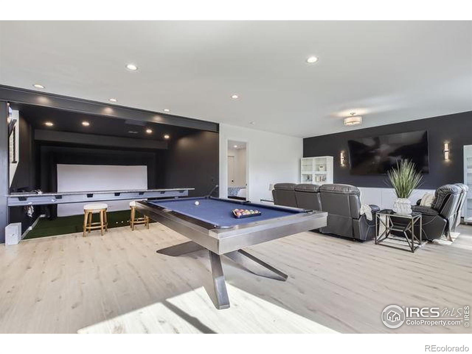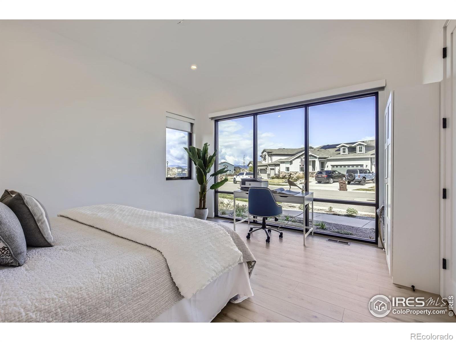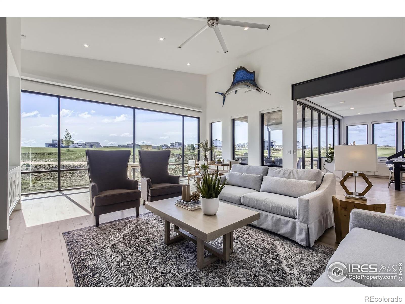 Welcome to elevated Colorado living at its finest. Perched above the #1 green & #2 tee box of the prestigious Raindance National Golf Course, this custom-built masterpiece offers an unrivaled blend of modern design, resort lifestyle, and mountain-view serenity. With over 6,377 sq ft of impeccably designed living space, this 4 bedroom, 5 bathroom estate includes a 602 sq ft private casita-complete with a flex-room, full bath, living area, and kitchenette-perfect for guests, multigenerational living, or luxury office/studio space. The heart of the home is a grand open-concept main floor featuring floor-to-ceiling windows, a fully collapsible glass wall, & seamless indoor-outdoor integration to the expansive deck with built-in hot tub & panoramic mountain views. The chef's kitchen stuns with high-end appliances, massive island, designer cabinetry, and a butler's pantry. Retreat to the main-level primary suite sanctuary with a spa-inspired bath, large shower & oversized custom walk-in closet. Downstairs, a daylight partial walkout basement features two additional en-suite bedrooms, a full bar, game area, & your own state-of-the-art golf simulator lounge. Cap it off with an 840 sq ft rooftop patio, offering unobstructed vistas of the Rocky Mountains, the course, & Windsor's spectacular sunsets.