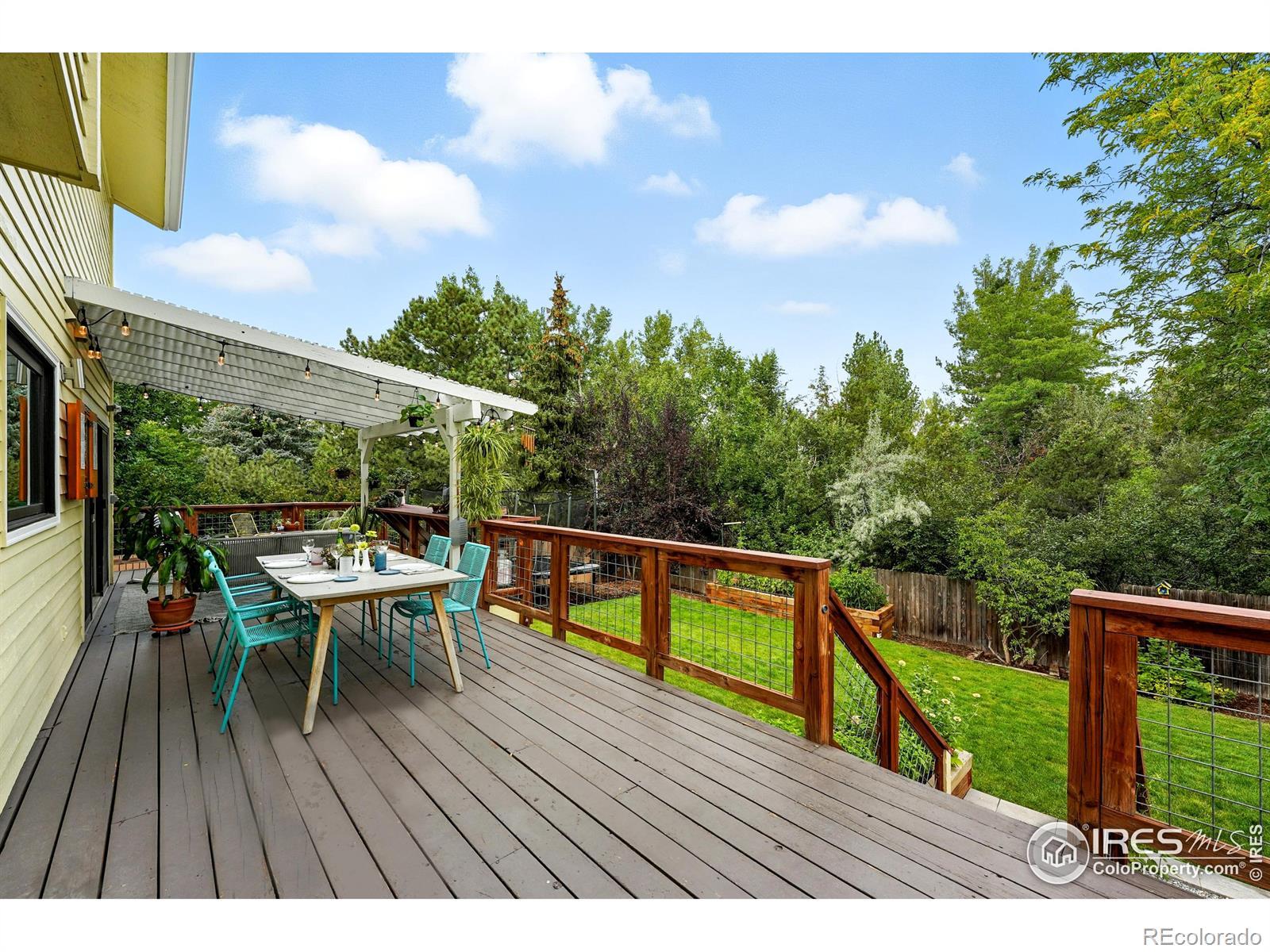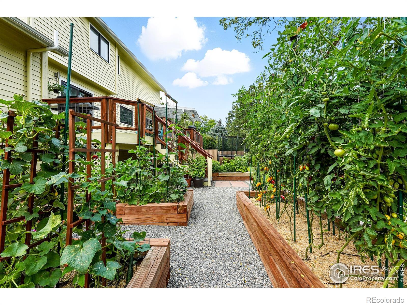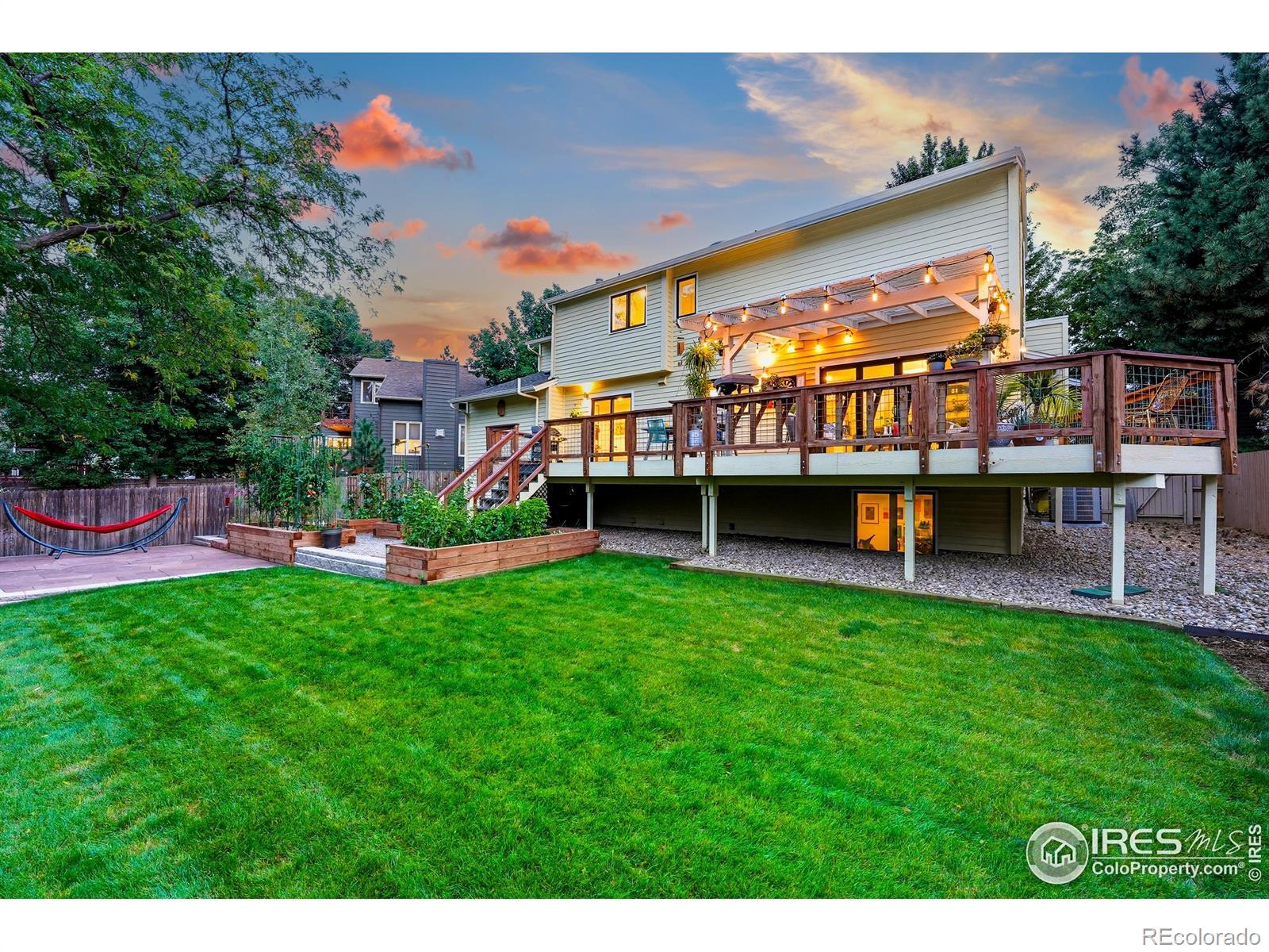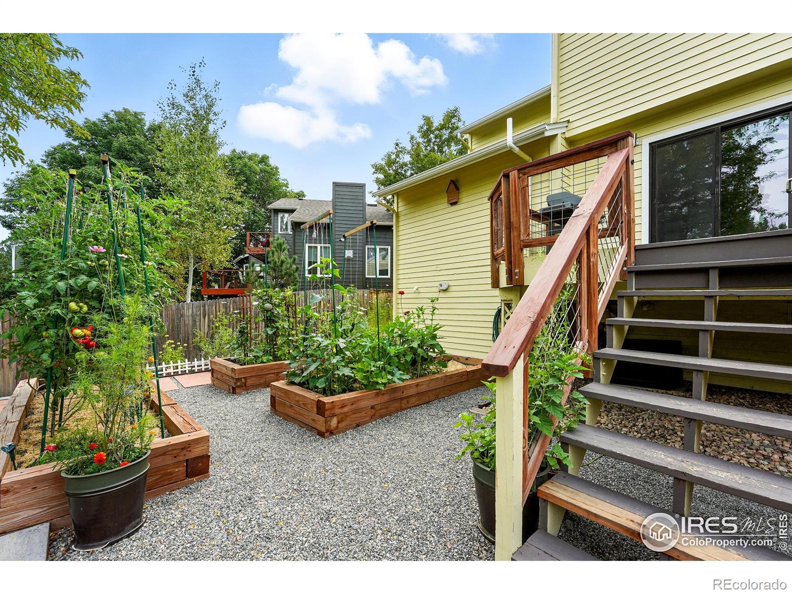 Perfectly tucked near the end of a quiet cul-de-sac in the heart of Greenbelt Meadows-one of East Boulder's most sought-after neighborhoods-this incredible home blends privacy, community, and access to open space. At the end of the street, a small neighborhood pocket park creates a welcoming green space where residents pass through on their way to nearby trails, open space, and community amenities. Thoughtfully updated throughout, the home features extensively remodeled kitchen and baths, gleaming hardwood floors, and a bright, vaulted open floor plan filled with natural light. The beautifully designed kitchen showcases KitchenAid and Bosch appliances, solid-surface countertops, a 5-burner gas range, a large pantry with slide-out shelving, and custom tile work. The inviting living room centers around a cozy fireplace and a large picture window overlooking the lush backyard. Recent updates include brand-new carpet, fresh interior paint, and extensive recessed (can) lighting throughout. Upstairs, the spacious primary suite offers dual closets and a five-piece bath with soaking tub and separate shower. The finished lower garden-level adds a fourth bedroom with a walk-in closet, a 3/4 bath, a recreation room, and generous storage-ideal for guests or a home office. Step outside to an expansive ~400 sq ft deck with pergola overlooking a private gardener's paradise. The front and back yards were fully reimagined in 2023 and feature mature trees, vibrant gardens, a large patio, and nine irrigated raised beds on a .21-acre lot. The oversized 589 sq ft garage includes built-in storage, and owned solar panels transfer free and clear for long-term energy savings. Greenbelt Meadows offers a neighborhood pool, hot tub, tennis and pickleball courts, basketball court, playground, and community park. Residents enjoy direct access to the Bobolink Trail, East Boulder Rec Center, and convenient access to US-36, Table Mesa, and RTD Park-and-Ride.
