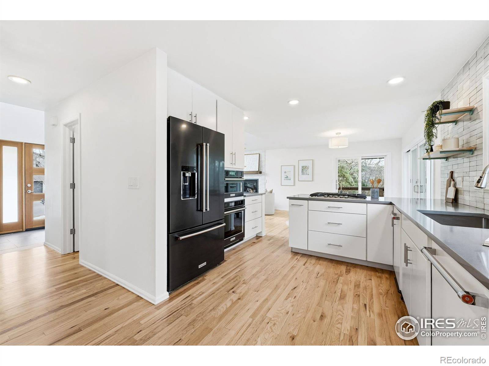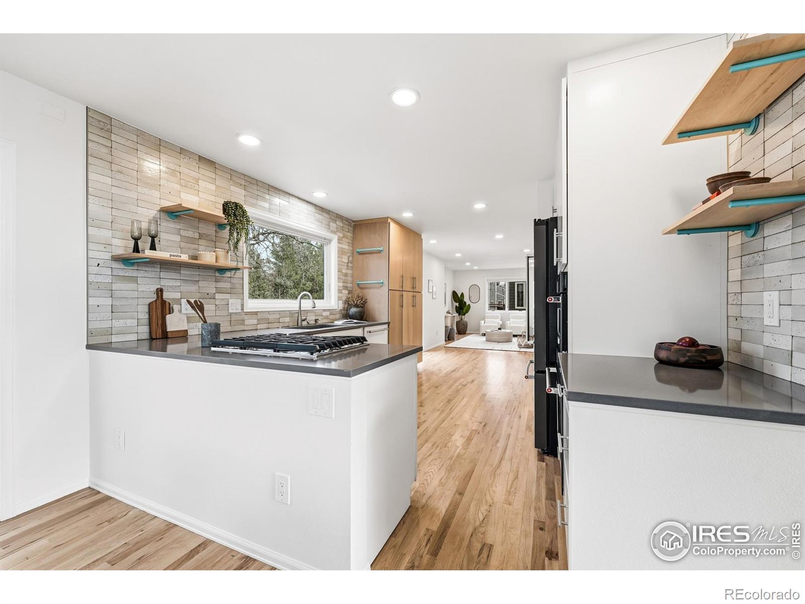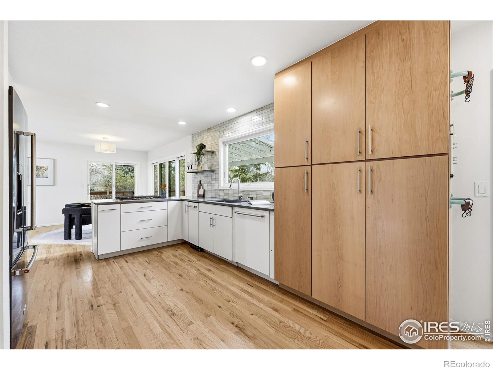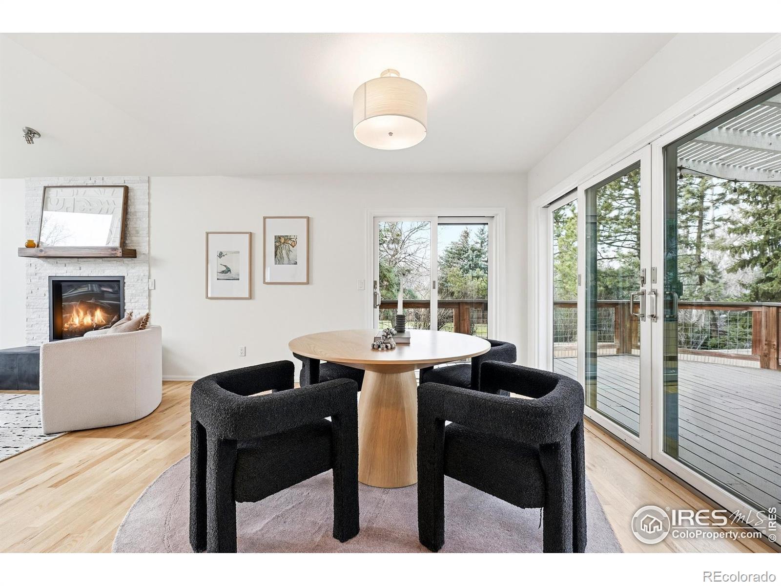 Perfectly tucked near the end of a quiet cul-de-sac in the heart of Greenbelt Meadows-one of East Boulder's most sought-after neighborhoods-this incredible home blends privacy, community, and access to open space. At the end of the street, a small neighborhood pocket park creates a welcoming green space where residents pass through on their way to nearby trails, open space, and community amenities. Thoughtfully updated throughout, the home features extensively remodeled kitchen and baths, gleaming hardwood floors, and a bright, vaulted open floor plan filled with natural light. The beautifully designed kitchen showcases KitchenAid and Bosch appliances, solid-surface countertops, a 5-burner gas range, a large pantry with slide-out shelving, and custom tile work. The inviting living room centers around a cozy fireplace and a large picture window overlooking the lush backyard. Recent updates include brand-new carpet, fresh interior paint, and extensive recessed (can) lighting throughout. Upstairs, the spacious primary suite offers dual closets and a five-piece bath with soaking tub and separate shower. The finished lower garden-level adds a fourth bedroom with a walk-in closet, a 3/4 bath, a recreation room, and generous storage-ideal for guests or a home office. Step outside to an expansive ~400 sq ft deck with pergola overlooking a private gardener's paradise. The front and back yards were fully reimagined in 2023 and feature mature trees, vibrant gardens, a large patio, and nine irrigated raised beds on a .21-acre lot. The oversized 589 sq ft garage includes built-in storage, and owned solar panels transfer free and clear for long-term energy savings. Greenbelt Meadows offers a neighborhood pool, hot tub, tennis and pickleball courts, basketball court, playground, and community park. Residents enjoy direct access to the Bobolink Trail, East Boulder Rec Center, and convenient access to US-36, Table Mesa, and RTD Park-and-Ride.