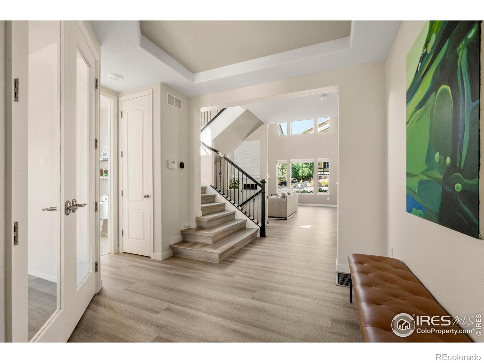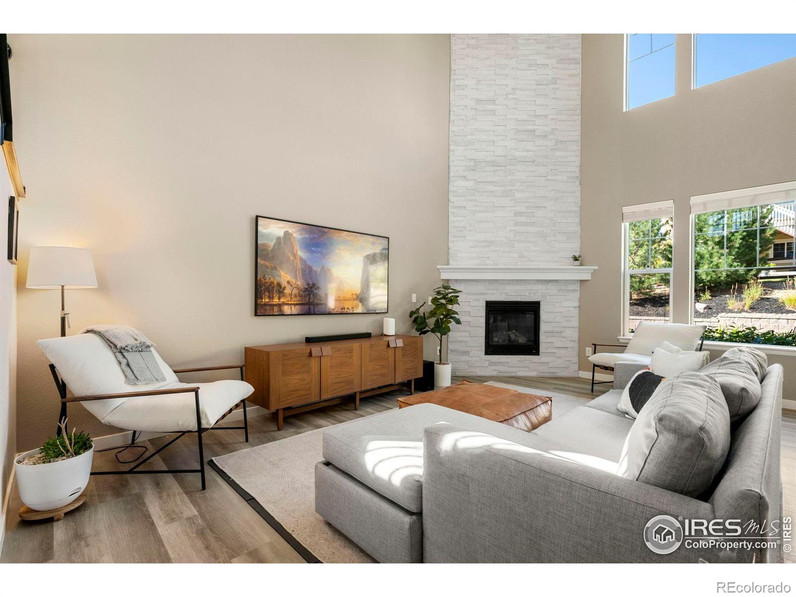 Welcome to this immaculate 2-story in the highly sought-after Leyden Rock community. With 4 bedrooms, 4 bathrooms, and a beautifully finished basement, this home blends comfort, style, and function. The main level offers a private office off the foyer, luxury vinyl flooring, and a gourmet kitchen with quartz counters, stainless appliances, gas cooktop, large island, and walk-in pantry. The kitchen flows seamlessly into the soaring living room with a stone fireplace and opens to the covered patio and beautifully landscaped yard. Off the 3-car garage, a convenient mudroom keeps everyday living organized. Upstairs, the primary suite features a tray ceiling, spa-like bath with dual vanities, soaking tub, tiled shower with bench, and dual walk-in closets. Two additional bedrooms share a Jack & Jill bath, while the versatile loft captures mountain views and provides the perfect spot for a playroom, office, or second living space. The finished basement is a true retreat. Gather in the expansive family room, entertain at the stylish wet bar, or host guests in the large bedroom with full bath. This inviting space is ideal for movie nights, game day parties, or quiet evenings in. Leyden Rock amenities include a clubhouse with pool, multiple parks and playgrounds, and miles of trails. Nearby are Standley Lake, Rocky Flats Wildlife Refuge, and White Ranch Park, with easy access to Golden, Boulder, and Denver.