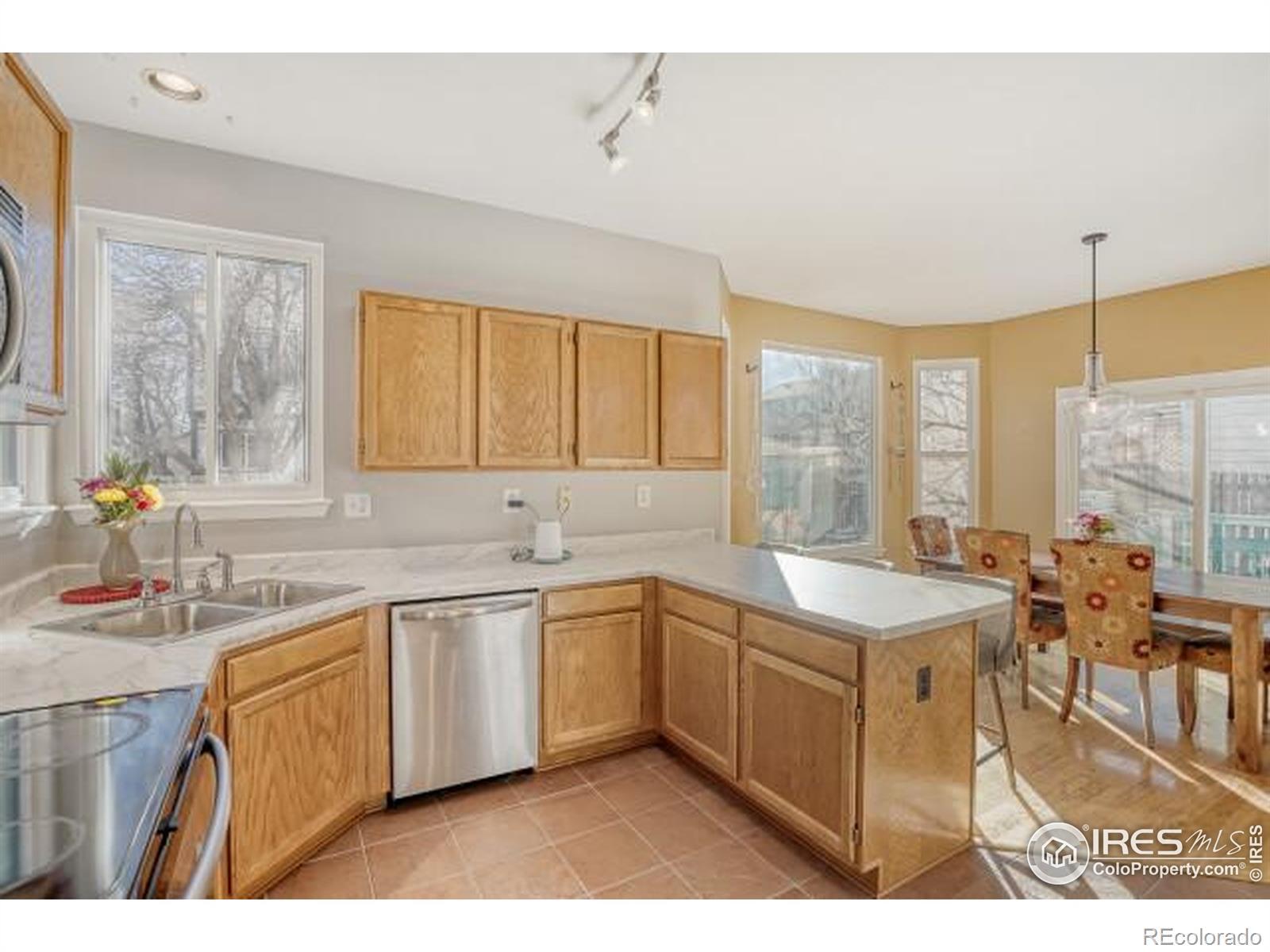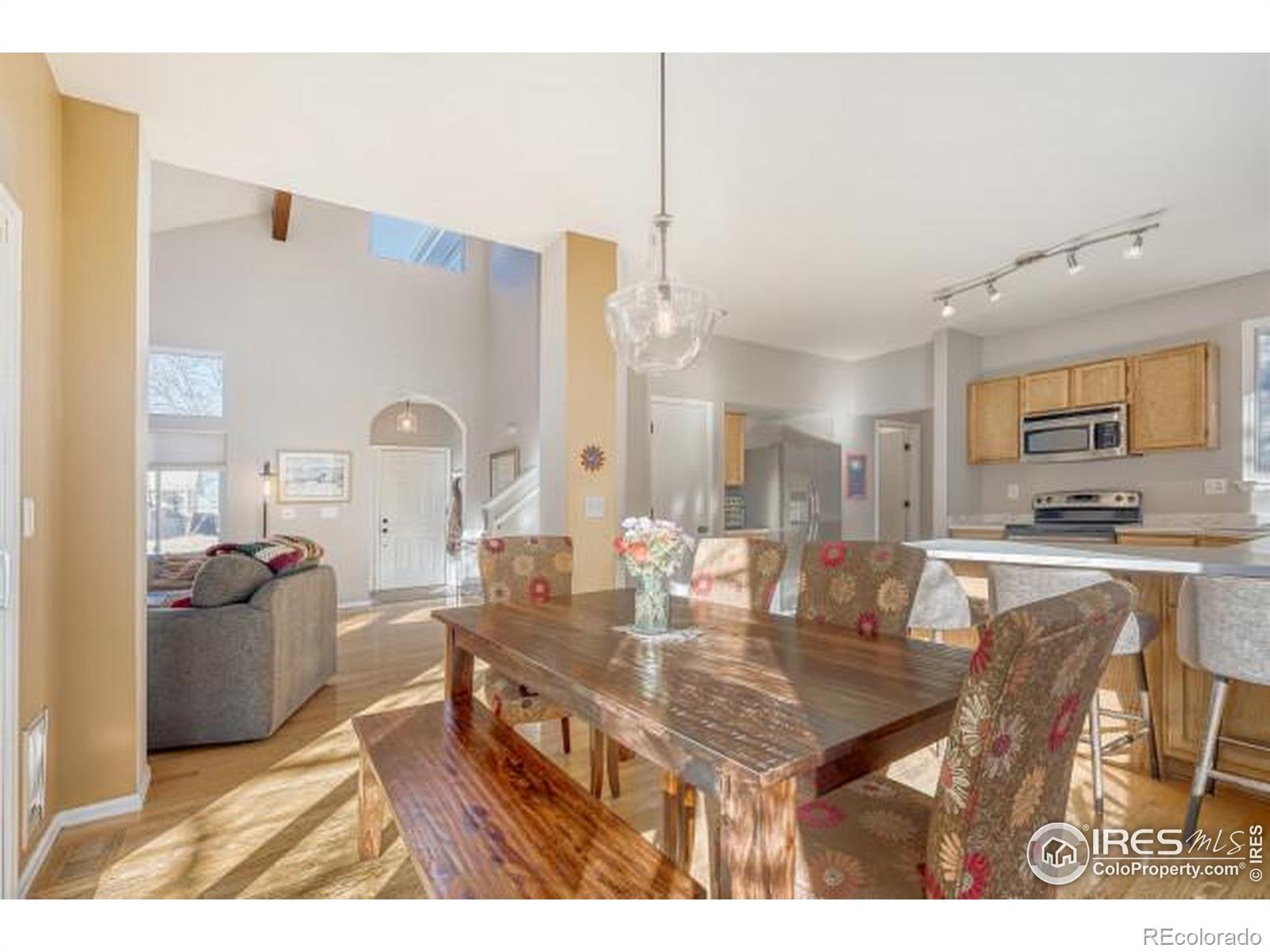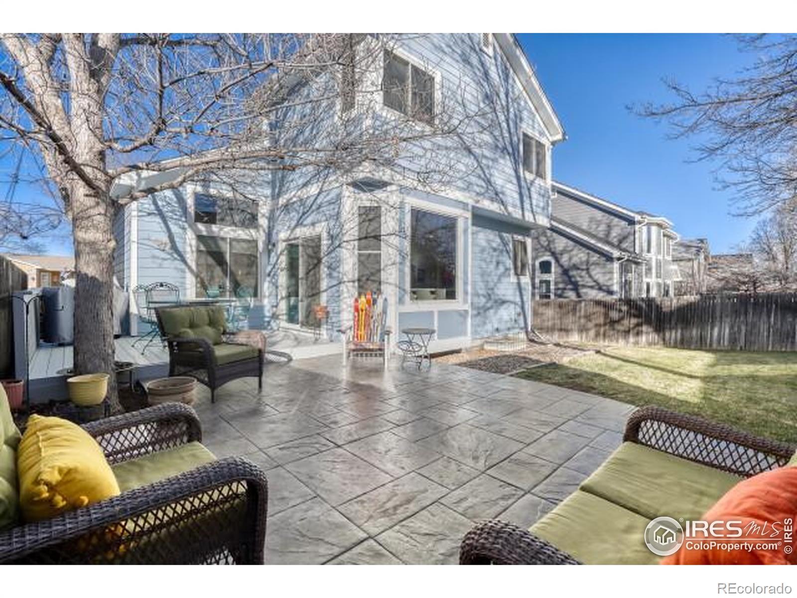 This beautifully maintained 3-bedroom, 3-bath home, is move in ready! Nice open floor plan! Living room with lots of windows and high ceilings, dining room with bay window, kitchen with all stainless steel appliances included, new counter tops, porcelain tile floors, pantry, main floor laundry right off the garage, basement family room has surround sound system included, and a large play area and a rough in for an additional future bath. Primary bedroom has walk in closet, vaulted ceilings and updated 3/4 bath. Secondary bedrooms have vaulted ceilings and bamboo floors. Back yard has large deck (14X10) and a large stamped and colored patio, (20x16) and a 10X8 storage shed, central air conditioning, sprinkler system, 2 car garage! Close to walking trails, easy access to Boulder or Denver, Great opportunity in a great neighborhood. Come take a look!