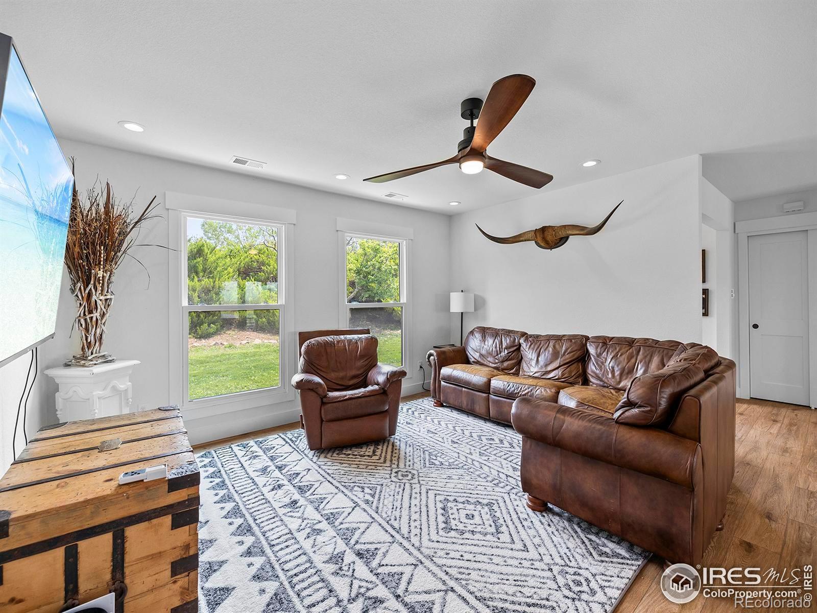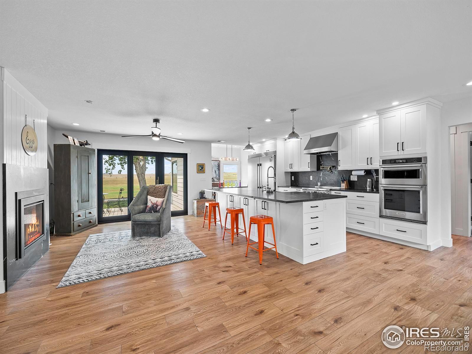 Open house changed to 02/01 from 1-3 pm. Seller is offering $25,000 in concessions to the buyer with an acceptable offer. Nestled on 40 acres with mountain views, this stunning 4-bedroom 3 bath home offers the perfect blend of rural charm and modern comfort. The beautifully remodeled home features an open, airy layout with updated high-end finishes throughout including LVP flooring, gas fireplace, designer chef kitchen w/ center island, quartzite countertops, induction range and 2 dishwashers creating a warm and inviting space to relax and entertain. Outside, the expansive land provides endless possibilities, complete with a 6249 sq ft 10 stall barn with private office for livestock or storage and includes 2 ponds w/ adjudicated water that runs year round to ensure lush, fertile grounds. Plenty of room for all of your toys in the 1800 sq ft 4 bay garage. All this plus solar panels, new HVAC system, tankless HWH and more. Whether you dream of farming, raising animals or simply enjoying the tranquility of country living, this property is a true gem that offers both practicality and beauty in abundance. One share of North Poudre Water available at an additional cost.