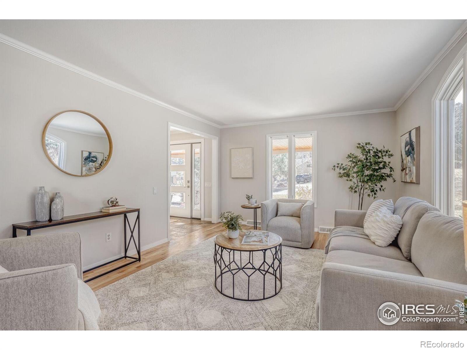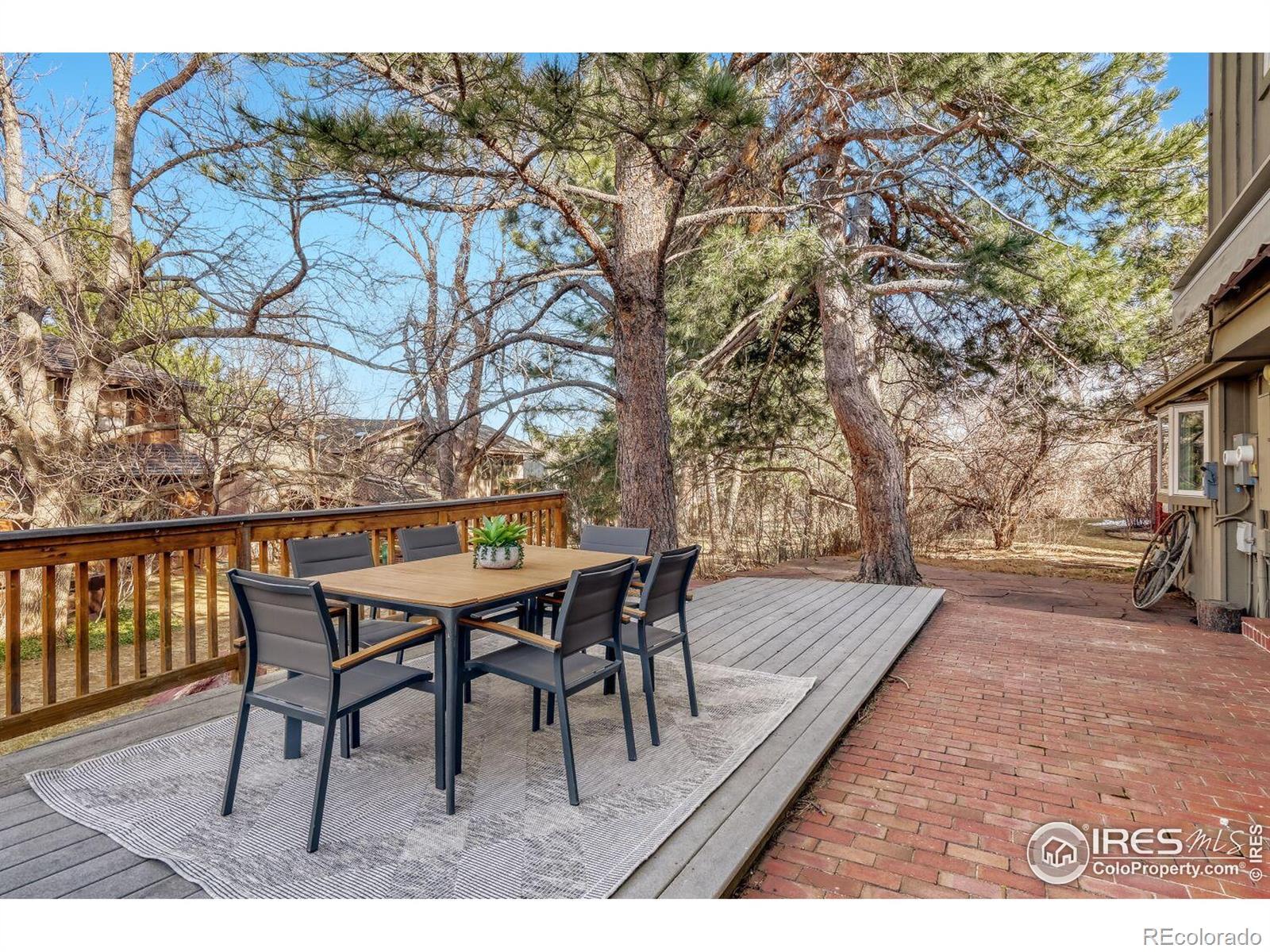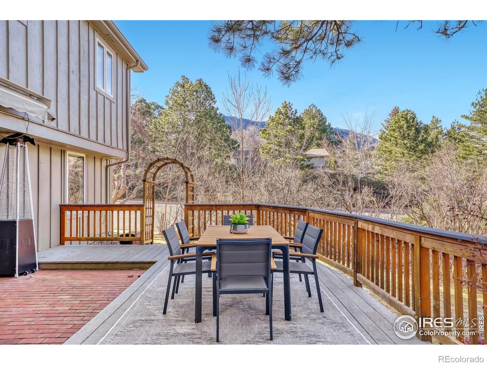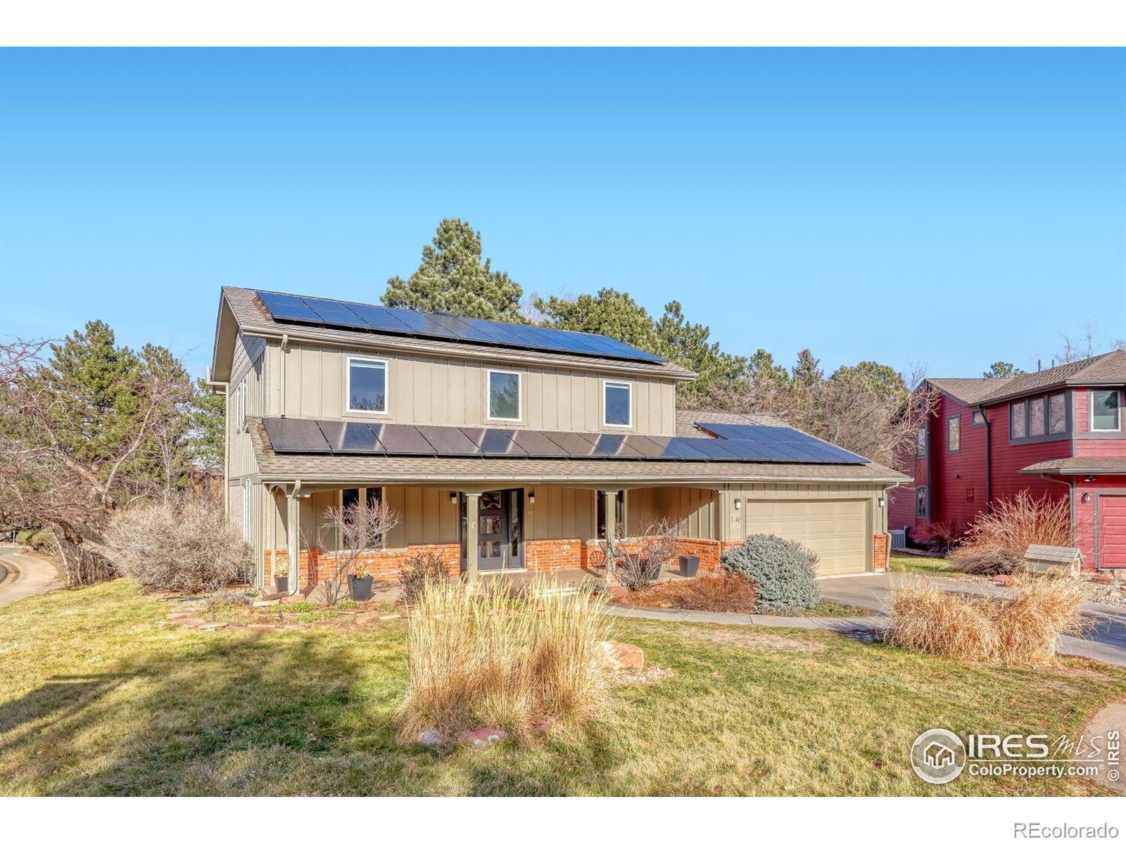 Amazing location in Devil's Thumb. This thoughtfully updated 5 bed/4 bath home is nestled in one of Boulder's most sought-after neighborhoods and features a 10 kW owned solar system that nearly pays the entire electric bill. Refinished hardwood floors, vaulted ceilings, and an updated kitchen with quality finishes set the stage for inviting living spaces. The main level features a formal living room, eat-in dining area, and cozy family room with two newly added skylights that fill the space with natural light. Fresh interior and exterior paint, custom built-ins, and stylish lighting add warmth and character. There are four bedrooms on the upper level and it features a remodeled primary bathroom offering a spa-like retreat. The finished basement has a bedroom, a bathroom, and rec room - which makes the flexible floor plan perfect for hosting guests, working from home, or creating a space to play. The secluded backyard oasis has a flagstone patio and spacious deck, all surrounded by lush landscaping and stunning mountain views. Located just steps from miles of scenic trails, top-rated schools, and an exclusive HOA with a private pool and tennis courts, this exceptional home offers the perfect blend of nature, comfort, and community. All measurements to be verified by buyer.