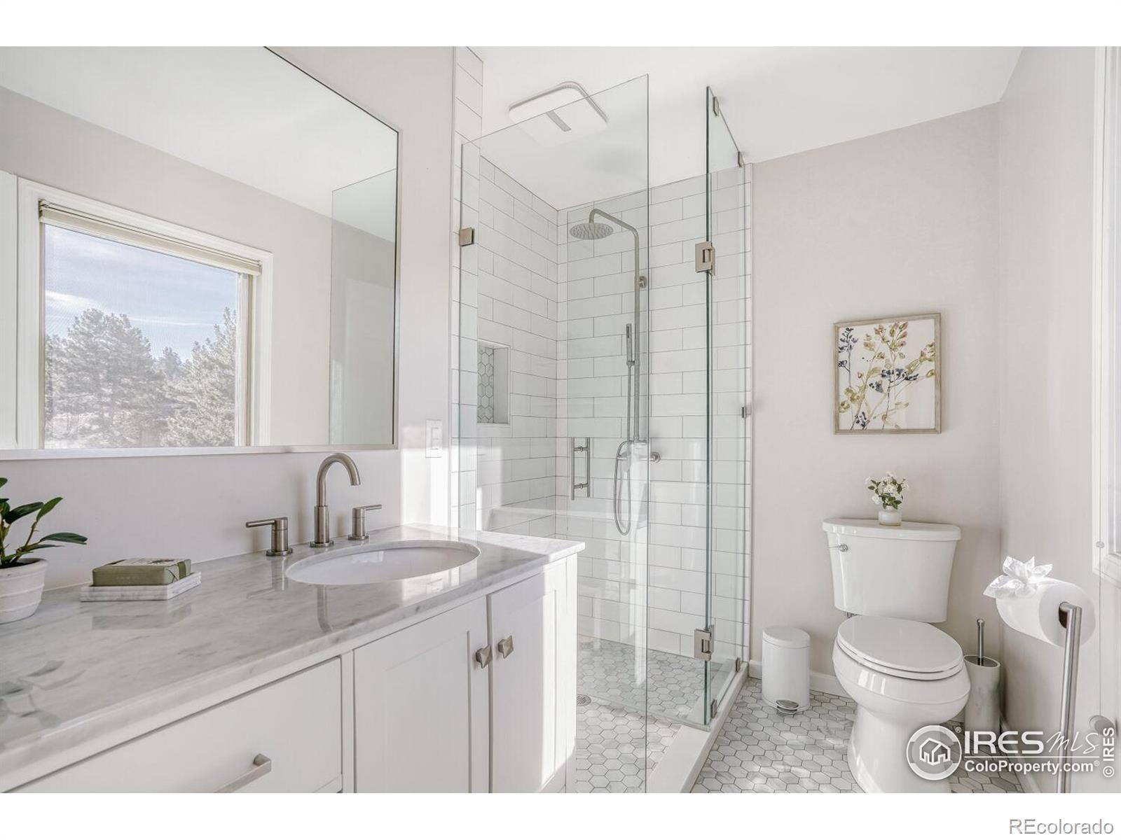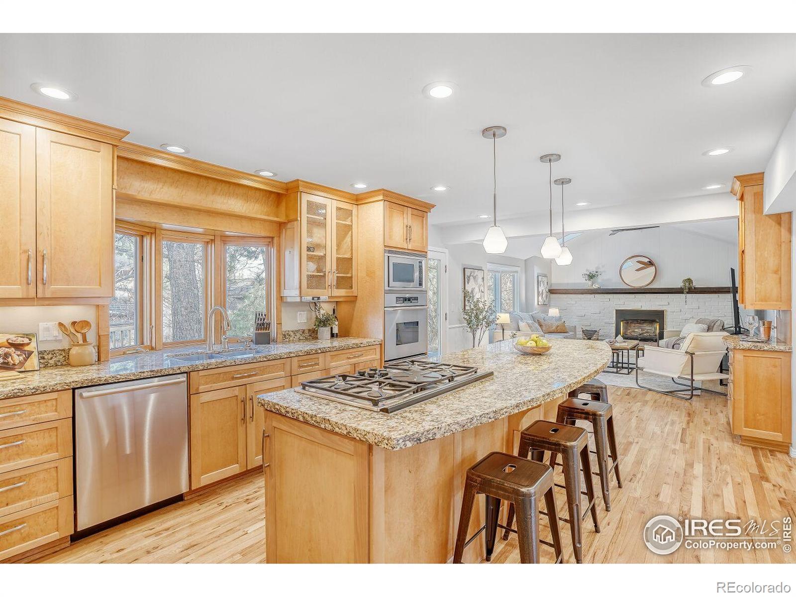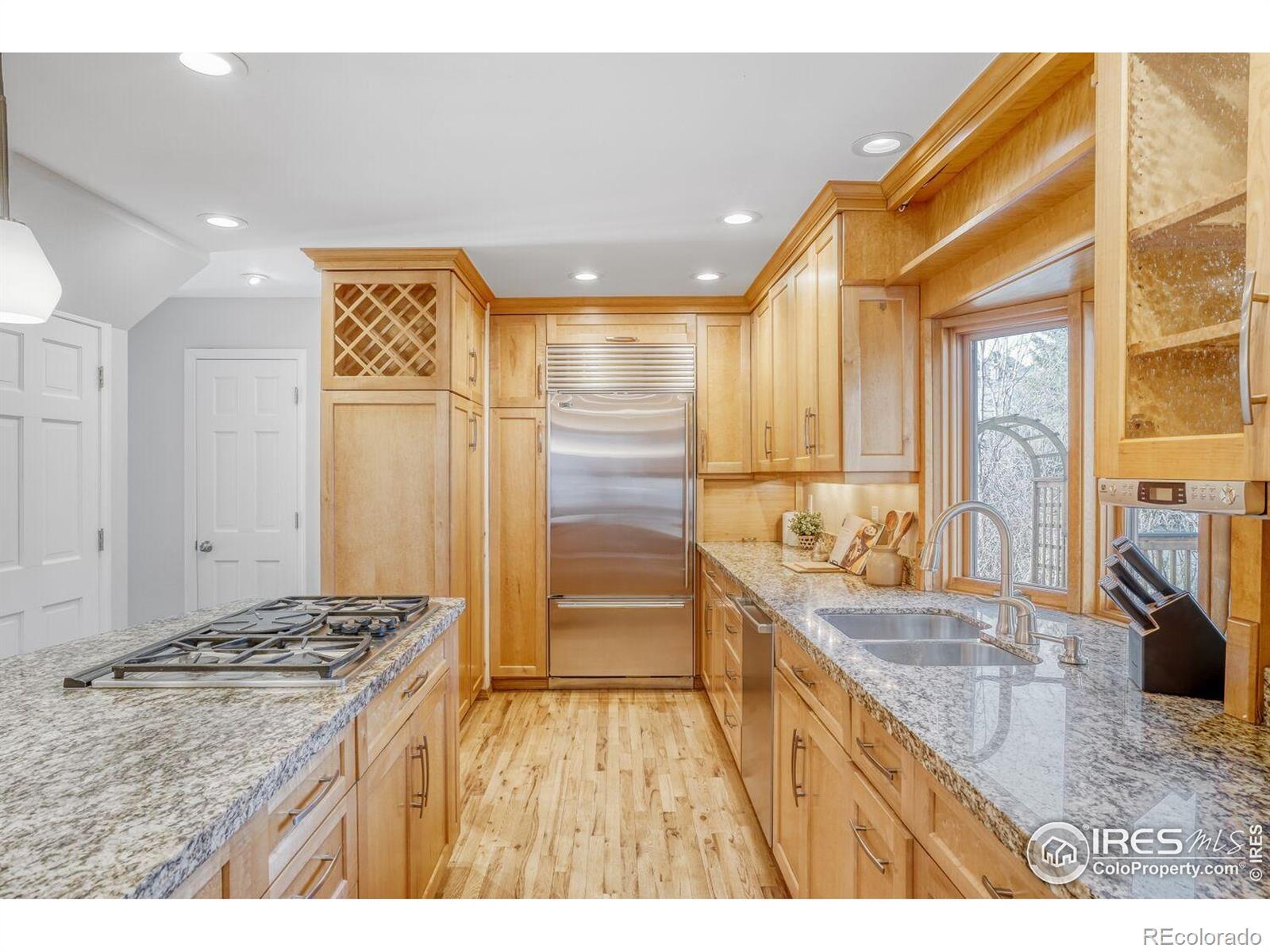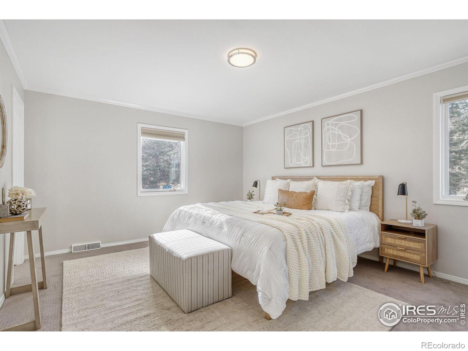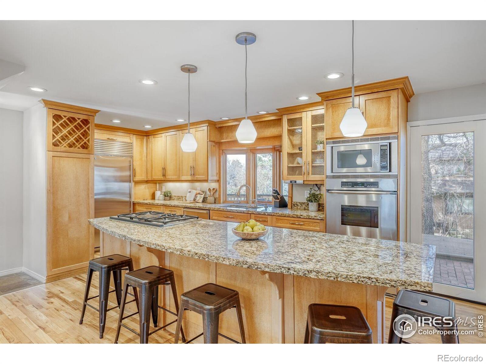 Amazing location in Devil's Thumb. This thoughtfully updated 5 bed/4 bath home is nestled in one of Boulder's most sought-after neighborhoods and features a 10 kW owned solar system that nearly pays the entire electric bill. Refinished hardwood floors, vaulted ceilings, and an updated kitchen with quality finishes set the stage for inviting living spaces. The main level features a formal living room, eat-in dining area, and cozy family room with two newly added skylights that fill the space with natural light. Fresh interior and exterior paint, custom built-ins, and stylish lighting add warmth and character. There are four bedrooms on the upper level and it features a remodeled primary bathroom offering a spa-like retreat. The finished basement has a bedroom, a bathroom, and rec room - which makes the flexible floor plan perfect for hosting guests, working from home, or creating a space to play. The secluded backyard oasis has a flagstone patio and spacious deck, all surrounded by lush landscaping and stunning mountain views. Located just steps from miles of scenic trails, top-rated schools, and an exclusive HOA with a private pool and tennis courts, this exceptional home offers the perfect blend of nature, comfort, and community. All measurements to be verified by buyer.