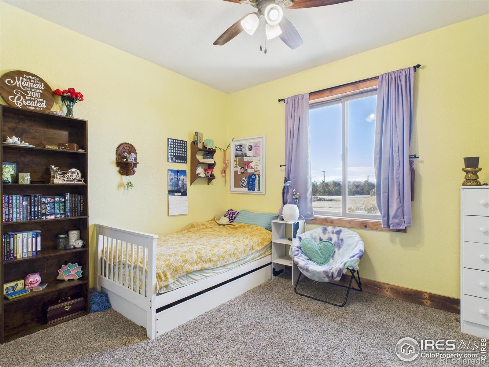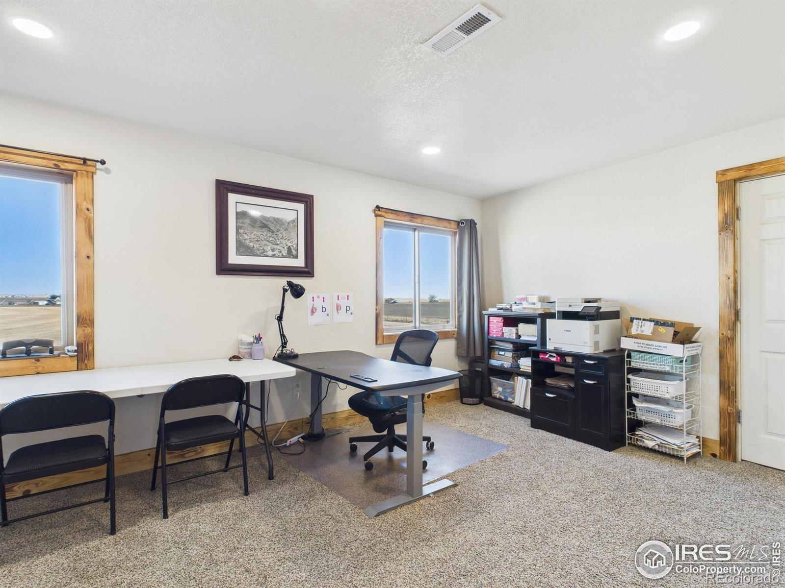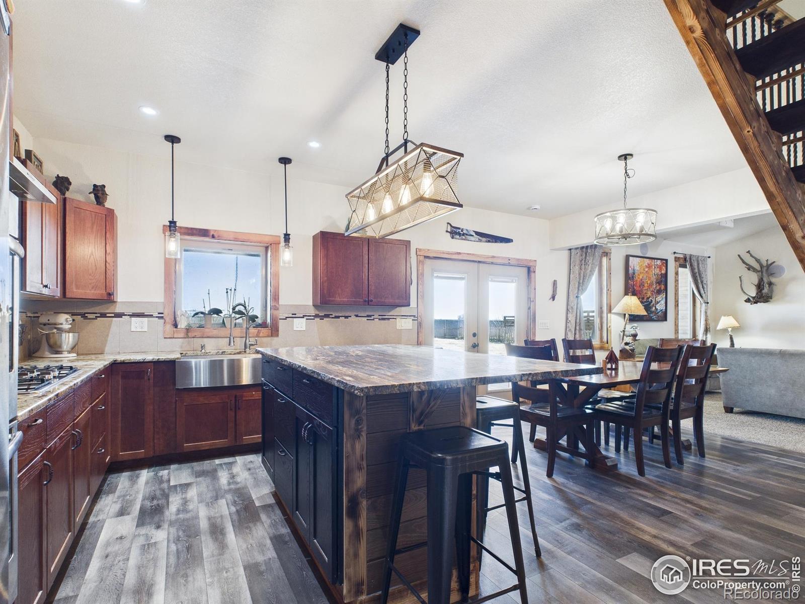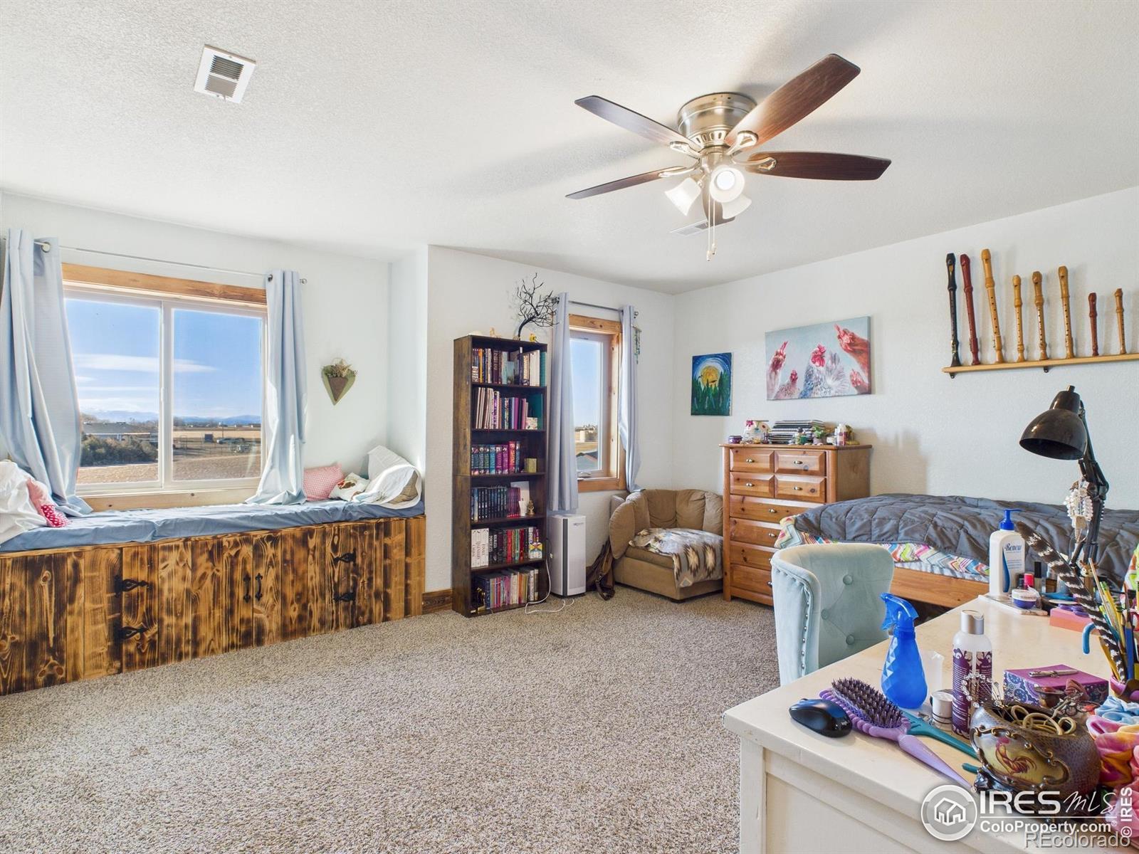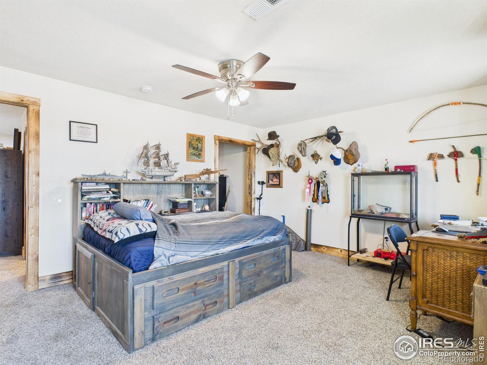 With warm cabin character and mountain-style comfort, this 5 bedroom, 3 bathroom home sits on 3.88 acres in the Eaton School District and offers 3,670 sq ft. The main level has radiant in-floor heating, and the primary suite has been updated with a new bathroom and an upgraded closet. Multiple living areas provide space for daily life, guests, and work-from-home needs, and a secondary entrance adds flexibility for a private guest setup, home office access, or added separation between spaces. A long list of improvements adds value throughout-be sure to review the updates sheet for details. A 30'x40' attached garage gives you room for vehicles, storage, and a true workshop for cars or hobbies. Outside, you'll find garden spaces throughout, several fruit trees, two chicken coops, and a heated shed for extra storage or year-round projects. Solar panels are owned. Enjoy wide open views, along with sunrise and sunset skies that are hard to beat. Schedule your showing to experience this retreat in person.