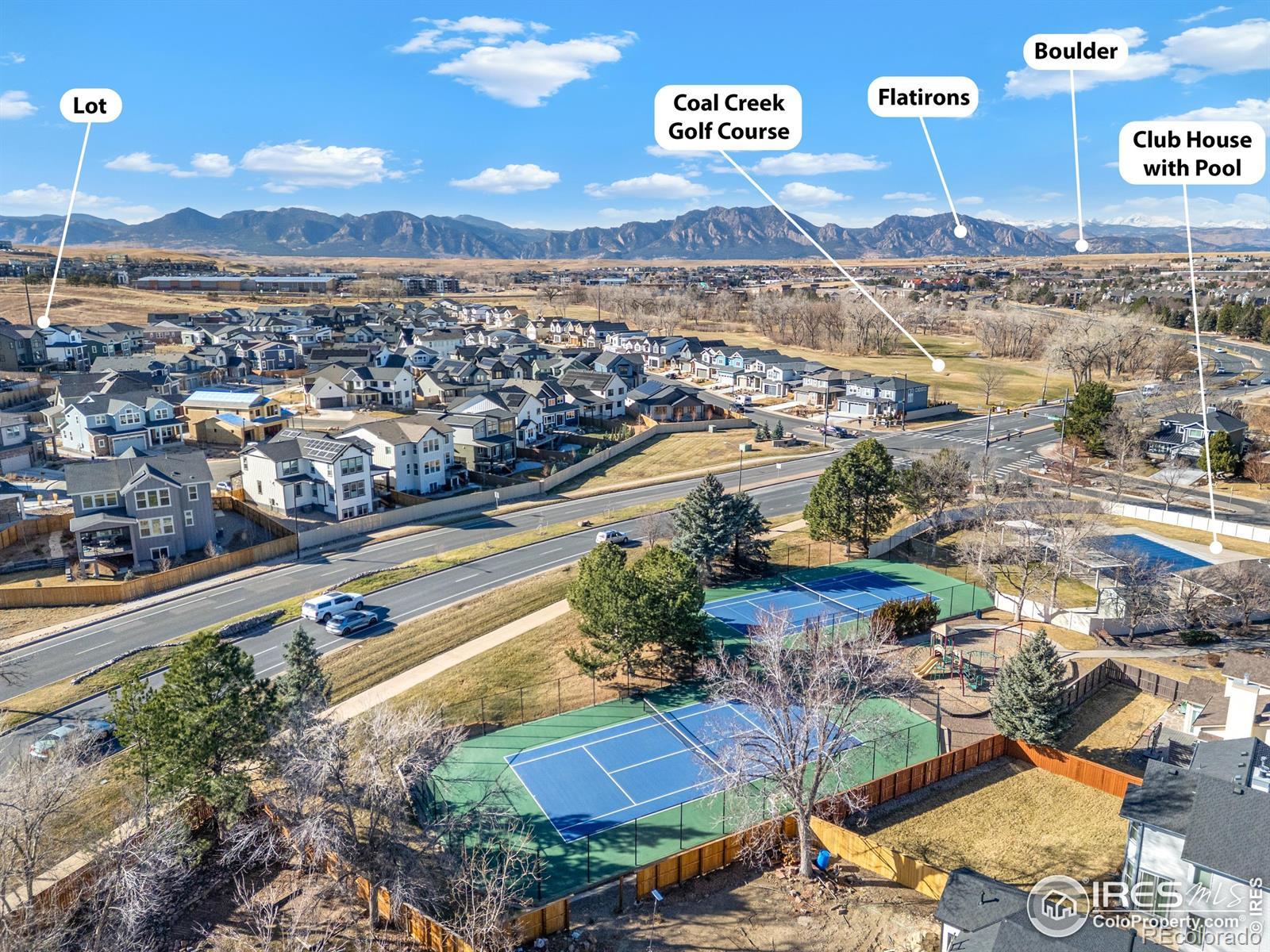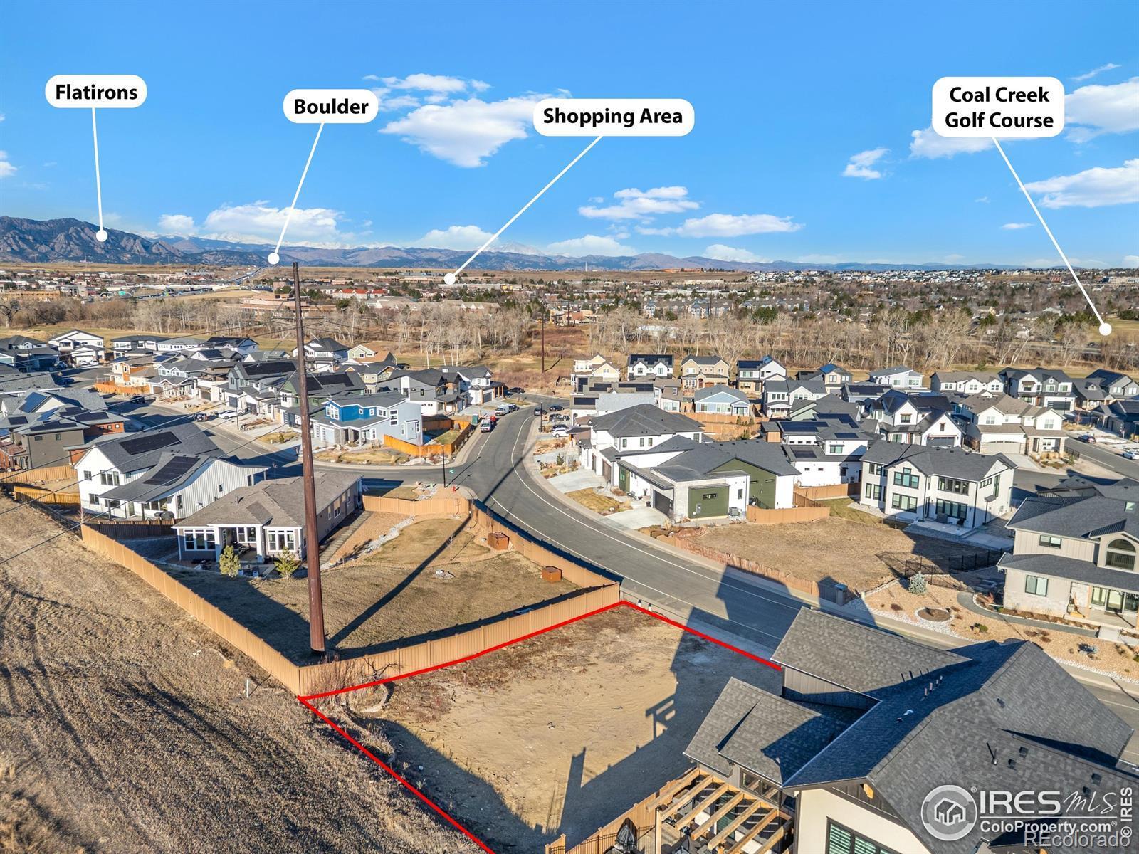 This 6,187 sq ft lot backs to Hospital open space close to top of hill with an awesome view! Lot has been fire mitigated by Boulder County and is ready to be built on. Previous home was 3,473 total sq ft with a 3 car garage. 30' easement from power lines dictate home style and size. Great Neighborhood with club house and pool. Drive by and see for yourself!!