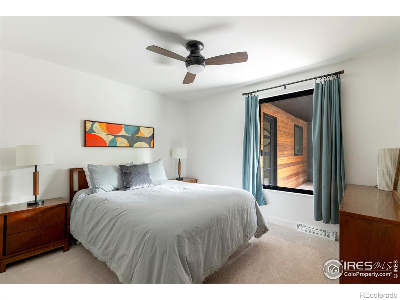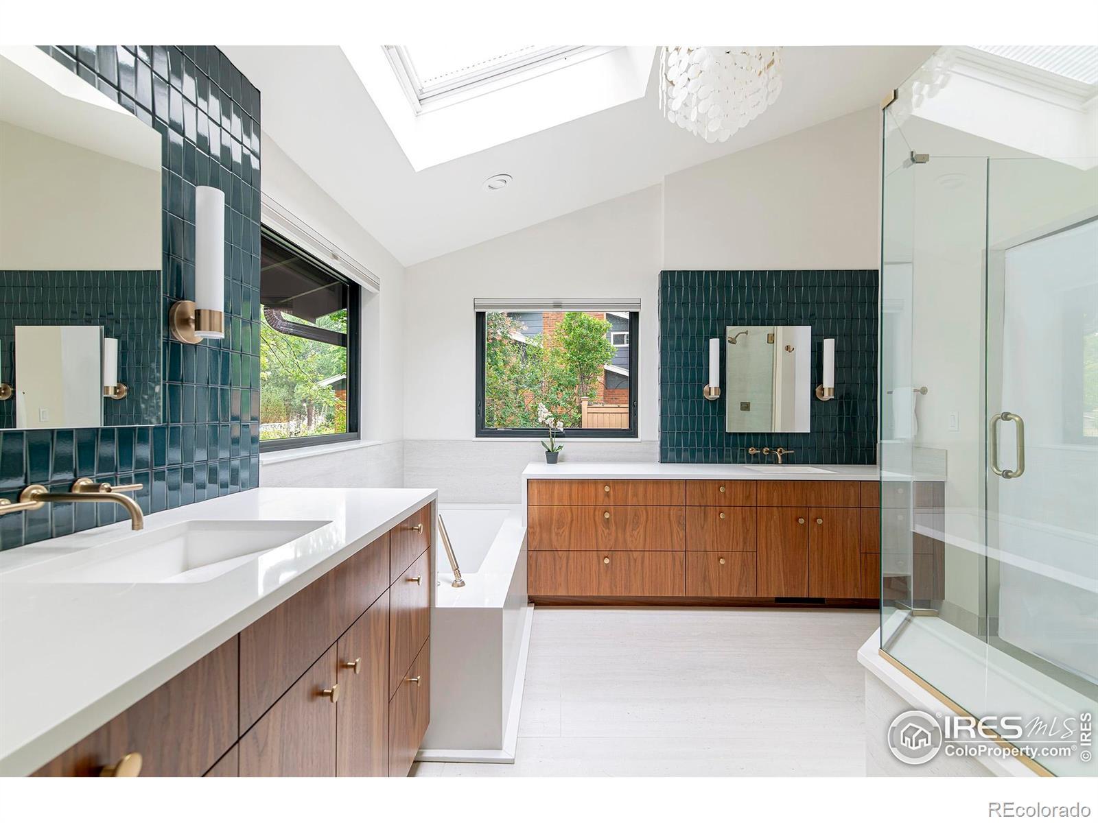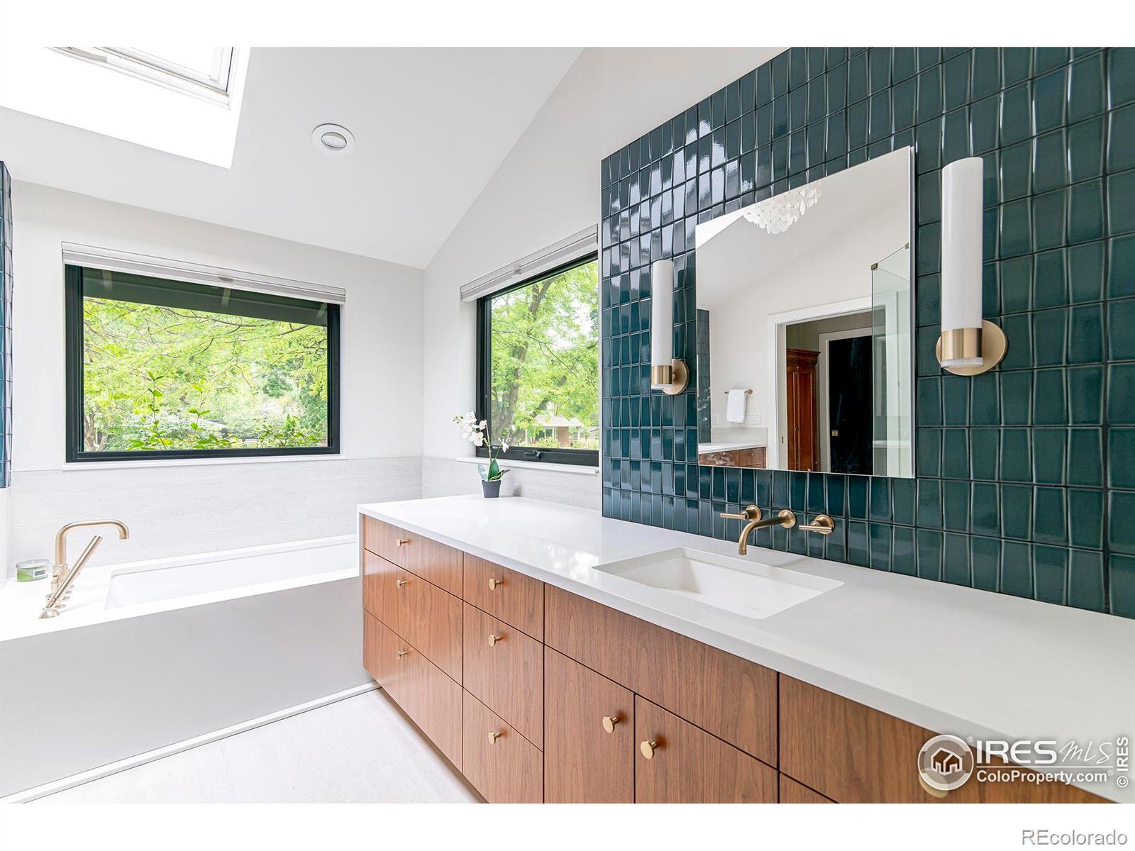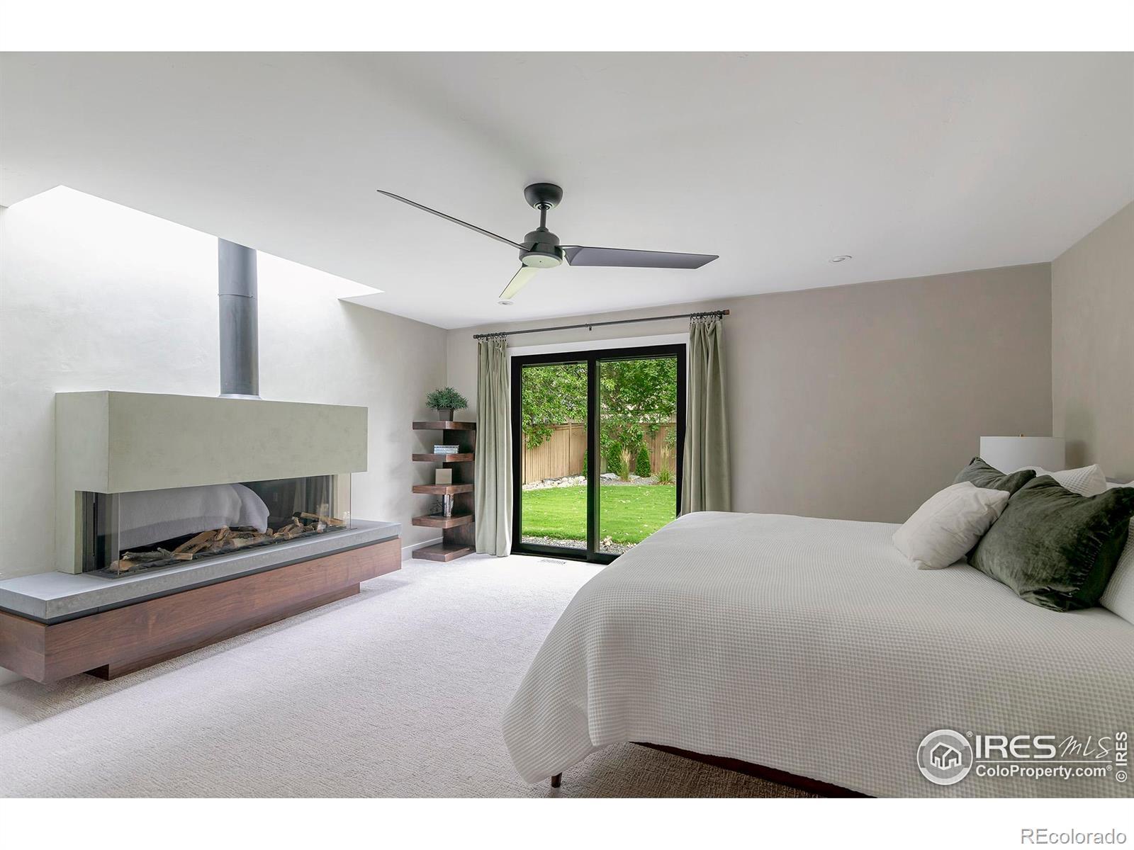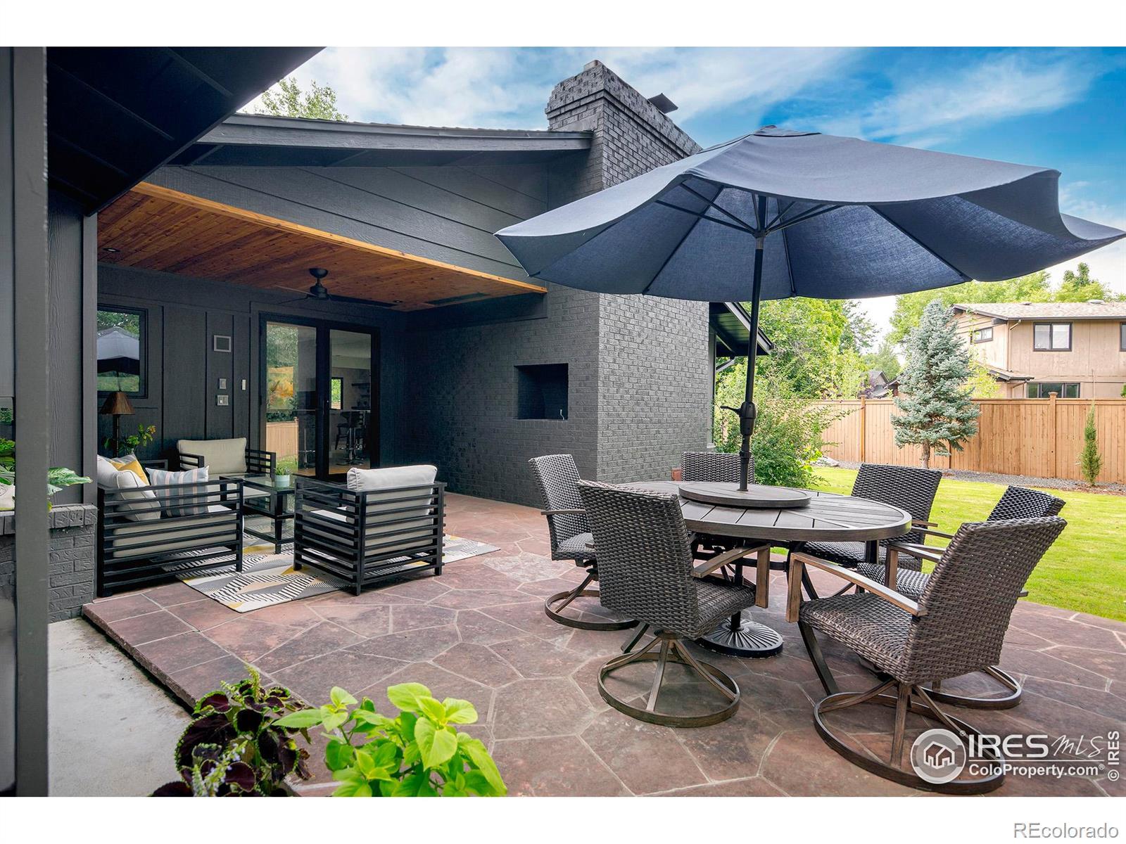 Warm, architectural, and effortlessly livable, this extensively renovated ranch offers a sophisticated reimagining of mid-century modern design in Boulder Country Club. Set on a quiet cul-de-sac, the home features stained brick, cedar accents, translucent glass garage doors, and mature landscaping-an understated introduction to the quality found within.Inside, vaulted ceilings and skylights bring in abundant natural light through expansive new Marvin windows, while handcrafted clay walls and wide-plank white oak flooring add warmth and texture. The living room is anchored by a custom gas fireplace, walnut beam, and elegant bar area.The kitchen is thoughtfully designed for both casual gathering and serious cooking, featuring a generous center island, rich walnut cabinetry, natural quartzite and quartz countertops, Thermador appliances, and imported tile accents. Adjacent living and dining areas offer open sight lines and natural flow. A light-filled family room features oversized picture windows, wood-paneled ceilings, and a sleek fireplace.The main-level primary suite is a private retreat with vaulted ceilings, a custom fireplace, spa-inspired bath with soaking tub, dual vanities, oversized shower, and an expansive walk-in closet. Three additional bedrooms provide flexibility for guests, home office, or creative use. The finished lower level includes sound-dampening ceilings, walnut acoustic panels, and a full bath-ideal for media, studio, or guest space.Outdoor living includes multiple patios and a landscaped, fenced backyard offering privacy and usability. A three-car garage with EV wiring and ample storage adds everyday practicality. Located in Boulder Country Club with championship golf, tennis, swimming, and social amenities just steps away, this residence exemplifies today's Boulder luxury. Extensive renovations include a new roof, Marvin windows, electrical, HVAC, appliances, custom kitchen & baths, interior doors and baseboards, landscaping, and hardscaping.