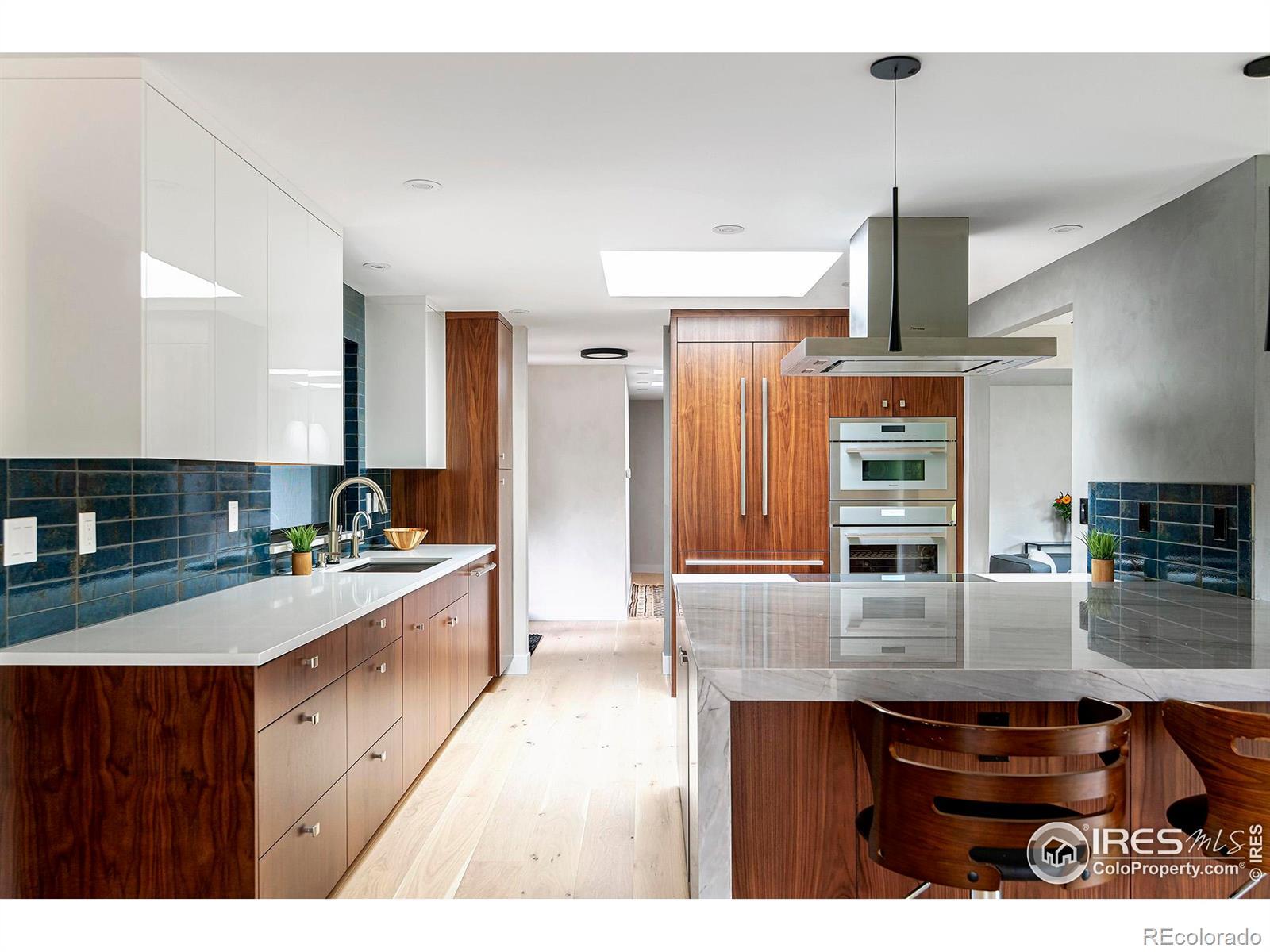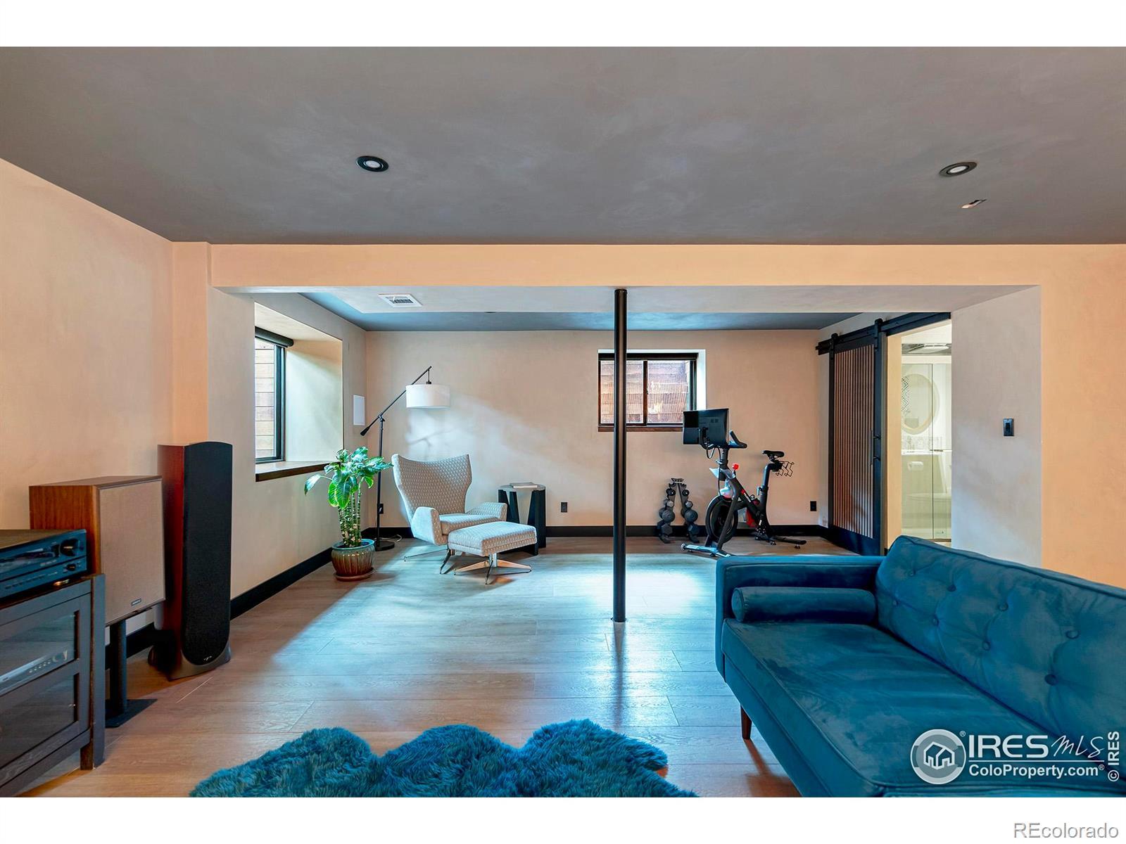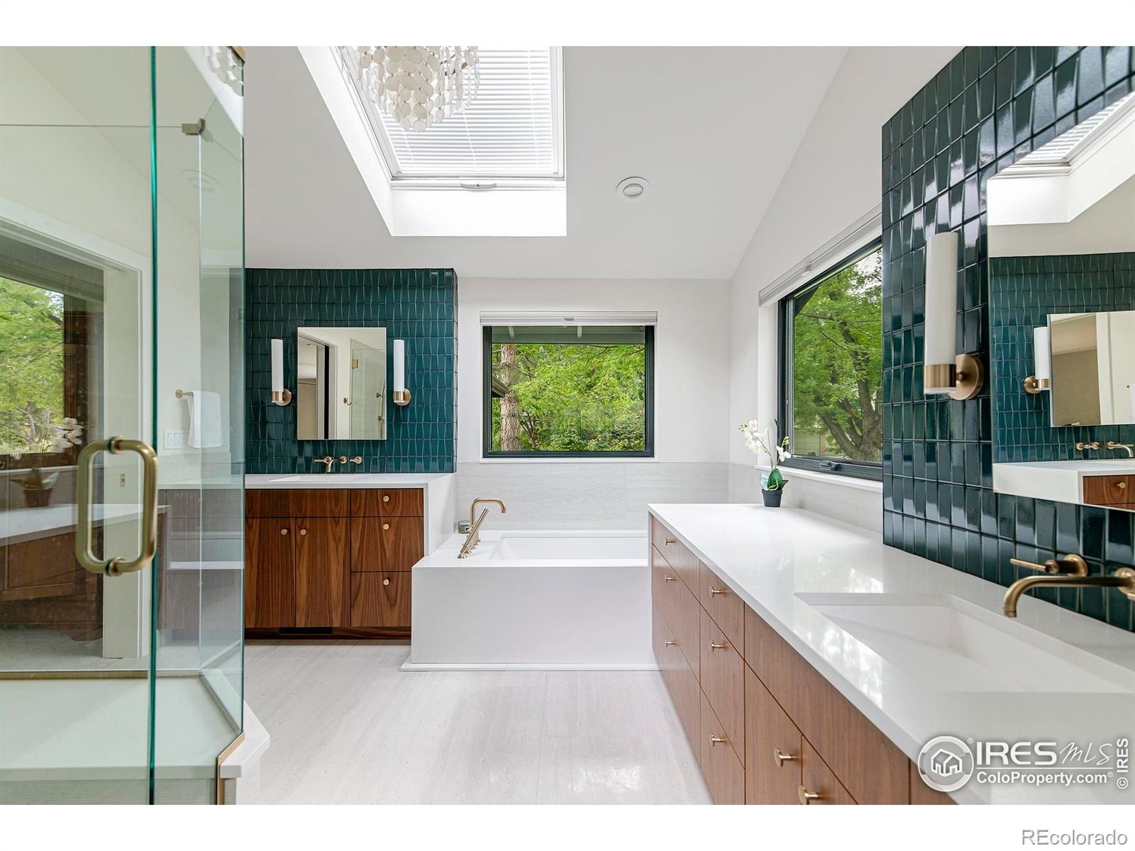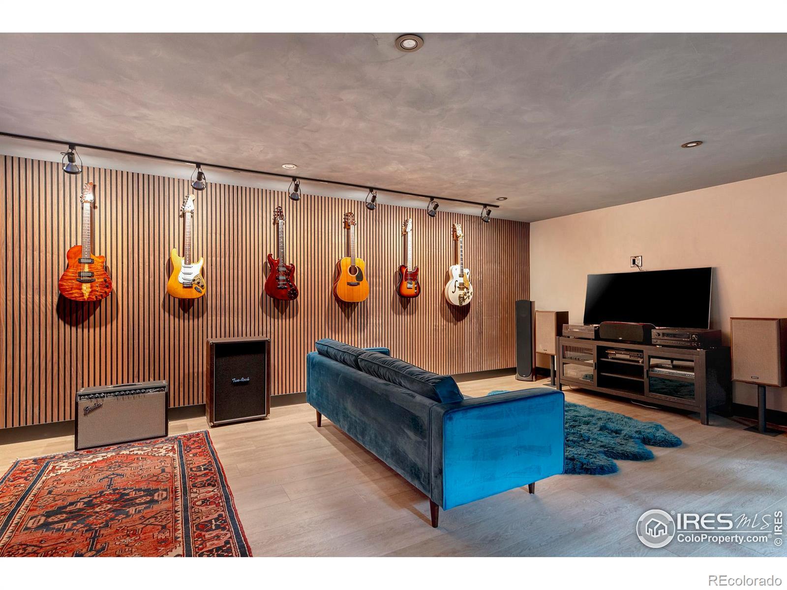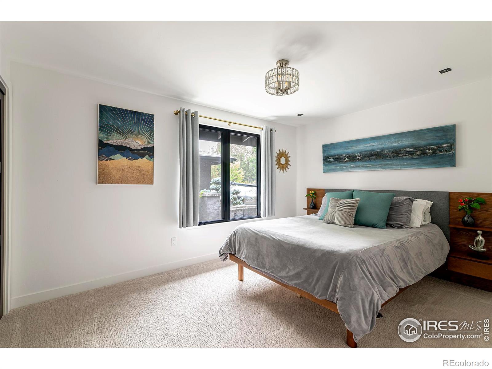 Warm, architectural, and effortlessly livable, this extensively renovated ranch offers a sophisticated reimagining of mid-century modern design in Boulder Country Club. Set on a quiet cul-de-sac, the home features stained brick, cedar accents, translucent glass garage doors, and mature landscaping-an understated introduction to the quality found within.Inside, vaulted ceilings and skylights bring in abundant natural light through expansive new Marvin windows, while handcrafted clay walls and wide-plank white oak flooring add warmth and texture. The living room is anchored by a custom gas fireplace, walnut beam, and elegant bar area.The kitchen is thoughtfully designed for both casual gathering and serious cooking, featuring a generous center island, rich walnut cabinetry, natural quartzite and quartz countertops, Thermador appliances, and imported tile accents. Adjacent living and dining areas offer open sight lines and natural flow. A light-filled family room features oversized picture windows, wood-paneled ceilings, and a sleek fireplace.The main-level primary suite is a private retreat with vaulted ceilings, a custom fireplace, spa-inspired bath with soaking tub, dual vanities, oversized shower, and an expansive walk-in closet. Three additional bedrooms provide flexibility for guests, home office, or creative use. The finished lower level includes sound-dampening ceilings, walnut acoustic panels, and a full bath-ideal for media, studio, or guest space.Outdoor living includes multiple patios and a landscaped, fenced backyard offering privacy and usability. A three-car garage with EV wiring and ample storage adds everyday practicality. Located in Boulder Country Club with championship golf, tennis, swimming, and social amenities just steps away, this residence exemplifies today's Boulder luxury. Extensive renovations include a new roof, Marvin windows, electrical, HVAC, appliances, custom kitchen & baths, interior doors and baseboards, landscaping, and hardscaping.