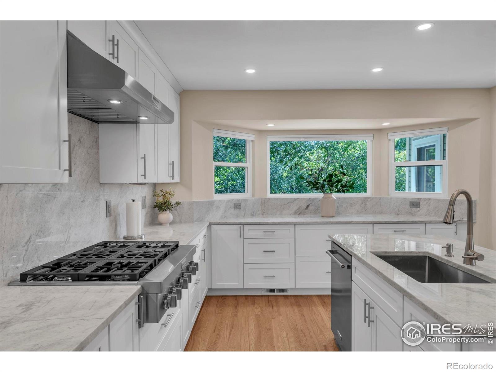 Set in Louisville's Cherrywood neighborhood, this ranch-style home with a finished walk-out basement is move-in ready, thanks to thoughtful updates throughout. At the heart of the home, the remodeled kitchen features quartzite countertops, crisp white cabinetry, and stainless steel KitchenAid appliances. Just off the main living space, a dedicated office with French doors provides a place to work. The primary suite opens directly to the back deck, overlooking the flagstone lower patio, while main-level living is enhanced with a convenient laundry room located off the two-car garage. Fresh interior paint, solid hardwood flooring accented by taller baseboards, and new Levolor window coverings add a polished touch throughout. The expansive walk-out basement extends the home's versatility, whether you're hosting at the wet bar, unwinding in the spacious rec room, setting up a home gym, or offering guests their own private bedroom and bath. A generous storage room helps keep everything organized and direct outdoor access makes this level perfect for gatherings that flow inside and out. The backyard is home to cherry, pear, and apple trees, while just north on Cherrywood Lane you'll find access to Louisville's Arboretum and trail system, leading to the beloved Louisville Recreation & Senior Center and beyond, all part of the charm that makes Louisville so special.
