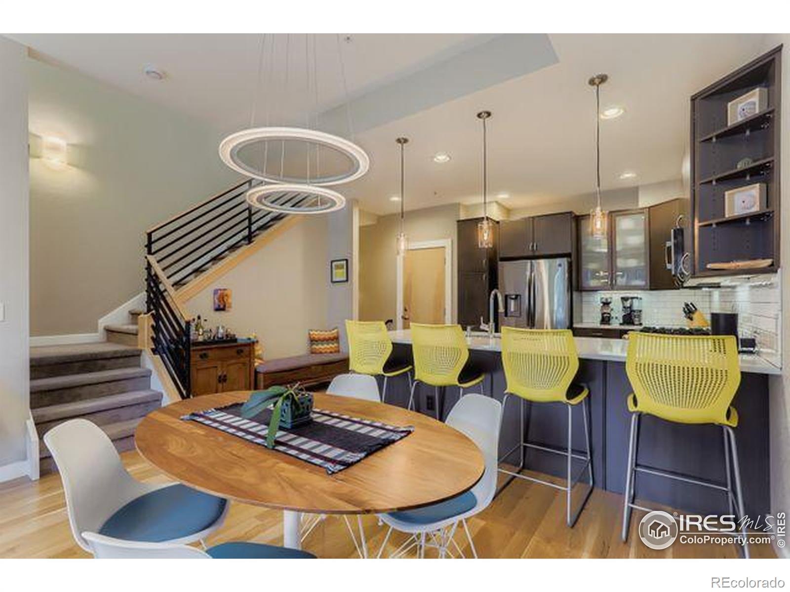 This beautiful townhome is ideally set on the western edge of Dakota Ridge. With stunning views of the foothills, and trails/open space at your fingertips, this home offers a perfect blend of mountain access and modern comfort. Step inside to an open, light filled floor plan featuring expansive west facing windows and high ceilings. The gourmet kitchen boasts Ceasarstone countertops, stainless steel appliances, a new dishwasher and refrigerator (2024), and a new Hans Grohe kitchen faucet (2023). The living and dining areas showcase new light fixtures; updated Nest thermostat and Nest doorbell camera offer modern convenience and piece of mind. Upstairs there are three light filled bedrooms, including a beautiful primary suite with an en suite bath and a spacious walk in closet. The finished basement includes a new Murphy bed with drawers, offering flexible space for guests. Enjoy breathtaking sunsets from the west-facing patio, the perfect spot to unwind after a day on the trails. Additional updates include new smoke detectors throughout the home. Experience the best of Boulder living in this bright, contemporary home just steps from nature, yet close to shops, dining, and all the amenities of North Boulder.