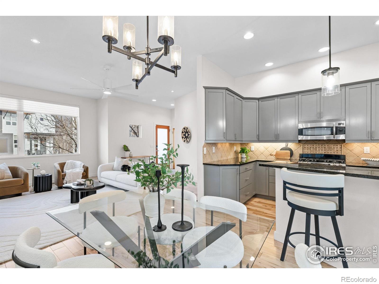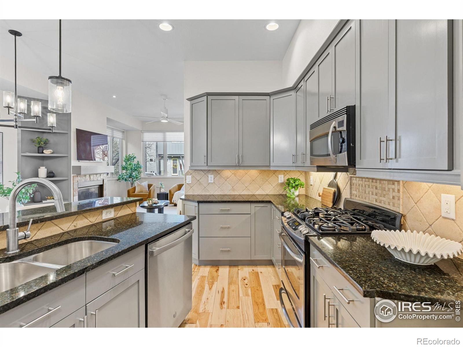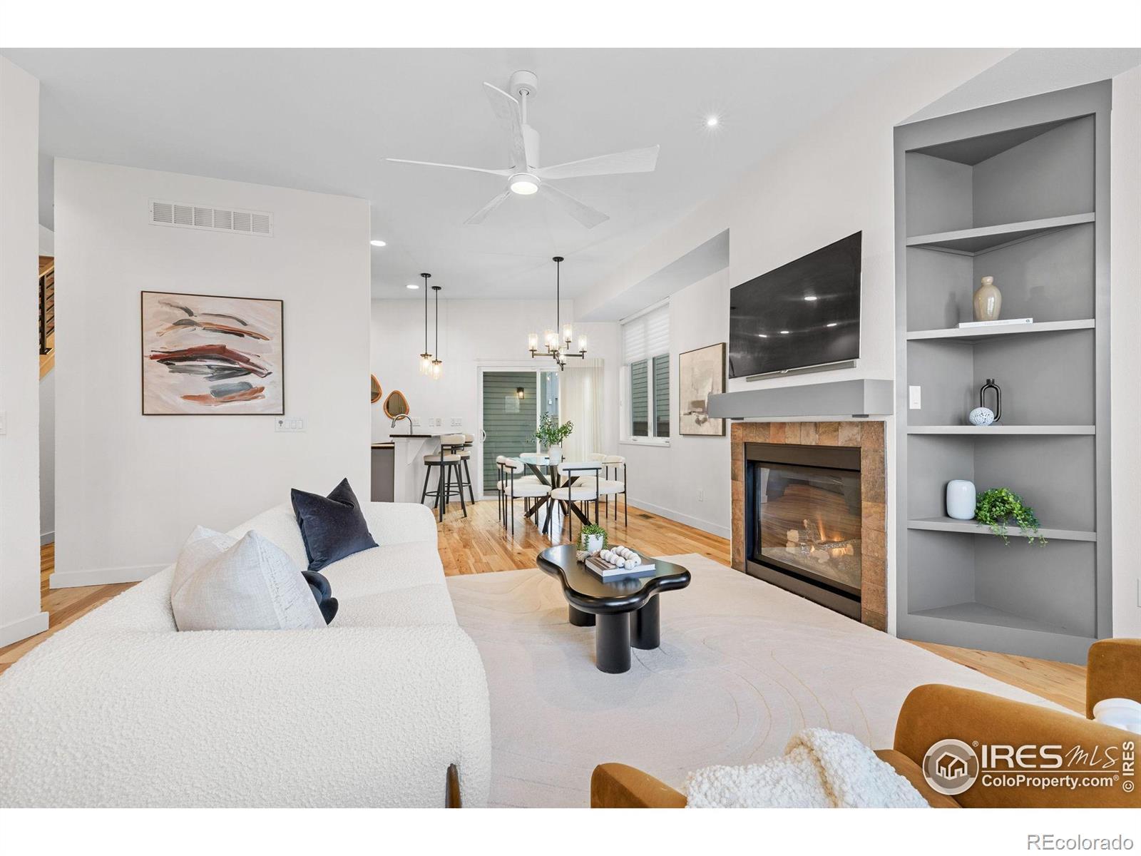 Situated just a block from protected open space, this thoughtfully updated Dakota Ridge single-family residence offers a seamless blend of modern luxury and access to world-class nature and hiking trails. The home immediately impresses with its modern facade, lush landscaping, and a picture-perfect front porch, ideal for morning coffee. Inside, the main level welcomes you with brand-new hickory hardwood flooring and freshly painted cabinetry and built-ins that provide a crisp, contemporary feel. The heart of the home is the refreshed, expanded kitchen, which flows into a cozy living area warmed by one of three gas fireplaces. Practicality meets style with the newly added mudroom bench and cubbies, while tech-forward updates like all-new LED lighting, a Nest thermostat, and owned solar panels provide modern convenience and efficiency. The spacious primary suite serves as a private sanctuary, with built-in bench seating and a balcony to soak in the unobstructed views of the Foothills. Enjoy the best of Boulder with seamless indoor/outdoor living, designed for every season from the rear patio elevated with newly textured concrete, a built-in gas grill, and heaters, creating a private oasis for evening gatherings. The home's proximity to Dakota Ridge Park/Playground, Wonderland Lake, Lucky's Market, and miles of cycling trails ensures you are perfectly positioned to enjoy the quintessential Colorado lifestyle.