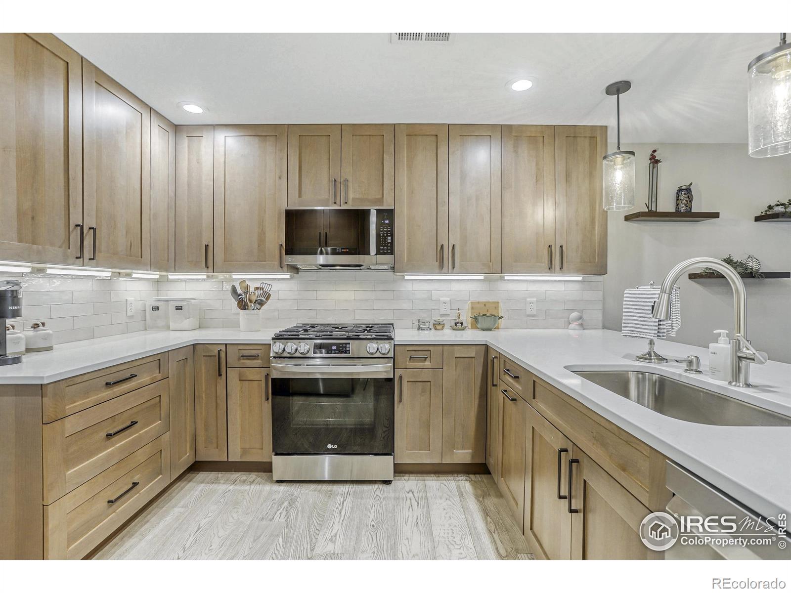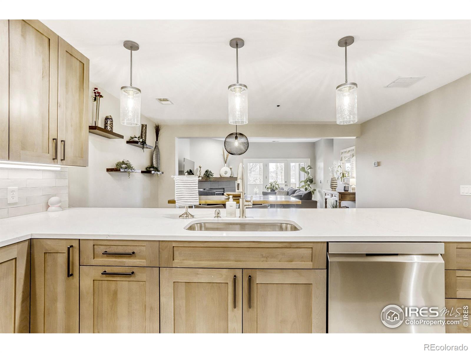 Escape to unparalleled serenity with your morning coffee. Imagine sitting on your balcony, watching the sun rise on the majestic Flatirons, where the only sound is the peaceful call of geese landing in a nearby pond-a world away from road noise. The heart of this home is a gourmet kitchen that has been meticulously rebuilt, not just renovated. This open, functional, and elegant space features all-new, stainless appliances, custom cabinetry, and stunning quartz countertops. The open floor plan effortlessly connects the kitchen, dining, and living rooms, where a cozy gas fireplace provides both warmth and ambiance. The generously sized primary suite offers more breathtaking Flatiron views. Its en-suite bathroom has also been completely rebuilt, boasting a modern, oversized shower, double vanities, and a walk-in closet. This 1,226-square-foot, single-level home features extensive mechanical updates for true peace of mind: a new furnace, new central air conditioning, and a new water heater. New light fixtures throughout, including recessed LED lighting, newer windows, and an included new washer and dryer complete the updates. Enjoy a garden-like community setting with a pool, pickleball, and tennis court. Convenience is paramount with two reserved underground parking spaces, a dedicated storage closet, and building elevator access from the garage to all floors. The location is unbeatable-walk to RTD bus lines, shopping, and popular restaurants. Priced to sell and move-in ready. Just look around-you will agree this is a remarkable opportunity.