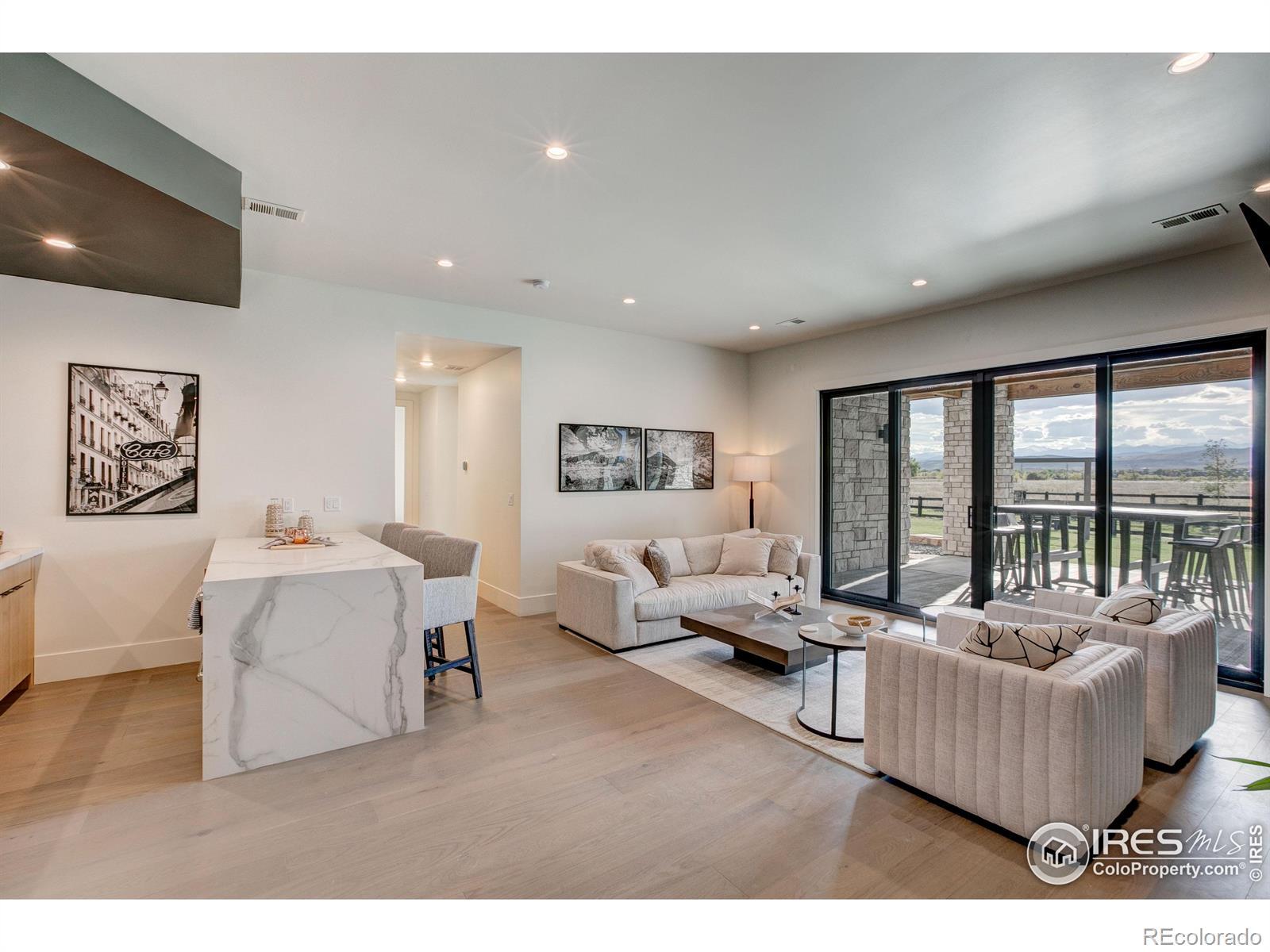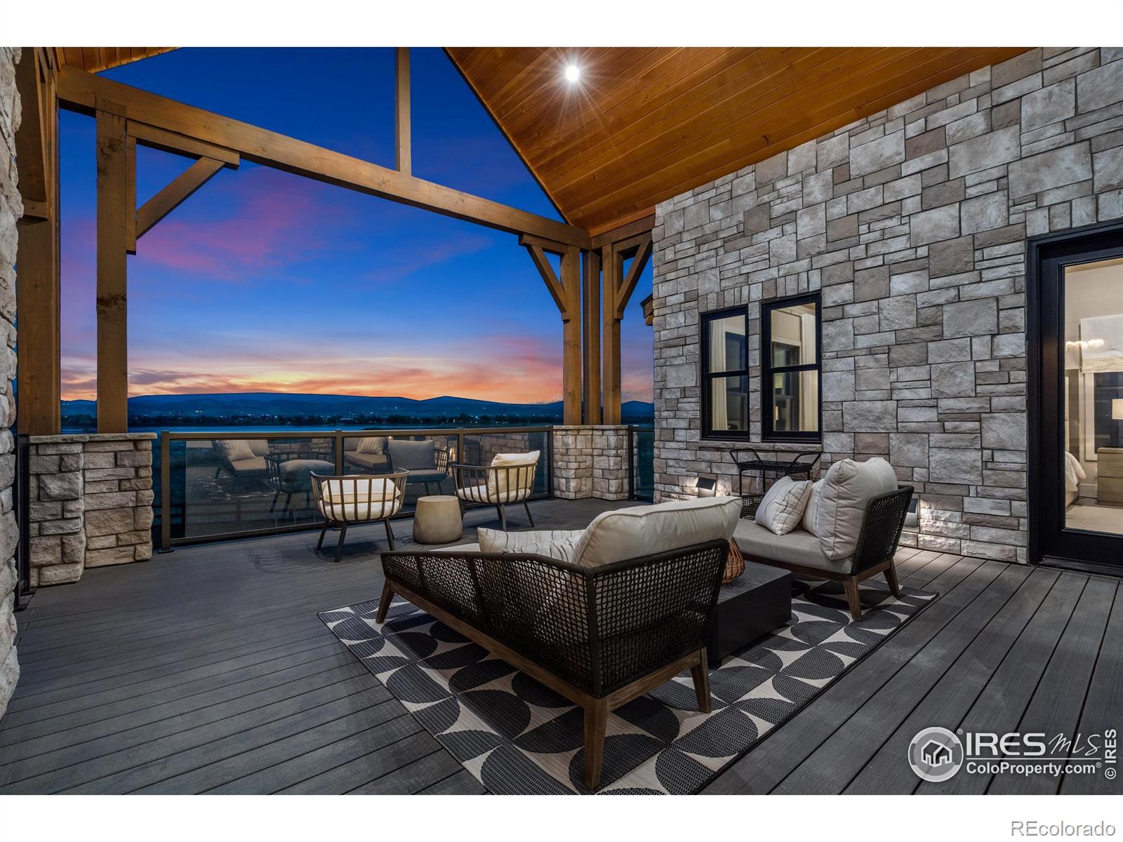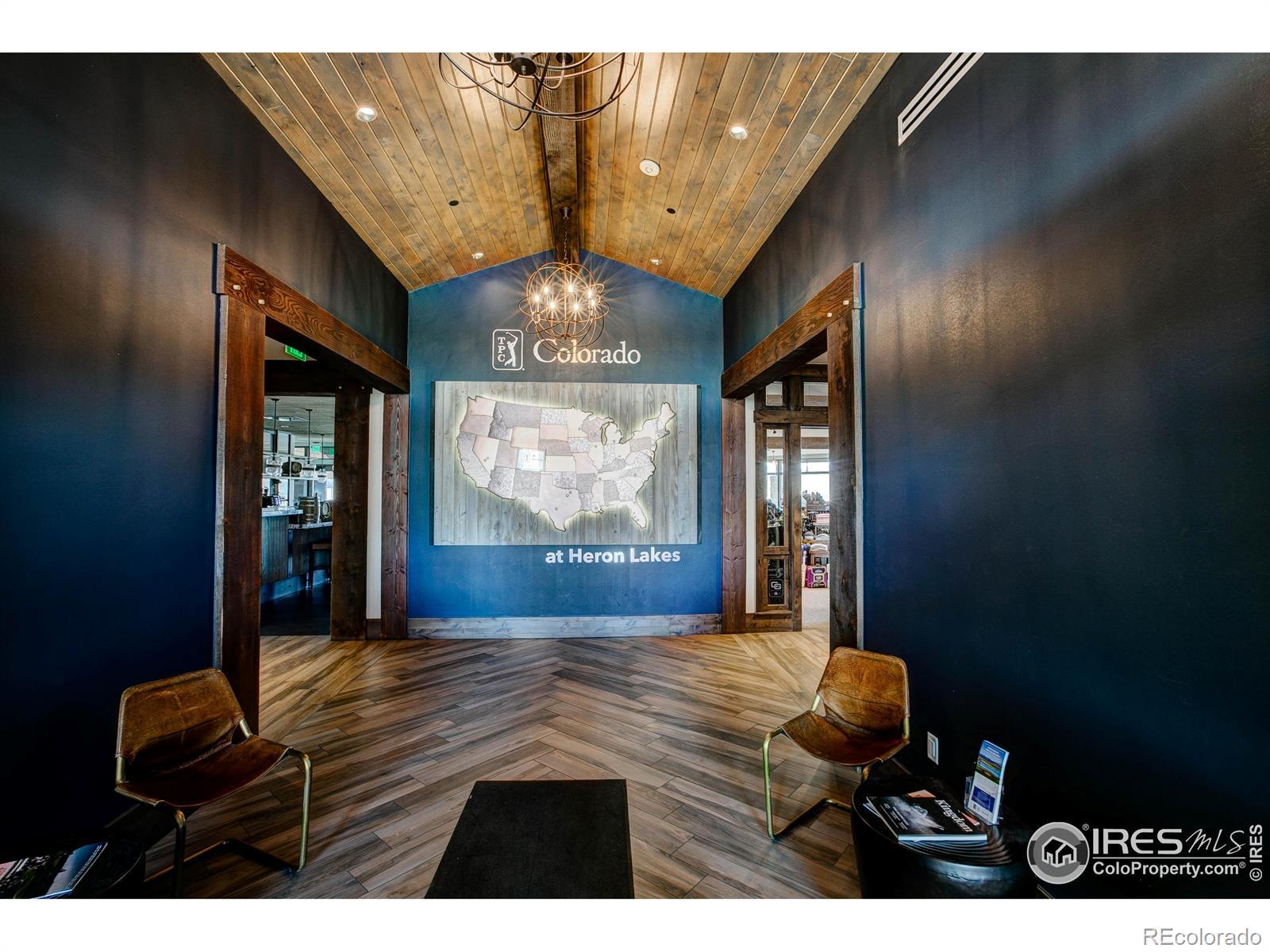 Single-story, walk-out ranch in Heron Lakes with panoramic Rocky Mountain, golf course, and Lone Tree Reservoir views. Built in 2022, this 6,062 sq ft residence sits on a 0.47-acre lot backing to TPC Colorado fairways with direct access to community trails and open space. Designed with vaulted ceilings and an open-concept layout, the main level features a west-facing great room capturing sunset views, a chef's kitchen with double waterfall islands, walk-in pantry, and adjacent dining area oriented toward the mountains.Primary suite on the main level with expansive views, spa-style bath, and walk-in closet. Dedicated home office with natural light and private deck access. Walk-out lower level includes recreation space, wet bar with beverage cooler, fitness area, and dedicated spa wing with sauna, soaking tub, and massage room. Four bedrooms, eight baths, multiple living areas, and a 3-car attached garage with epoxy flooring.Covered deck with built-in grill and outdoor dining space overlooking the golf course and reservoir. Located within the gated Heron Lakes community offering clubhouse, fitness center, pool, hot tub, and trail system. Approximate distances: 0.2 mi to Lone Tree Reservoir, 0.5 mi to TPC Colorado clubhouse, 2.5 mi to Downtown Berthoud shops and restaurants, 4.5 mi to Carter Lake recreation area, and convenient access to Hwy 287 for travel to Loveland and Fort Collins. Includes 3D walkthrough and video tour.