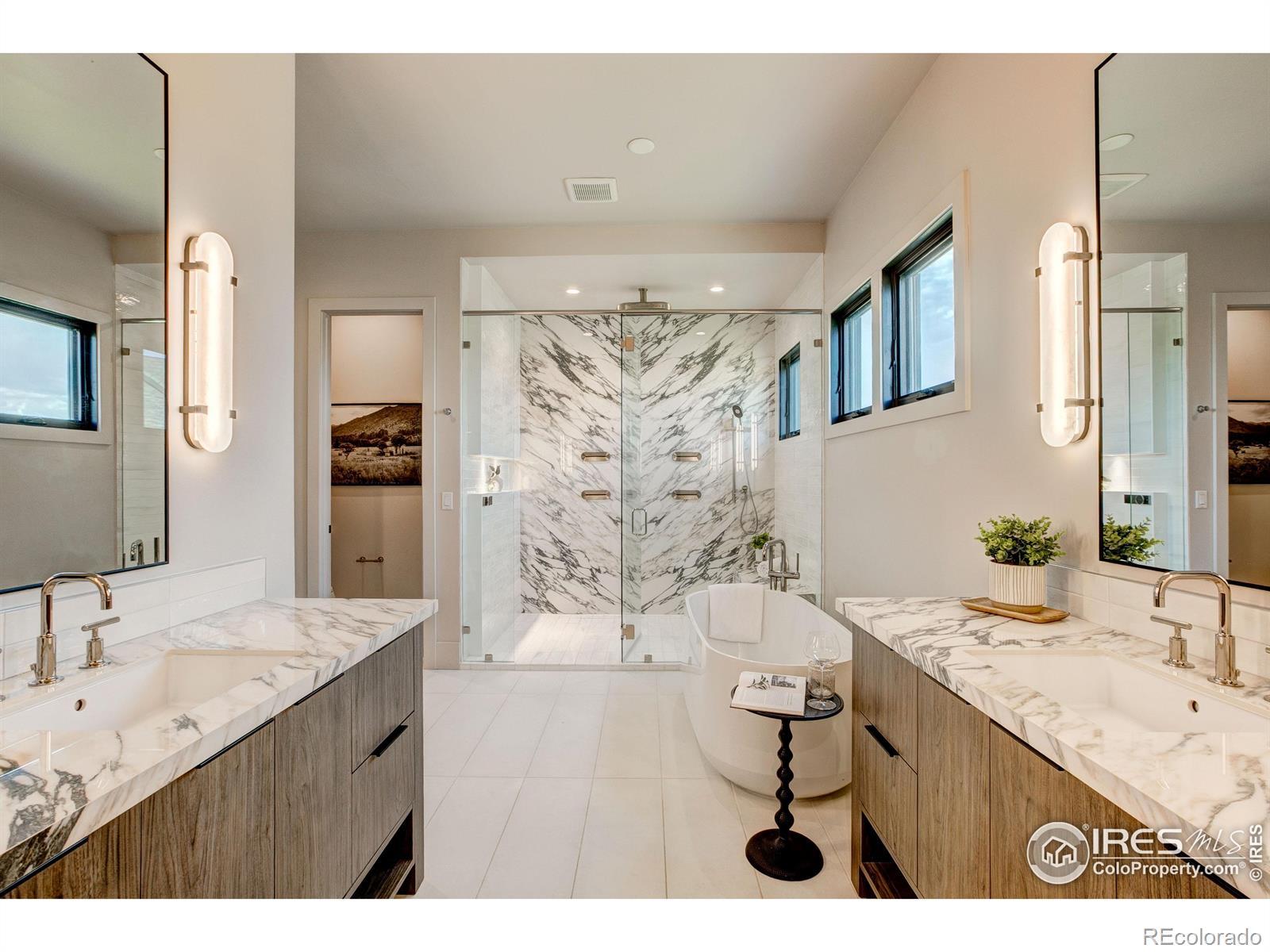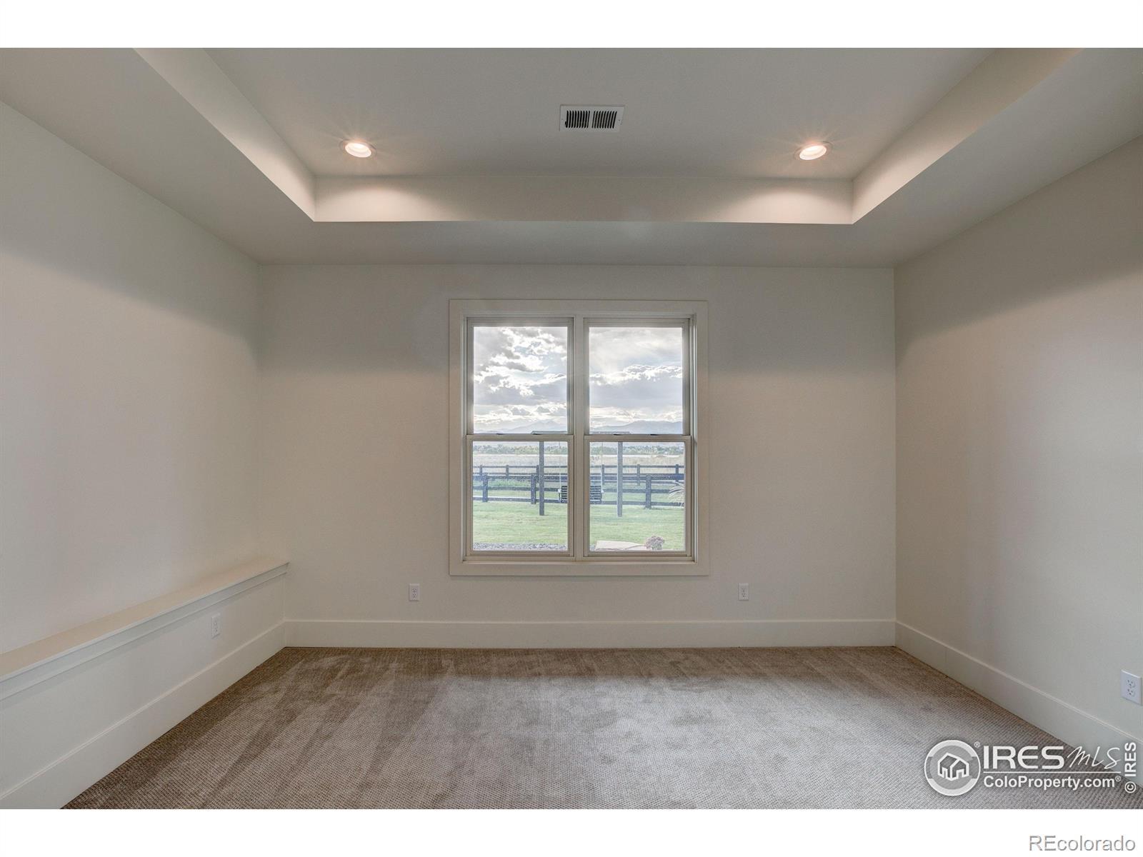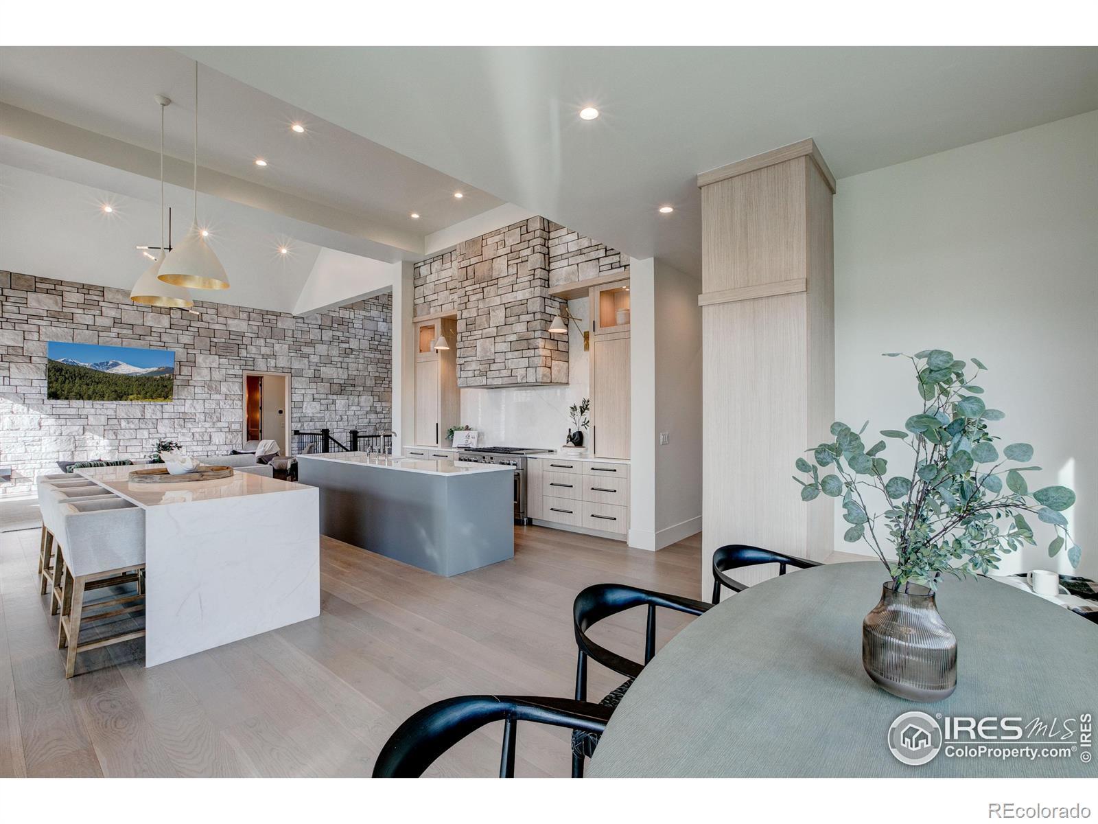 Single-story, walk-out ranch in Heron Lakes with panoramic Rocky Mountain, golf course, and Lone Tree Reservoir views. Built in 2022, this 6,062 sq ft residence sits on a 0.47-acre lot backing to TPC Colorado fairways with direct access to community trails and open space. Designed with vaulted ceilings and an open-concept layout, the main level features a west-facing great room capturing sunset views, a chef's kitchen with double waterfall islands, walk-in pantry, and adjacent dining area oriented toward the mountains.Primary suite on the main level with expansive views, spa-style bath, and walk-in closet. Dedicated home office with natural light and private deck access. Walk-out lower level includes recreation space, wet bar with beverage cooler, fitness area, and dedicated spa wing with sauna, soaking tub, and massage room. Four bedrooms, eight baths, multiple living areas, and a 3-car attached garage with epoxy flooring.Covered deck with built-in grill and outdoor dining space overlooking the golf course and reservoir. Located within the gated Heron Lakes community offering clubhouse, fitness center, pool, hot tub, and trail system. Approximate distances: 0.2 mi to Lone Tree Reservoir, 0.5 mi to TPC Colorado clubhouse, 2.5 mi to Downtown Berthoud shops and restaurants, 4.5 mi to Carter Lake recreation area, and convenient access to Hwy 287 for travel to Loveland and Fort Collins. Includes 3D walkthrough and video tour.