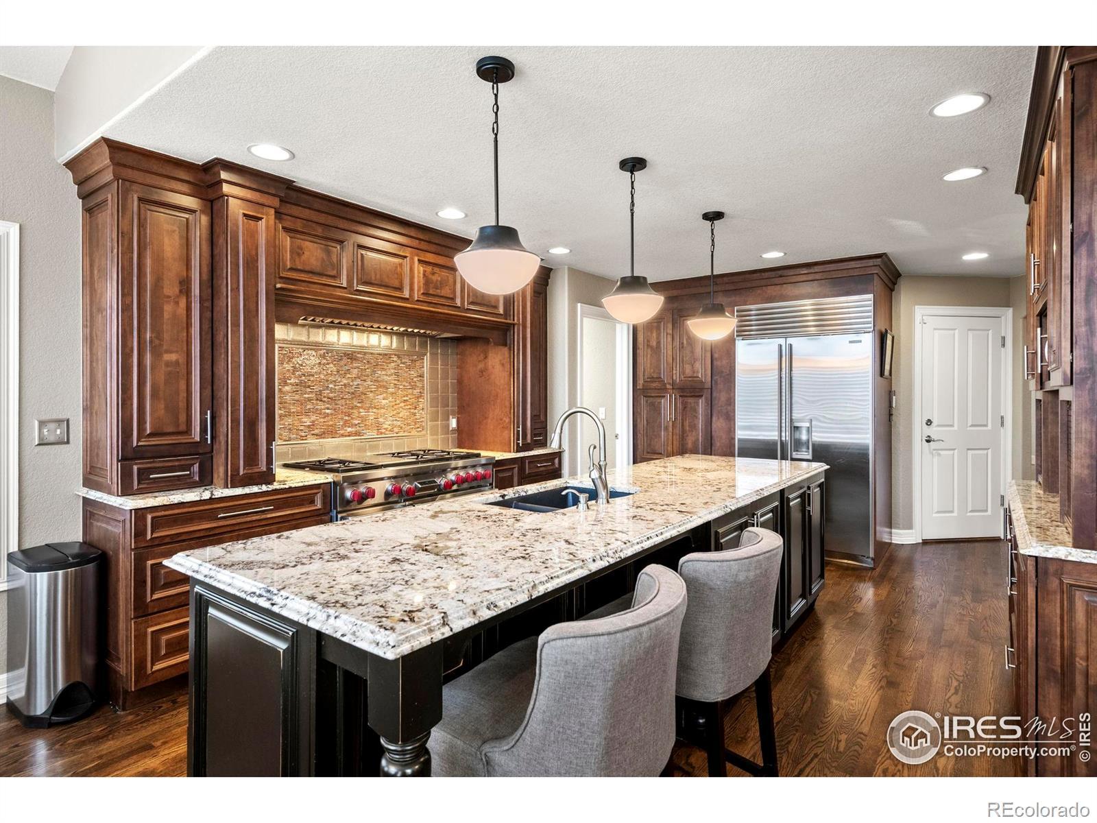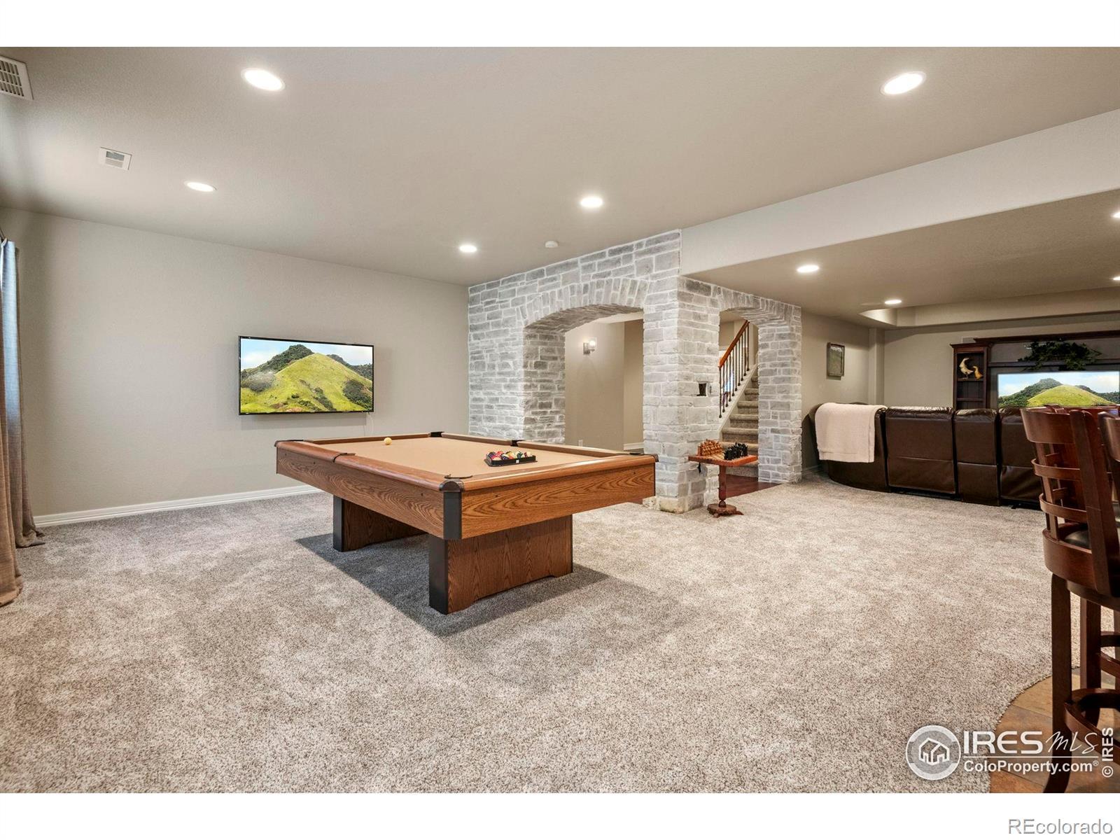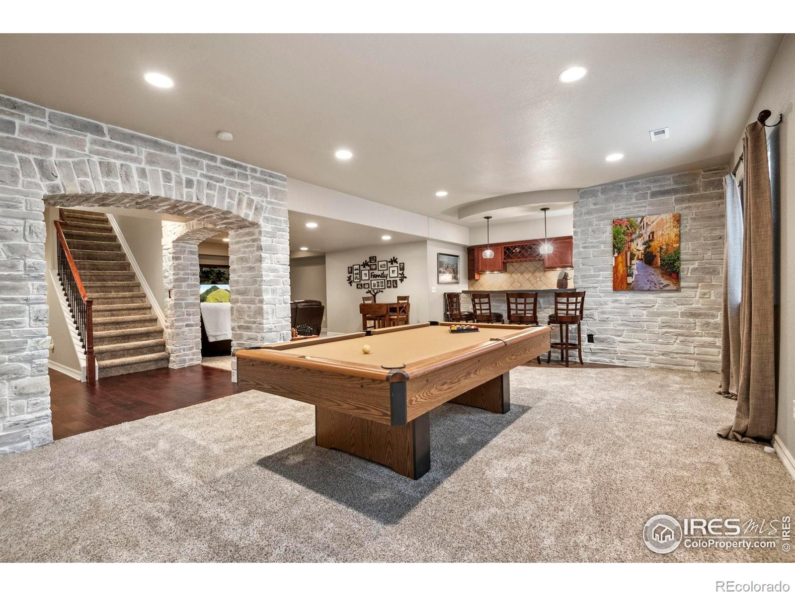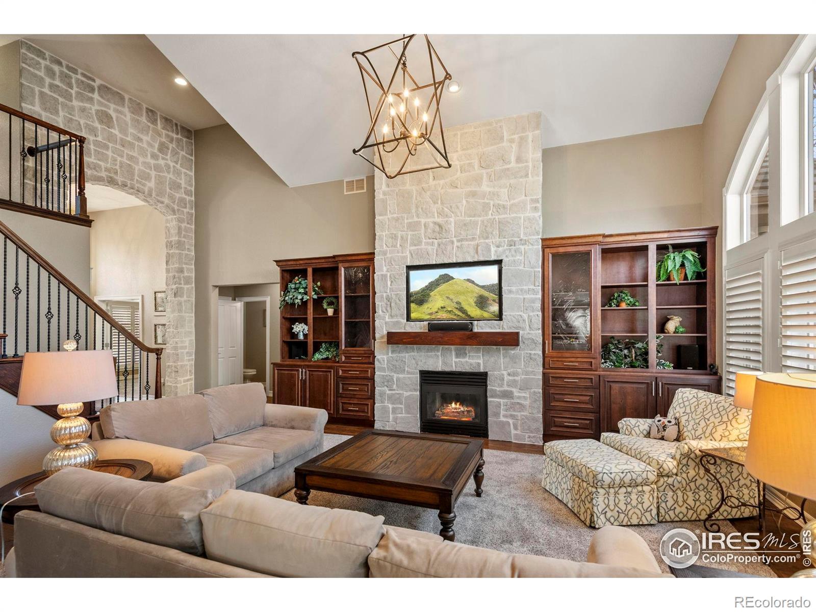 Discover luxury living in this stunning two-story home with main floor primary bedroom, nestled in the desirable Ranch Reserve neighborhood. This spacious residence offers 5 bedrooms and 4 baths on a quiet cul-de-sac. Upon arrival, you are greeted by great curb appeal with new exterior paint & fence stain. A vaulted entry welcomes you into a beautifully designed layout with an abundance of natural light through the cased windows with shutters. The chef's kitchen boasts high-end appliances, a large island, and a sunlit breakfast nook that opens to the great room with stone accents, a gas fireplace, and custom built-ins. You'll also find a dedicated home office and an elegant formal dining room. The main floor primary suite is a true oasis with a private ensuite 5-piece bathroom and two walk-in closets. Upstairs offers a loft with private balcony, two bedrooms, and a full bath-perfect for kids or guests. The finished basement expands the living space with two additional bedrooms, a full bath, a wet bar, and multiple entertaining areas for movie nights or gatherings. The 3-car garage includes built-in storage and a newer level 2 EV charger. Enjoy outdoor living in the fenced backyard with a built-in gas grill, stamped concrete patio, hot tub, and easy access to walking trails and open green space. Additional features included beautifully updated stone-washing, updated light fixtures, Simplisafe security system, and walk-in closets with custom shelving. Opportunity to join The Ranch Country Club with dining, swimming, tennis, and golf. Located in the Adams 12 Five Star School District and close to parks, shopping, and commuter routes-this home offers the perfect blend of comfort, style, and convenience.