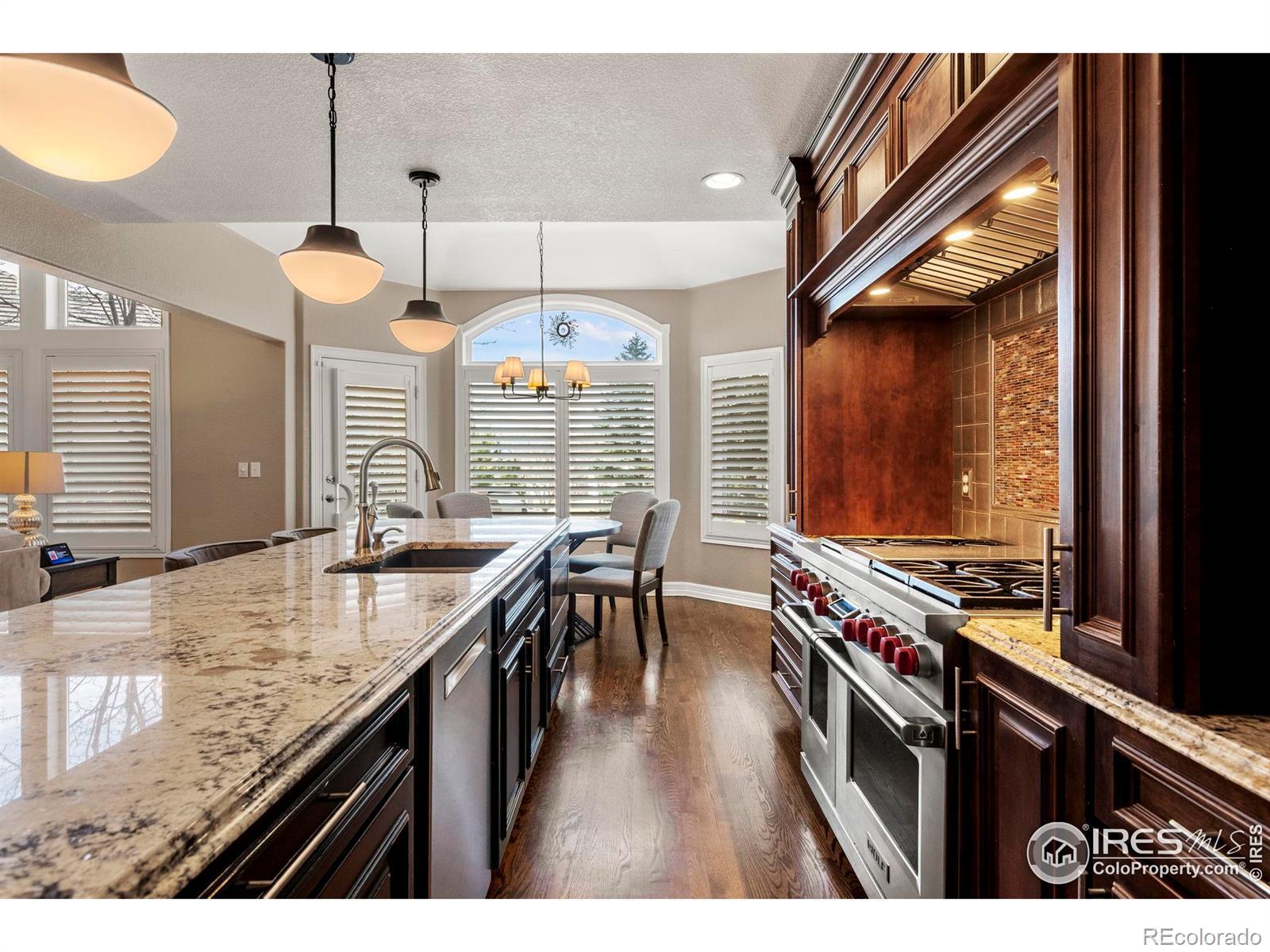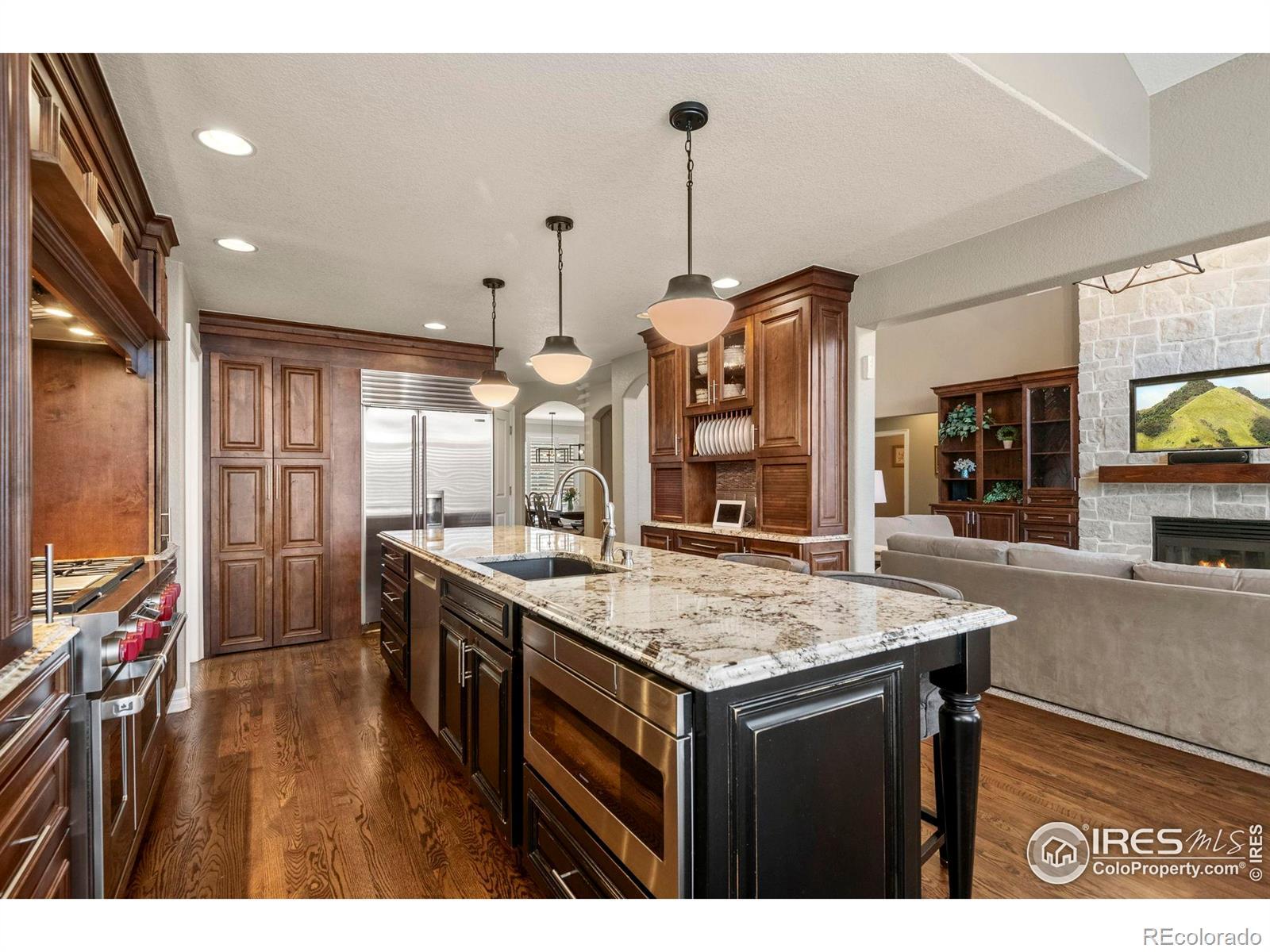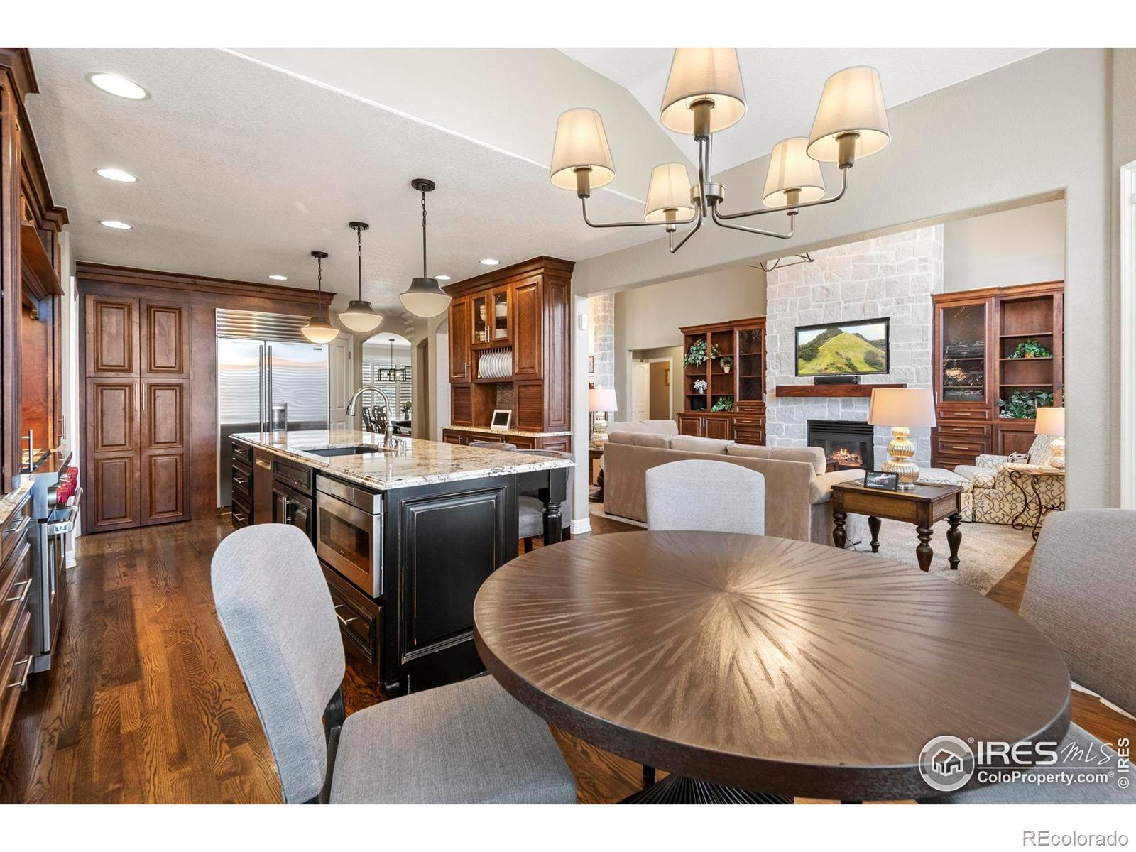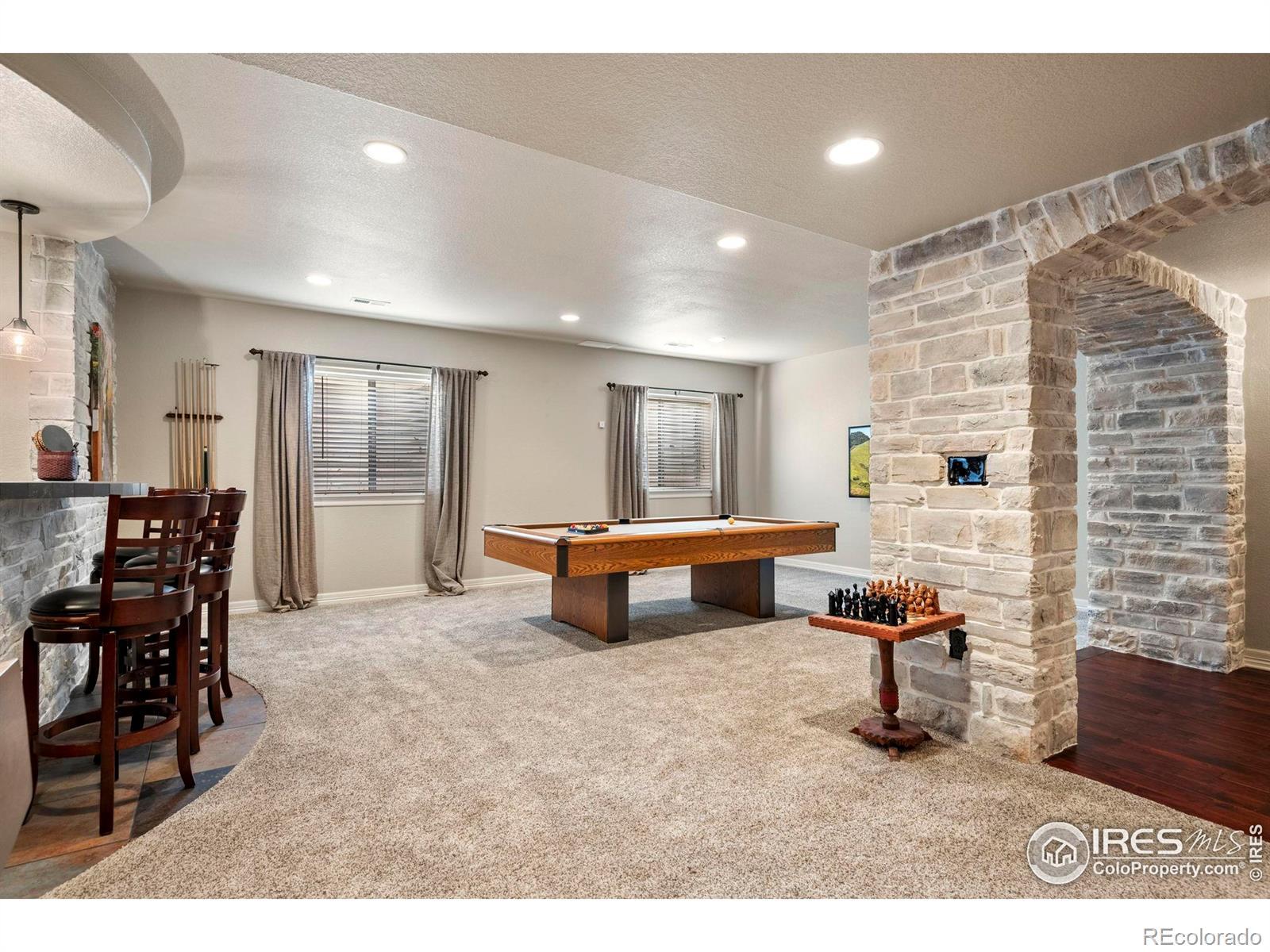 Discover luxury living in this stunning two-story home with main floor primary bedroom, nestled in the desirable Ranch Reserve neighborhood. This spacious residence offers 5 bedrooms and 4 baths on a quiet cul-de-sac. Upon arrival, you are greeted by great curb appeal with new exterior paint & fence stain. A vaulted entry welcomes you into a beautifully designed layout with an abundance of natural light through the cased windows with shutters. The chef's kitchen boasts high-end appliances, a large island, and a sunlit breakfast nook that opens to the great room with stone accents, a gas fireplace, and custom built-ins. You'll also find a dedicated home office and an elegant formal dining room. The main floor primary suite is a true oasis with a private ensuite 5-piece bathroom and two walk-in closets. Upstairs offers a loft with private balcony, two bedrooms, and a full bath-perfect for kids or guests. The finished basement expands the living space with two additional bedrooms, a full bath, a wet bar, and multiple entertaining areas for movie nights or gatherings. The 3-car garage includes built-in storage and a newer level 2 EV charger. Enjoy outdoor living in the fenced backyard with a built-in gas grill, stamped concrete patio, hot tub, and easy access to walking trails and open green space. Additional features included beautifully updated stone-washing, updated light fixtures, Simplisafe security system, and walk-in closets with custom shelving. Opportunity to join The Ranch Country Club with dining, swimming, tennis, and golf. Located in the Adams 12 Five Star School District and close to parks, shopping, and commuter routes-this home offers the perfect blend of comfort, style, and convenience.