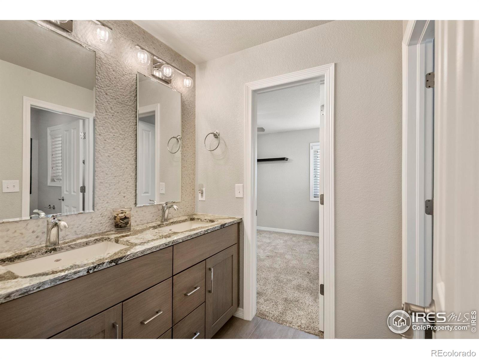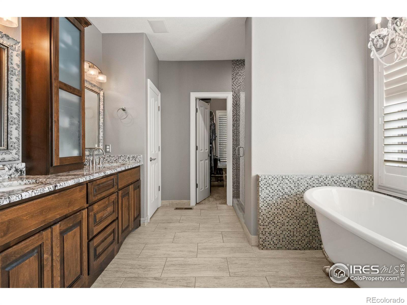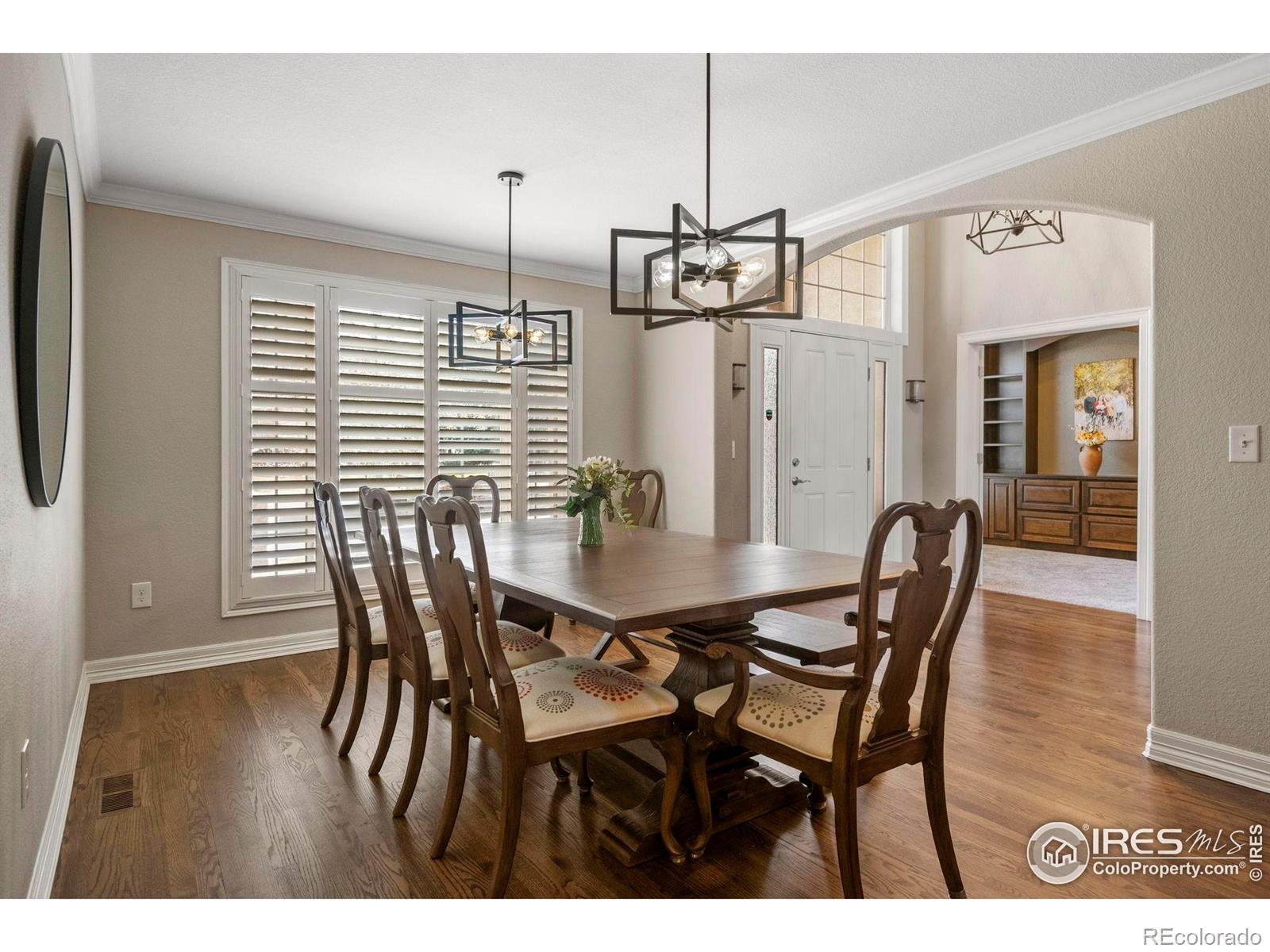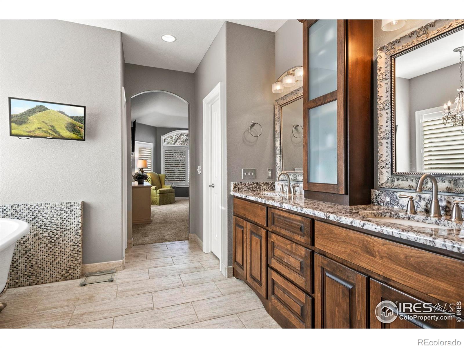 Discover luxury living in this stunning two-story home with main floor primary bedroom, nestled in the desirable Ranch Reserve neighborhood. This spacious residence offers 5 bedrooms and 4 baths on a quiet cul-de-sac. Upon arrival, you are greeted by great curb appeal with new exterior paint & fence stain. A vaulted entry welcomes you into a beautifully designed layout with an abundance of natural light through the cased windows with shutters. The chef's kitchen boasts high-end appliances, a large island, and a sunlit breakfast nook that opens to the great room with stone accents, a gas fireplace, and custom built-ins. You'll also find a dedicated home office and an elegant formal dining room. The main floor primary suite is a true oasis with a private ensuite 5-piece bathroom and two walk-in closets. Upstairs offers a loft with private balcony, two bedrooms, and a full bath-perfect for kids or guests. The finished basement expands the living space with two additional bedrooms, a full bath, a wet bar, and multiple entertaining areas for movie nights or gatherings. The 3-car garage includes built-in storage and a newer level 2 EV charger. Enjoy outdoor living in the fenced backyard with a built-in gas grill, stamped concrete patio, hot tub, and easy access to walking trails and open green space. Additional features included beautifully updated stone-washing, updated light fixtures, Simplisafe security system, and walk-in closets with custom shelving. Opportunity to join The Ranch Country Club with dining, swimming, tennis, and golf. Located in the Adams 12 Five Star School District and close to parks, shopping, and commuter routes-this home offers the perfect blend of comfort, style, and convenience.