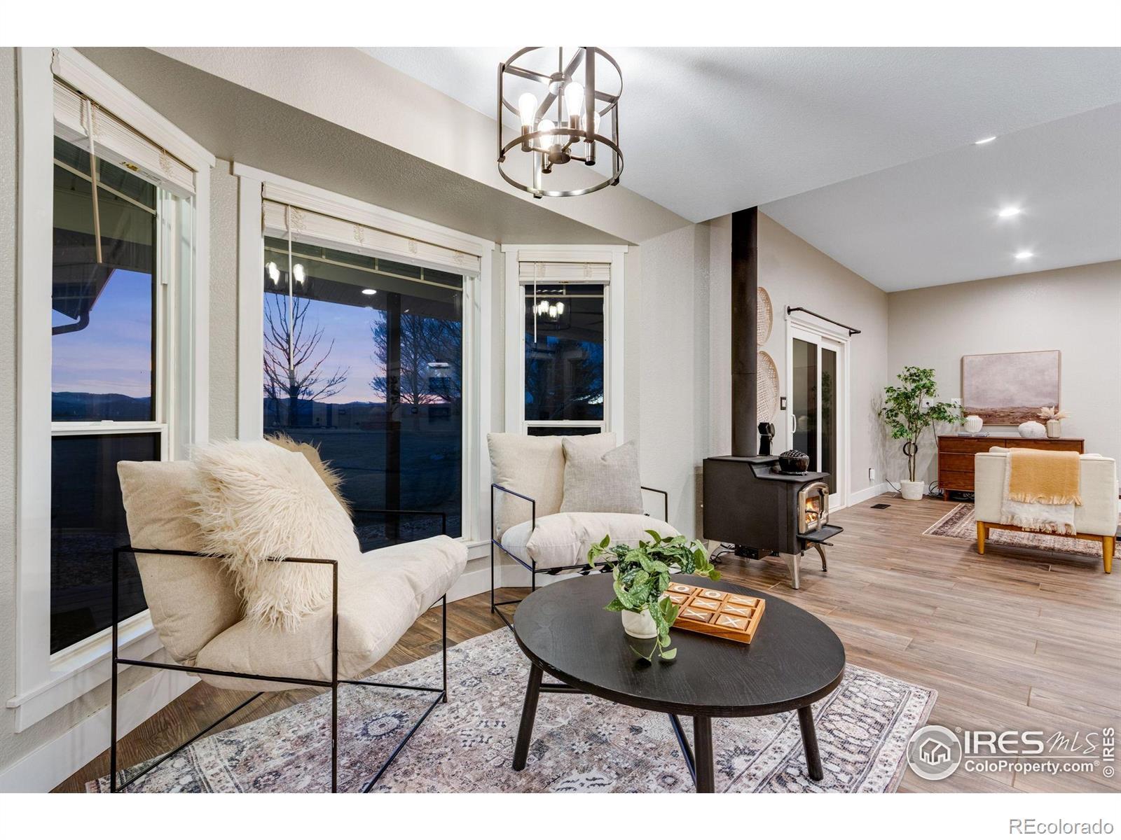 Exceptional, fully updated equestrian estate on 35.669 acres w/ NO HOA, NO METRO TAX & open zoning. Originally built in 1998 & extensively remodeled in 2023, offering privacy, functionality, & panoramic Rocky Mountain views. This rare property features a stocked pond w/ bass, dock, & sitting areas; 4 fenced pastures; 5 loafing sheds; round pen; 240' x 137' lite riding arena; pump shed; 3 storage sheds; & 8 exterior water hydrants, all accessed by a private driveway set back a .5 miles from the county road for privacy. Equestrian amenities are anchored by a 3,888 sq ft barn featuring 6 stalls each w/ private runs, tack room, wash bay, hay storage, a 2,232 sq ft loft, main-level concrete patio, & upper-level observation deck. A 1,545 sq ft detached drive-through RV/boat garage & shop features 220V, added electrical, air compressor, & included shelving, cabinets, & workbench. The park-like setting includes mature landscaping, sprinkler & drip systems, wood-burning fire-pit, horseshoe pits, expansive east-facing patios for sunrise views, & west-facing covered & uncovered patios w/ ceiling fan overlooking nightly Rocky Mountain sunsets. The primary residence showcases a split floor plan, front office, formal dining, white trim, new windows & doors, upgraded lighting, new paint & carpet. The chef's kitchen features a large island, quartz countertops, SS appliances, 6-burner gas range, commercial hood, double ovens, warming drawer & a walk-in pantry. Living spaces include a family room w/ wood-burning fireplace, oversized bedrooms including a private guest en-suite, 2 beds w/ a Jack-and-Jill bath, & a luxurious primary bedroom w/ retreat featuring a 5-pc. bath, & two walk-in closets. Home also features a massive laundry room designed for everyday efficiency & includes a mini refrigerator & ice-maker. For a full list of features, floor plan, or to schedule a showing, please e-mail brokers.