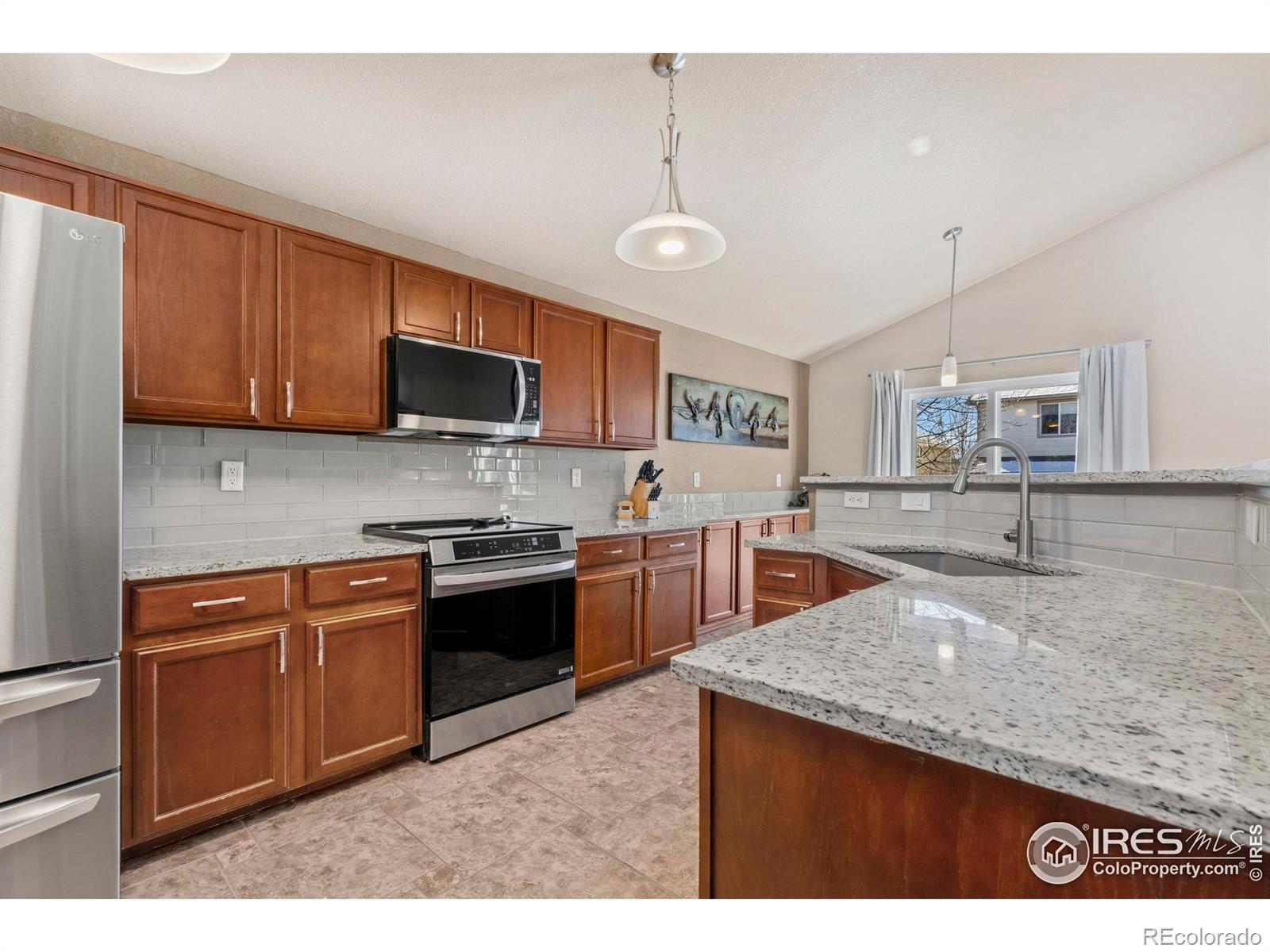 Immaculately maintained in the highly sought-after Ridgewood Hills subdivision, located just minutes from the community pool and Coyote Ridge Elementary. This home blends timeless appeal with modern updates, offering a comfortable, move-in-ready retreat in Fort Collins. This 4-bedroom, 3-bath residence features a main-floor primary suite with a fully remodeled bathroom designed for relaxation. Highlights include electric radiant heated tile floors, dual shower heads, a Roman tub faucet, granite countertops, and elegant travertine finishes-creating a true spa-like escape. The main level also showcases upgraded wood flooring and a bright, open layout ideal for both everyday living and entertaining. The kitchen is thoughtfully updated with granite countertops, a sleek glass tile backsplash, and new appliances installed in May 2024, including a stove, microwave, and refrigerator. Additional enhancements include new Performance Windows (December 2024), a Quiet Cool whole-house fan (May 2023), and an Active Radon System, providing energy-efficient comfort and added peace of mind. Step outside to the stamped concrete back patio, perfect for relaxing evenings or hosting gatherings. Residents of Ridgewood Hills enjoy access to lush greenbelts, a neighborhood pool, and a playground nearby, while outdoor enthusiasts will appreciate the adjacent ridgeline trail offering panoramic views of Longs Peak and Horsetooth Rock-ideal for morning hikes or weekend adventures.
