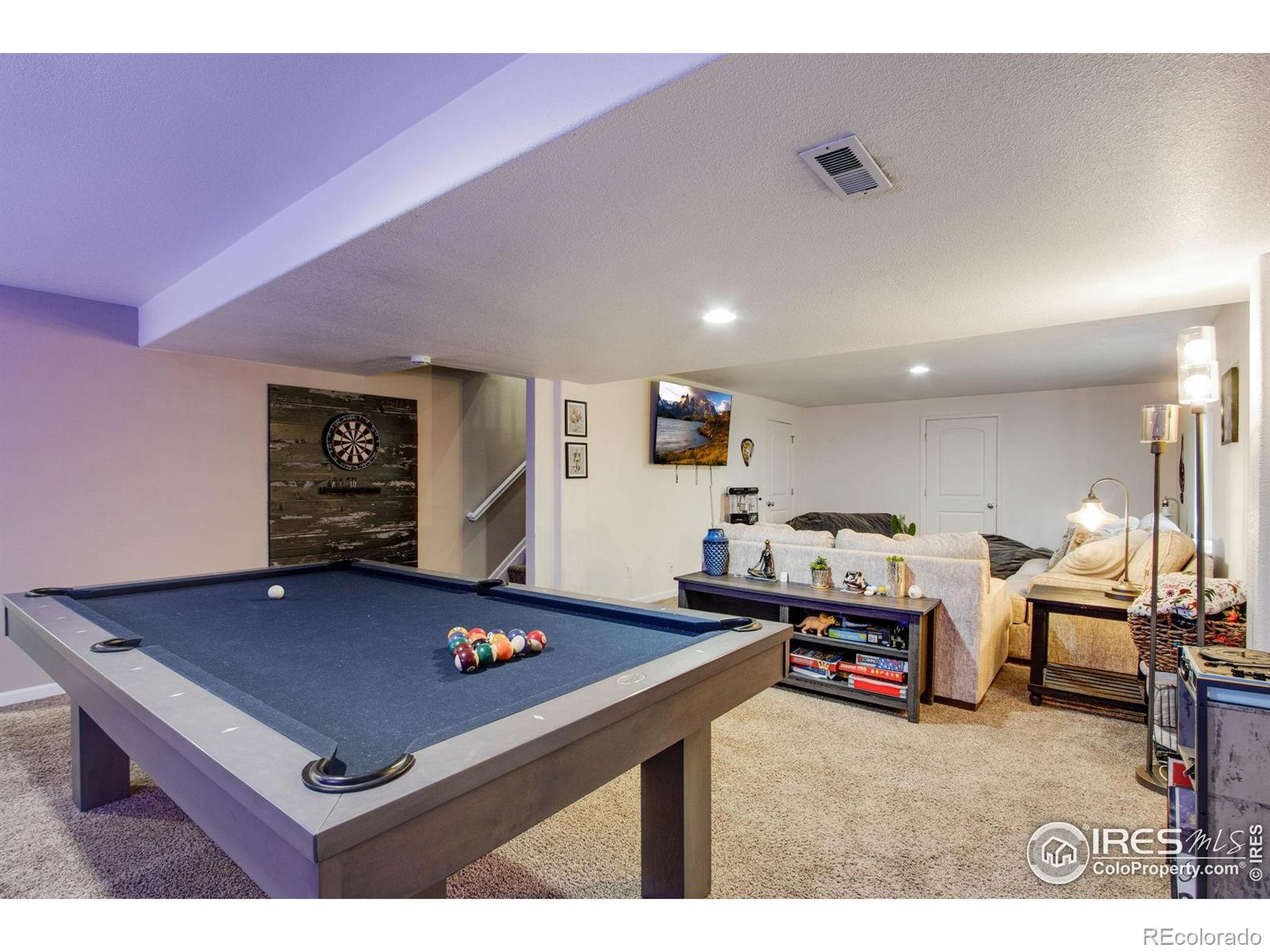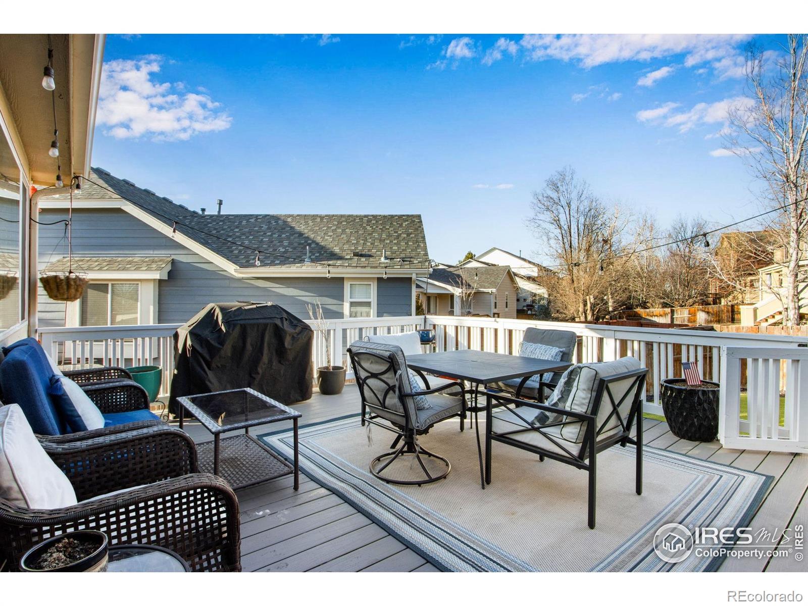Investors and Buyers. This property is in incredible condition and ready for immediate possession. Seller prefers to sell this property turnkey with ALL personal property included. This ranch style home is located in a master planned community offering golf, tennis, parks, trails, a swimming pool, and hot tub. Centrally located between Northern Colorado, Boulder and Denver and just minutes from Interstate 25. The main floor features a front executive office currently furnished as a fourth bedroom, laundry, a large living room, a spacious dining area, and a kitchen with stainless steel appliances, quartz countertops, an island with breakfast bar, and a pantry. The main floor also includes a second bedroom, a full bath, and a large primary bedroom with a private retreat, walk-in closet, and private full bath. The fully finished basement offers 7' 6" ceilings, a huge third bedroom, a recreation area, kid cave, billiard area, built-in bar, and a utility room with gym space. Home features include a highly efficient furnace, central air conditioning, ceiling fans, sump pit and pump, active radon mitigation system, and much more. The exterior includes a covered front patio a south facing driveway for plenty of snow melt, a xeriscape backyard for water savings, a large Trex deck, putting green, dog run, and a privacy fence. 2 car oversized attached garage with opener, remotes and keyless entry. For a full list of features floor plan or to schedule a private showing please contact the broker via email.