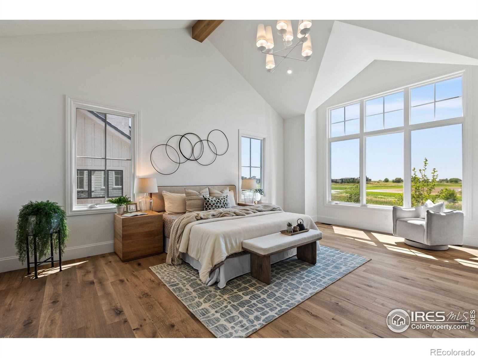 Winner of the 2025 Northern Colorado Parade of Homes, Best Primary Suite, Best Craftsmanship, Overall Winner Best Home. Spectacular Custom home in the gated Rookery section of Heron Lakes. This is one of the best floorplans I have seen in 25 years of real estate. From the exquisite Cape Cod exterior, the welcoming front porch, and grand entrance this home makes a statement from the moment you pull up. Vaulted 20-foot beamed ceiling greet you as you enter the front door to the great room and chef's kitchen and huge patio with covered deck. High end AGA stove, Wolf and Sub Zero appliances, and butler's pantry makes this dream kitchen a reality. Primary bedroom is spacious with lake views, beautiful tub, steam shower, and finished closet with washer and dryer. Main floor study and staircase with wainscoting, and second bedroom with on suite. Attached dwelling unit over the garage has over 800 sq ft of living space, kitchen area and full bath. Spacious basement rec room, bar area, golf simulator setup, workout room, 2 more bedrooms with full baths and a storage area with stairs to the garage. 5 car garage with 1442 sq ft, is heated, and has the ability to store a boat. Beautifully landscaped with fire pit and views of the lake and front range mountains. A full deeded membership is included with this home. Golf, restaurants, workout facility, resort style pool, trails and boating on Lonetree are all part of living in Heron Lakes at TPC Colorado.