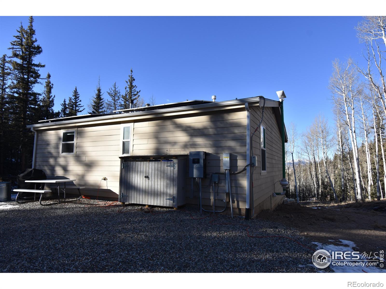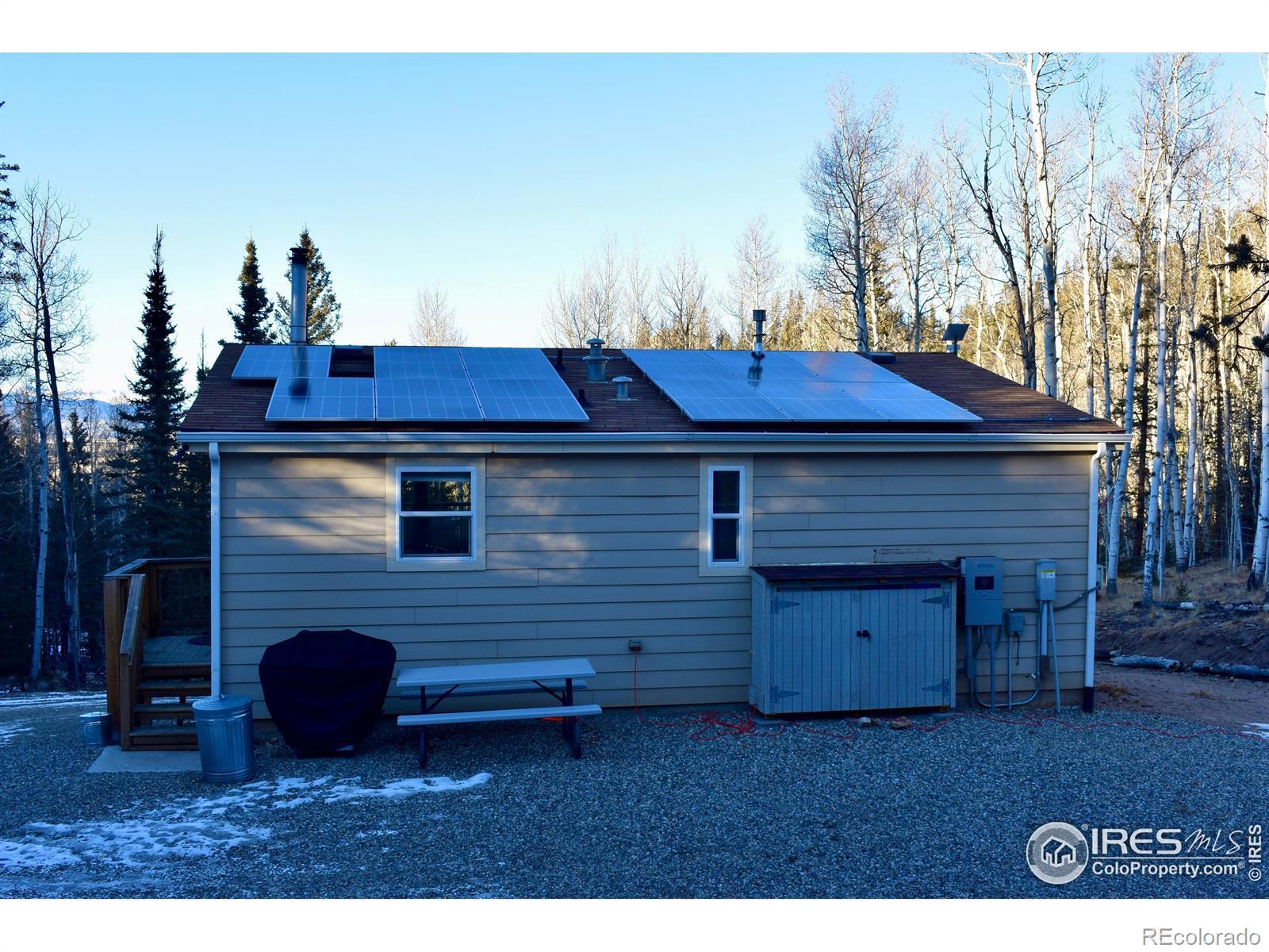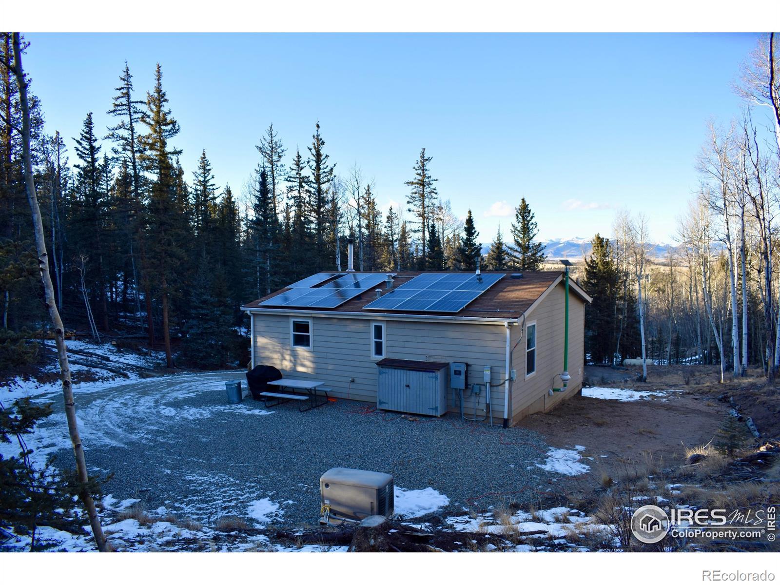 Charming and well-maintained off-grid mountain home set on 4.13 acres in the desirable Indian Mountain community. This turnkey, fully furnished two-bedroom, one-bath residence offers a thoughtful blend of comfort, efficiency, and privacy. Inside, the open living space features high ceilings and a centrally located wood-burning stove that anchors the kitchen and living room. The kitchen provides ample cabinetry and counter space, a pantry, new appliances, and convenient access to the side sliding door. Recent interior updates include durable, water-resistant LVP flooring, fresh paint throughout, custom wood window trim and arches, a whole-home water filtration system, and Starlink connectivity. Both bedrooms are have deep closets and custom handcrafted wood furniture. A new washer and dryer are located in the hallway with built-in storage and a folding station. Exterior improvements include a new valley flashing, new gutters, re-tarred foundation walls, graded driveway with ample parking, a French drain system, and a maintained fire perimeter around the home. The crawlspace features a new radon mitigation system, heavy vapor barrier with gravel base, and solid foam wall insulation, offering future potential to connect to the main level or convert into an attached garage. The solar setup is designed for year-round off-grid living, featuring 15 kWh panels, a Sol-Ark 12K inverter, LFP Fortress batteries, and a 20k Kohler generator. The property is surrounded by mature aspens, mountain views, and striking rock outcroppings, with a trail leading to a private sitting area ideal for relaxing or stargazing. A storage shed with loft space offers additional flexibility and potential for a finished bunkhouse. Located approximately 20 minutes from Fairplay and about one hour from Breckenridge, this property offers peaceful mountain living with convenient access to town and recreation.