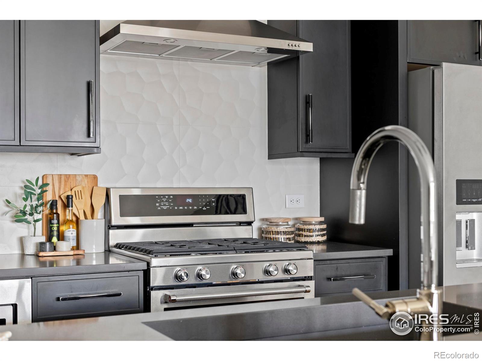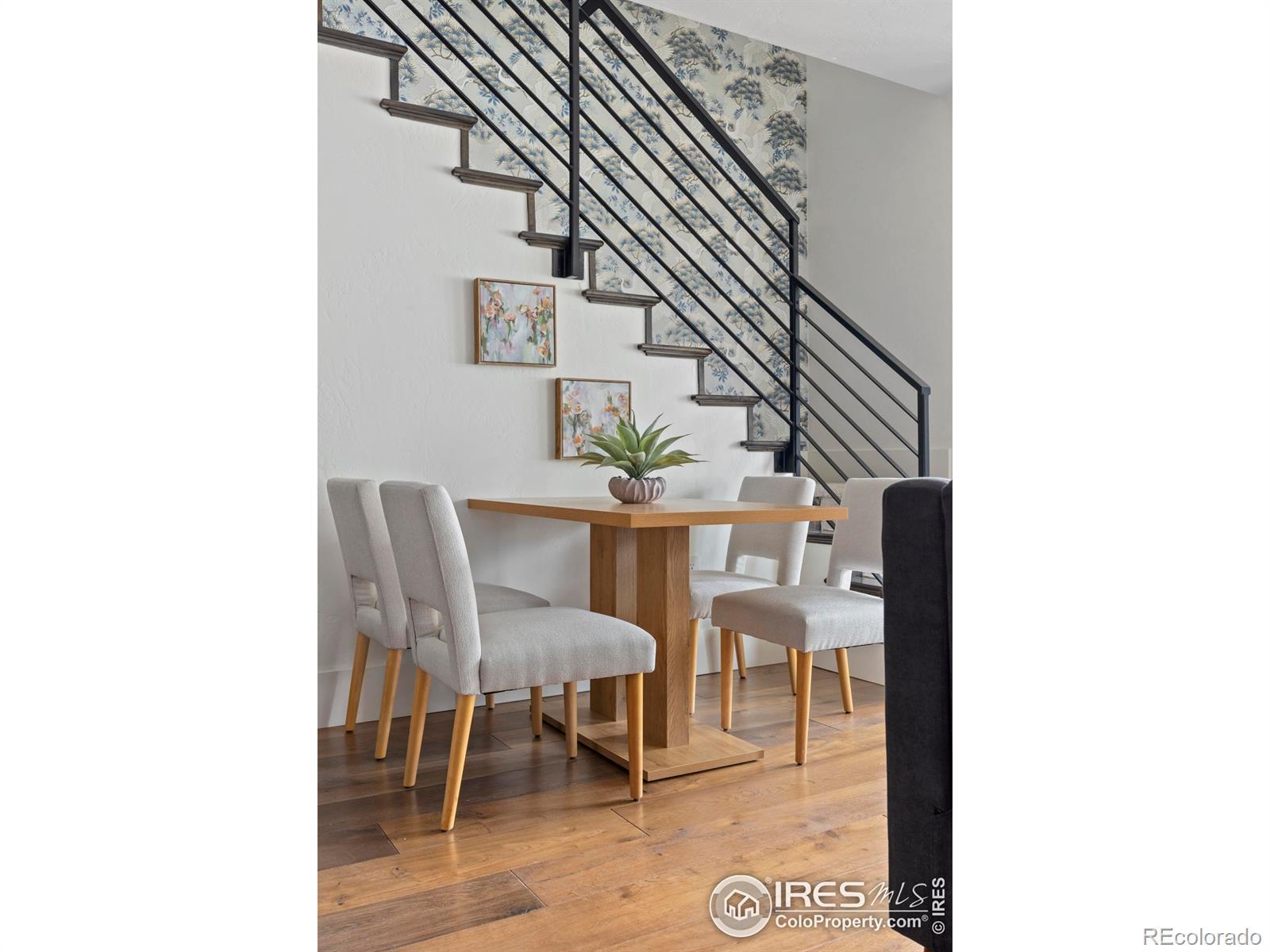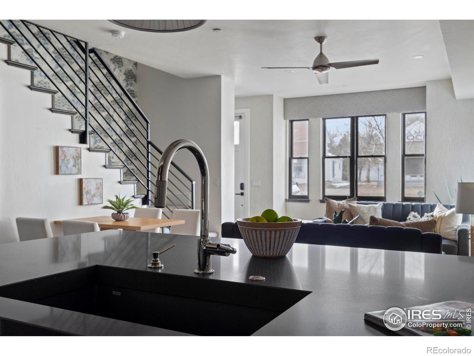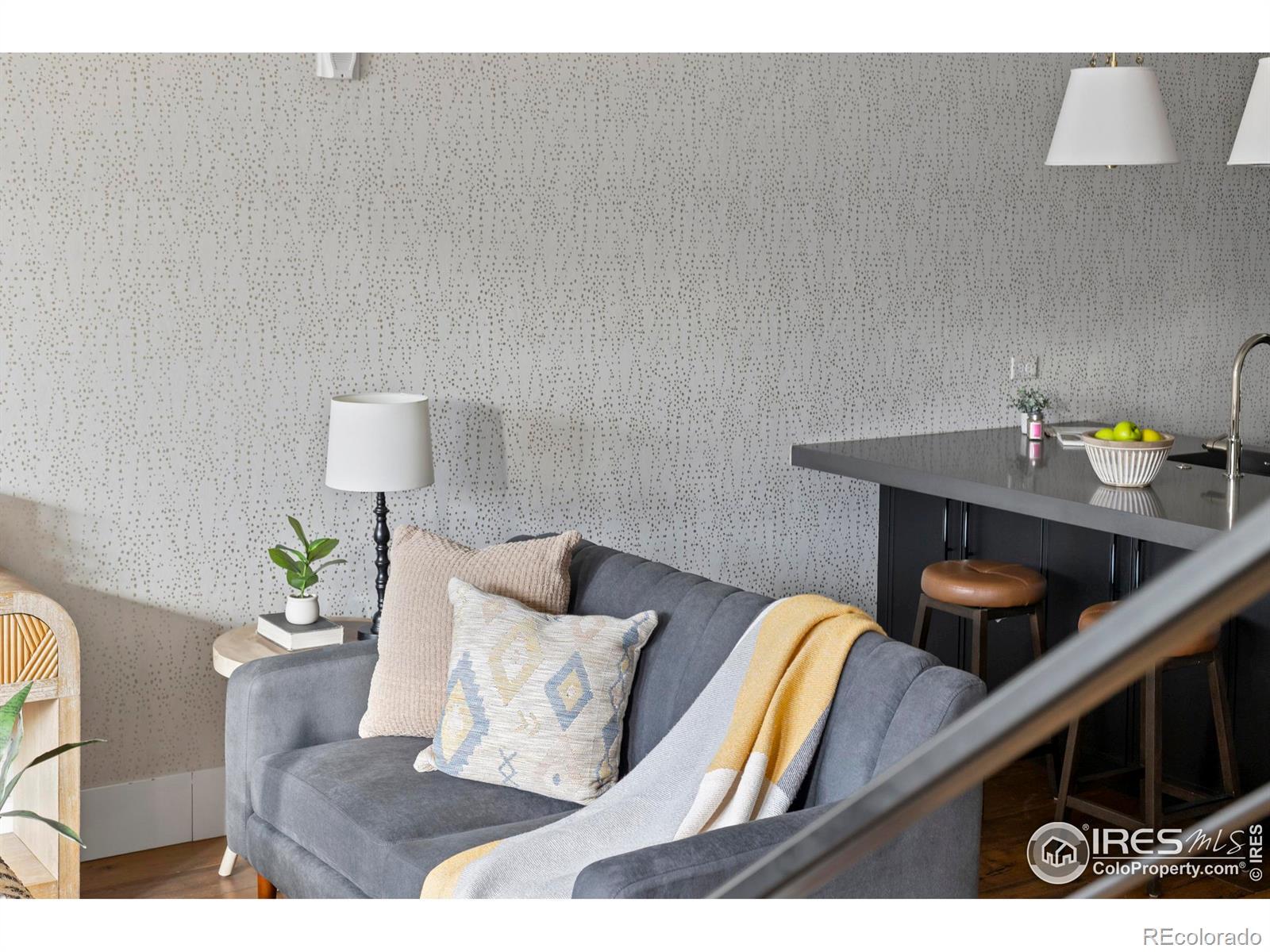 Sophistication meets convenience in this stunning two-story end-unit condo at 302 N Meldrum St #103, nestled in the heart of vibrant Old Town Fort Collins, in a quiet neighborhood. With a private entrance, no upstairs neighbors, and high-end finishes throughout, this home offers the perfect blend of modern elegance and thoughtful design.Step inside to a welcoming foyer, complete with a built-in drop-zone and clever overhead storage. The main level boasts 10-foot ceilings and warm hardwood floors, creating an airy, open atmosphere. Natural light pours through expansive Sierra Pacific windows, highlighting the impeccable craftsmanship, from Emtek hardware to custom light fixtures and high-end plumbing details. Designed with STC-60 sound engineering, you'll enjoy peace and quiet even in the city's lively core.The chef's kitchen is a masterpiece, featuring Tischlerei cabinetry, a spacious island with double-thick quartz countertops, and concealed under-island storage. Top-of-the-line stainless steel appliances include a gas range, refrigerator, range hood, microwave, and dishwasher-everything you need to entertain with ease. Adjacent, an oversized living room accommodates a large sectional or dual sofa. Upstairs, a large bedroom suite has windows on two sides and has room to accommodate a king bed set, office or sitting area. With premium carpet and padding, the space is designed for relaxation and comfort. An attached walk-in closet ensures all your wardrobe needs are met and a primary suite bathroom with stall shower and custom tile work rounds out the convenience of the condo. This home also comes with secure parking in a deeded garage space, reservable storage lockers, bike racks, and elevator access to all levels. The secure lobby features key-fob/intercom entry and package delivery services for added convenience.