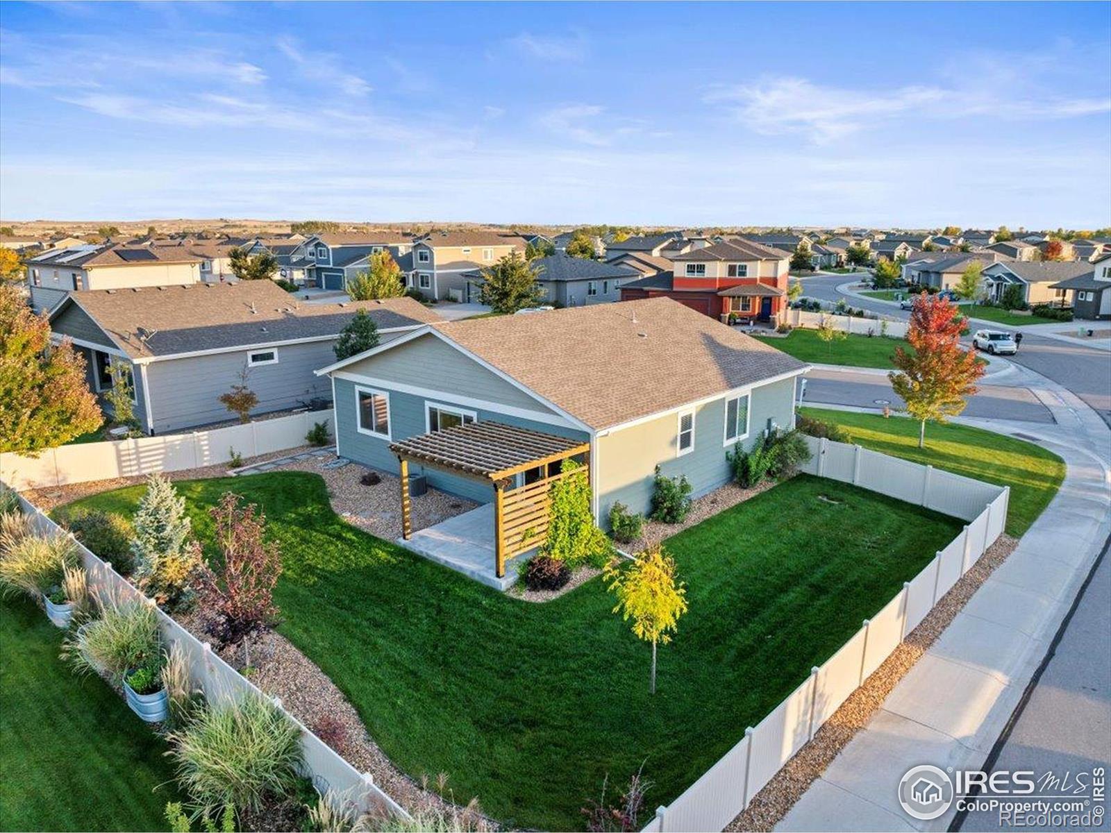 Welcome to your main floor living, dream come true! This 3 bedroom 2 bathroom home sits on an expansive (.21 Acre) corner lot! Step inside this beautifully maintained home and instantly feel at ease. Gorgeous floors welcome you into the bright, open living room and kitchen, complete with subway tile backsplash and stainless steel appliances. Sitting on an oversized .21-acre corner lot, the property feels expansive and inviting. The south-facing driveway adds practicality, while the custom pergola, custom patio, and professional landscaping create a private backyard oasis for entertaining or relaxing. Every detail has been thoughtfully cared for with brand new carpet and tasteful updates throughout to make this home better than new construction and truly move-in ready for you! You'll have peace of mind knowing the roof was replaced in August of 2022 and comes with a transferable warranty. To top it off with unbeatable convenience: you're just steps away from the community pool, blending comfort and lifestyle in one perfect package.