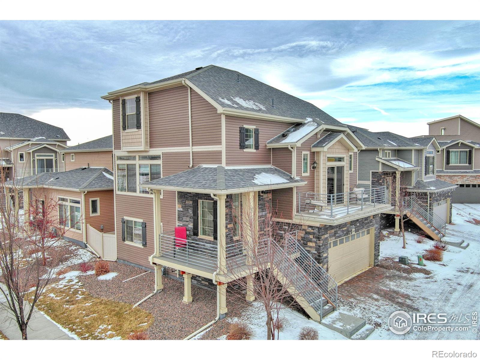 This low-maintenance single-family home offers a desirable 3-story layout with 1,934 sq ft, 3 bedrooms, 2.5 bathrooms, and a 2-car garage, plus multiple outdoor deck spaces. Situated on a corner lot within a private cul-de-sac, the home features excellent curb appeal with a multi-dimensional exterior, inviting front porch, patio, and privacy fencing.The interior is light and bright with 9' ceilings on the main floor, enhancing the open and airy feel. Designed for entertaining, the expansive great room flows seamlessly into the spacious kitchen featuring stainless steel appliances and a large dining island-perfect for everyday living and gatherings alike.The primary suite offers a relaxing retreat with a walk-in closet, double vanity, and large walk-in shower. The third floor provides two additional bedrooms and a full bathroom, offering flexible space for guests, family, or a home office.A large daylight basement adds exceptional versatility-ideal for additional living space, a game room, craft room, home theater, or home gym.Located in the sought-after Thompson River Ranch master-planned community, residents enjoy beautiful mountain backdrops and an abundance of amenities including two outdoor pools, a clubhouse with fitness center, parks, trails, a disc golf course, and year-round community events. Riverview PK-8 School is conveniently located within the community and within walking distance.Easy access to I-25 and Hwy 34, with shopping, dining, and entertainment just minutes away at the Promenade Shops at Centerra.