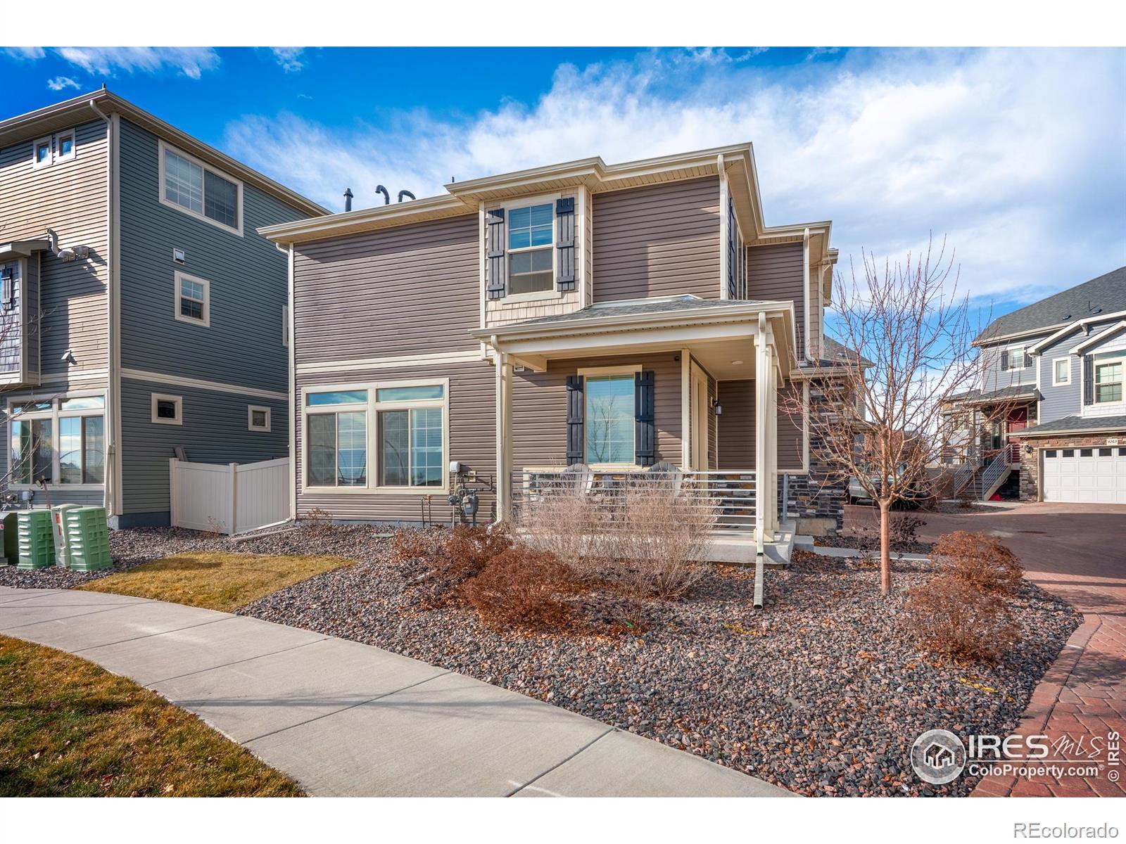 OPEN HOUSE THIS SUNDAY THE 1ST FROM 12:00 - 2:00PM!! This beautifully maintained home situated on a desirable corner lot with charming curb appeal, featuring a welcoming front porch and a stylish siding and rock exterior. Inside, the open and bright main level showcases luxury vinyl plank flooring, white trim, and elegant 6-panel doors throughout. The kitchen is designed for both function and style with granite countertops, stainless steel appliances, crisp white cabinetry, and a large island perfect for entertaining. The living room is complete with a tray ceiling, creating an inviting atmosphere.Upstairs, the primary suite features a walk-in closet and private 3/4 bath with a double vanity and tile shower. The second bedroom offers a walk-in closet and inviting window seating, complemented by a full guest bath on the upper level. A convenient half bath is located on the main floor. Enjoy low-maintenance living with an HOA that includes access to two community pools, fitness gym, front landscaping maintenance, non-potable water and snow removal on driveway and sidewalk over 2" of snow. This home offers comfort, style, and convenience in a fantastic location! The community features scenic trails, a playground, and a basketball court, and is conveniently located just one block from Riverview Pre-K-8.